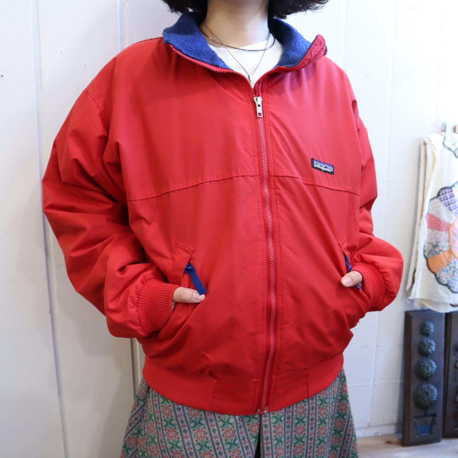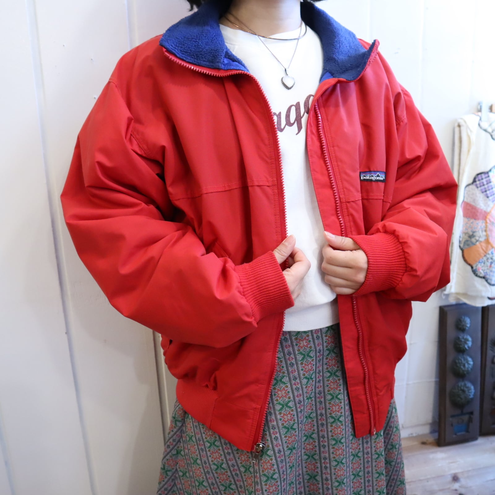 レッド×ネイビーの間違いなしのカラーリングが可愛いUSA製パタゴニアナイロンジャケット♡