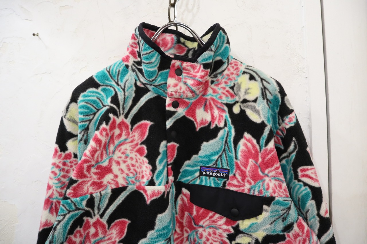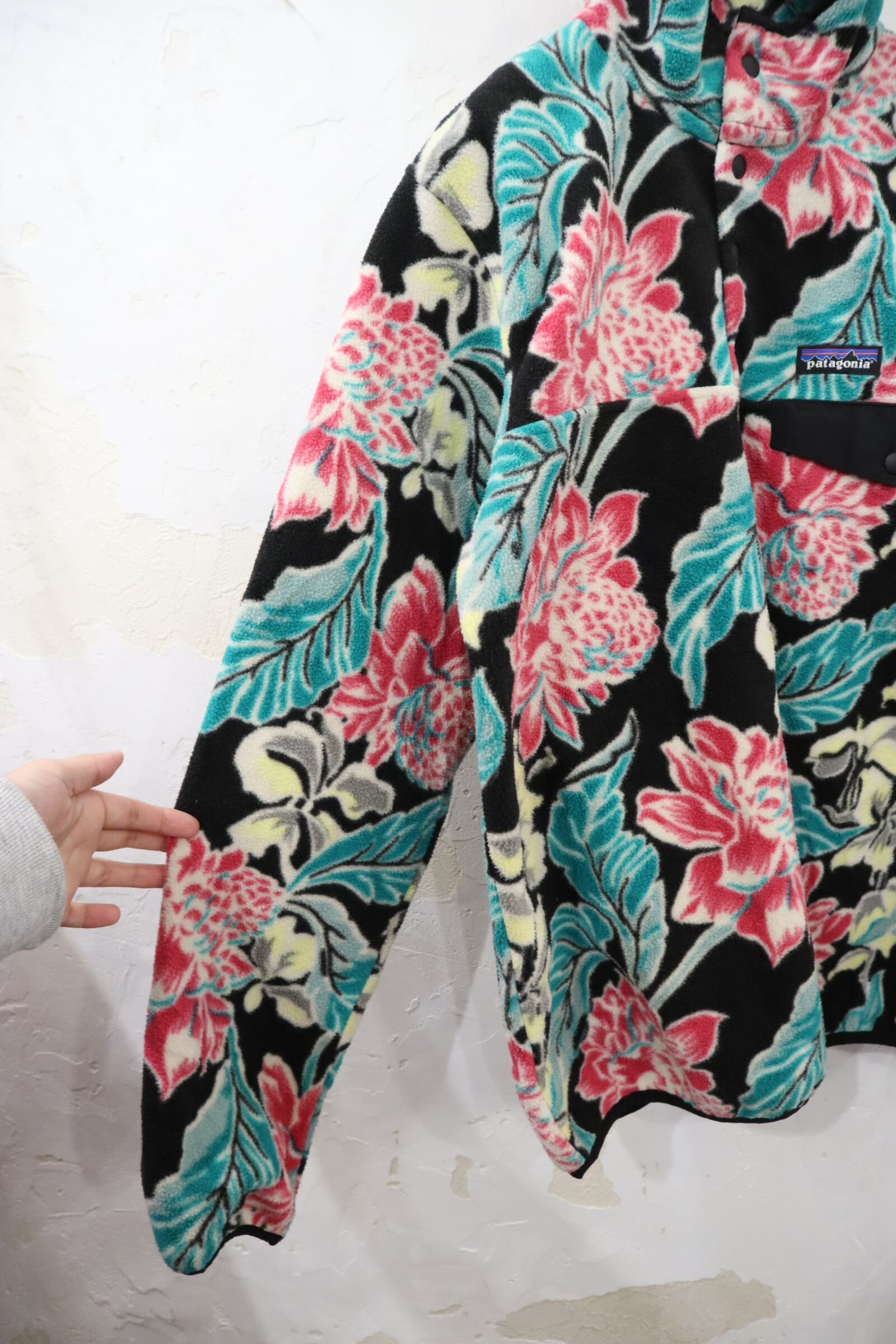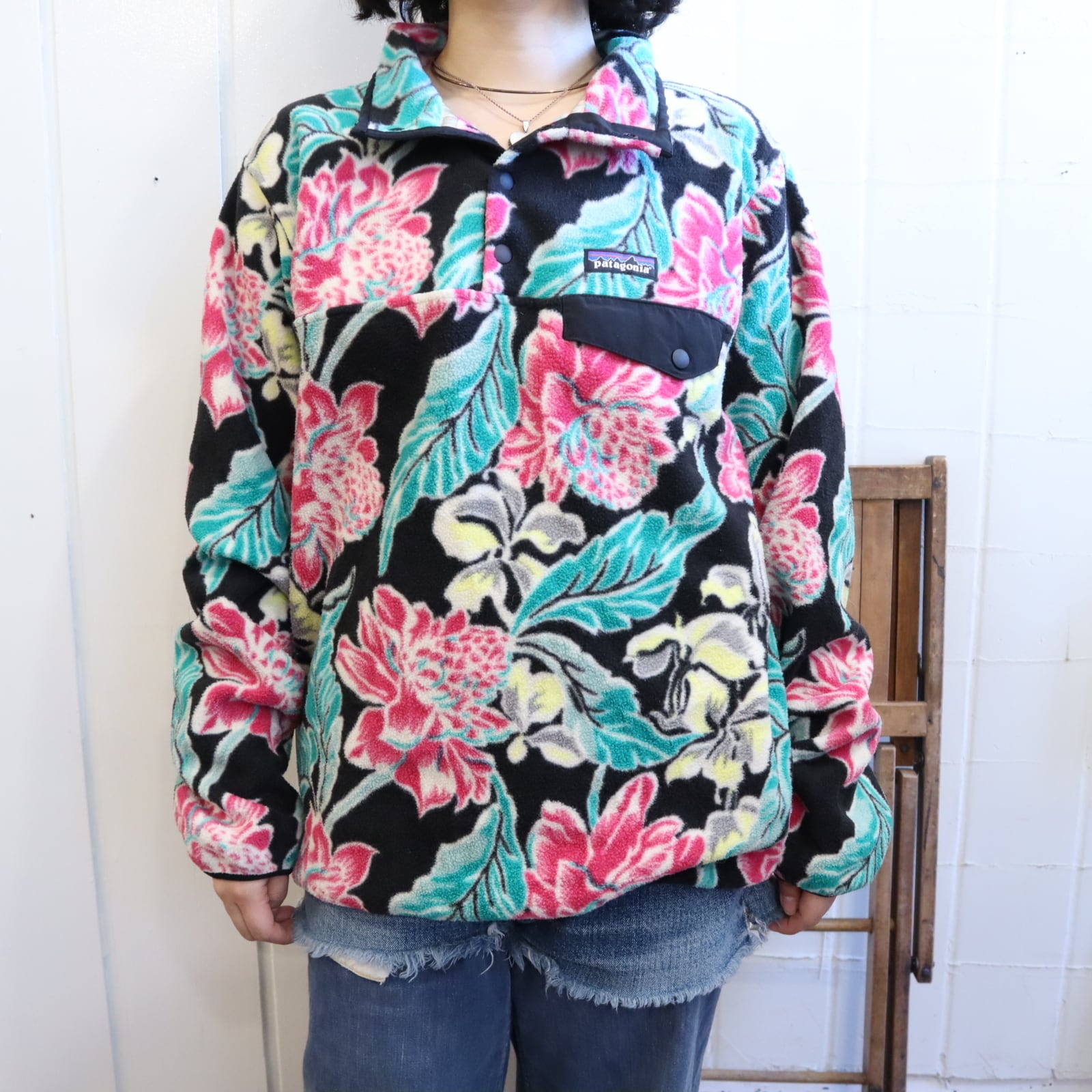 Patagonia black×pink flower pullover snap-t fleece [l-4356]