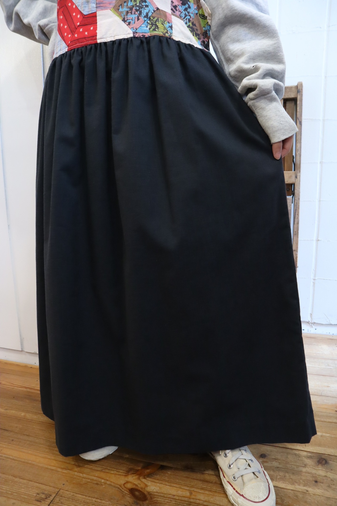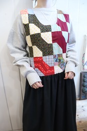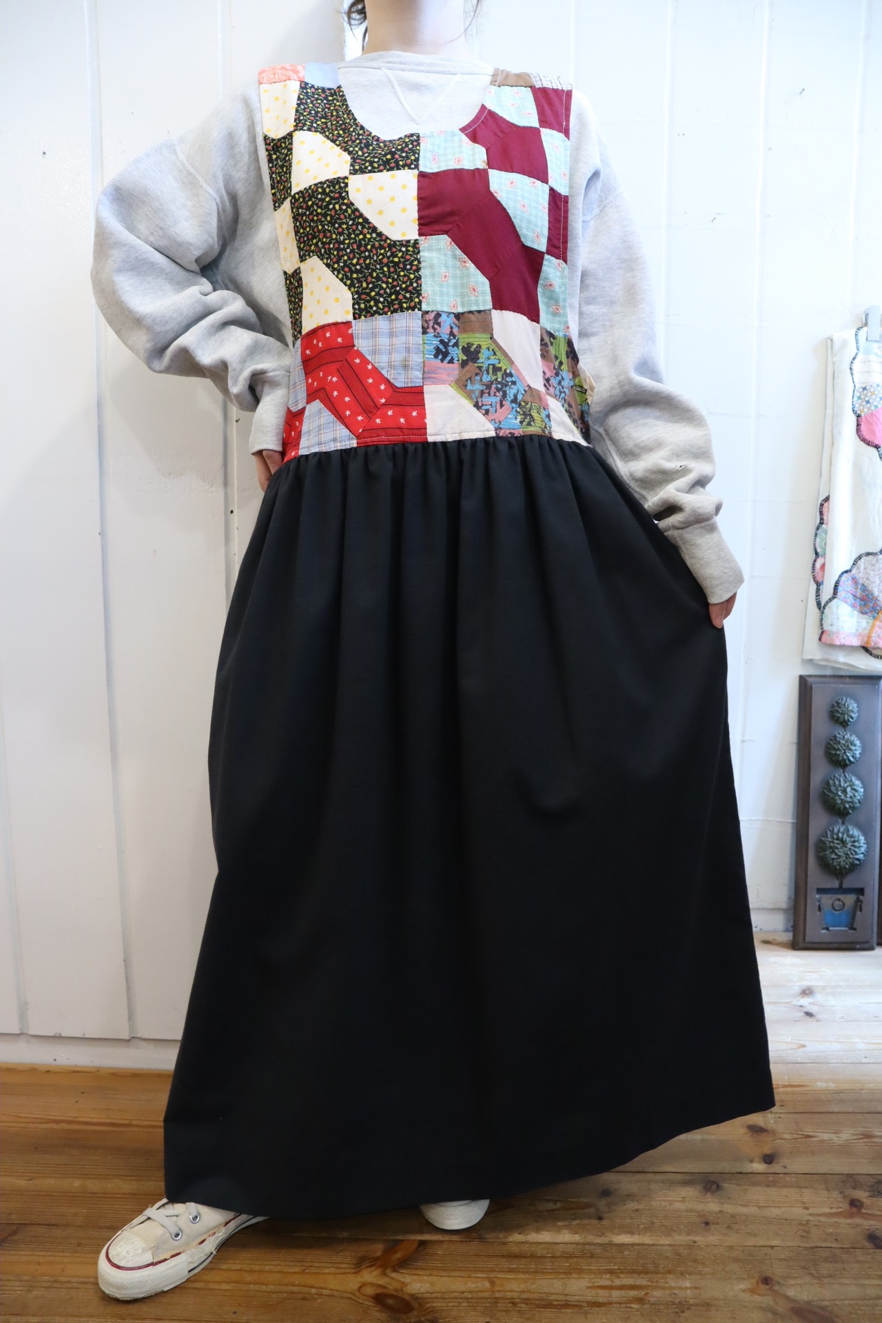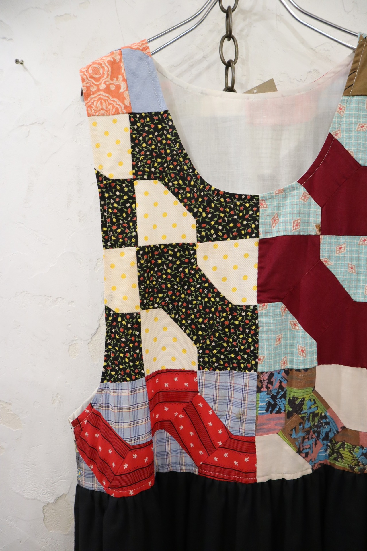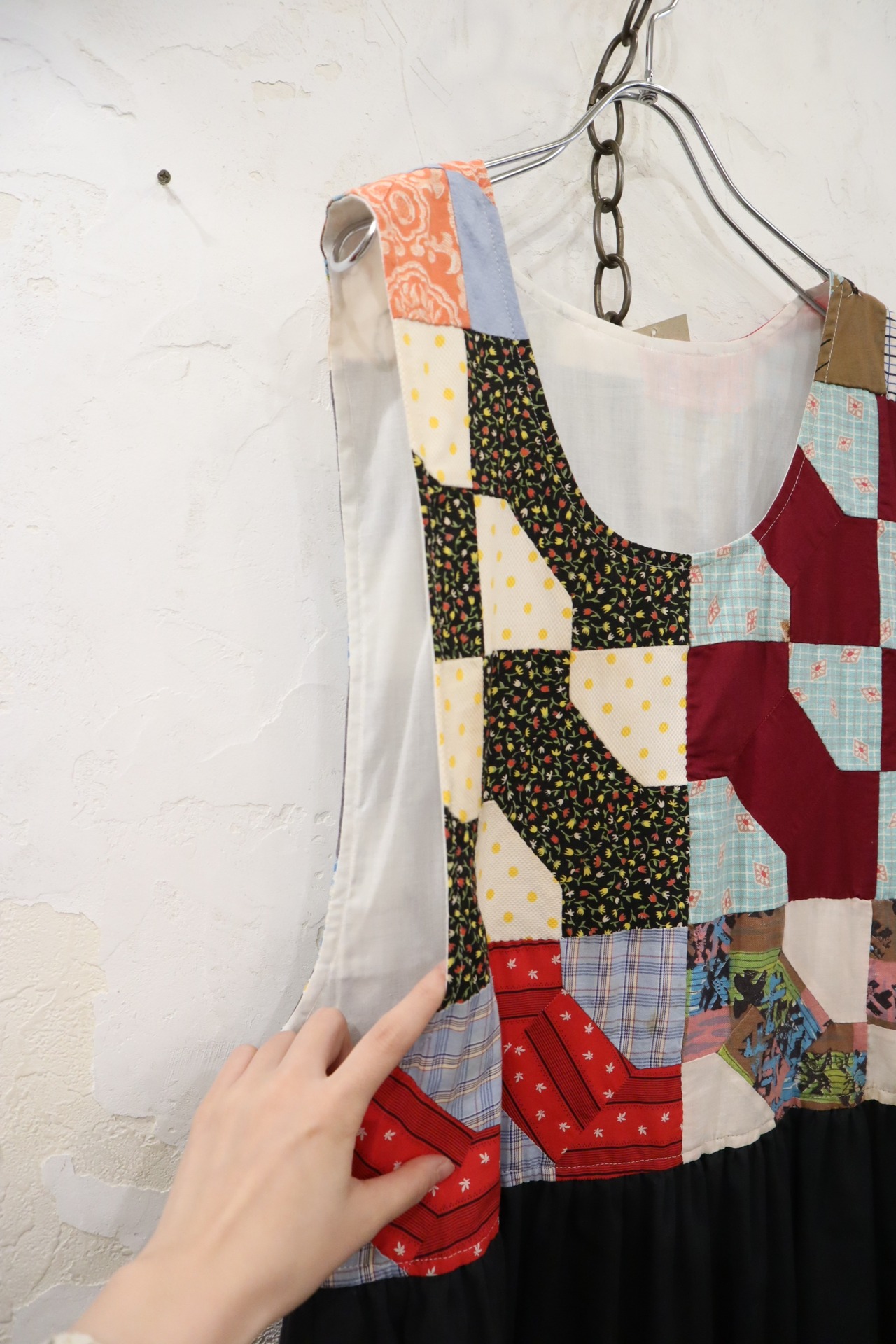 black×colorful patchwork&plain sleeveless over dress [l-4362]