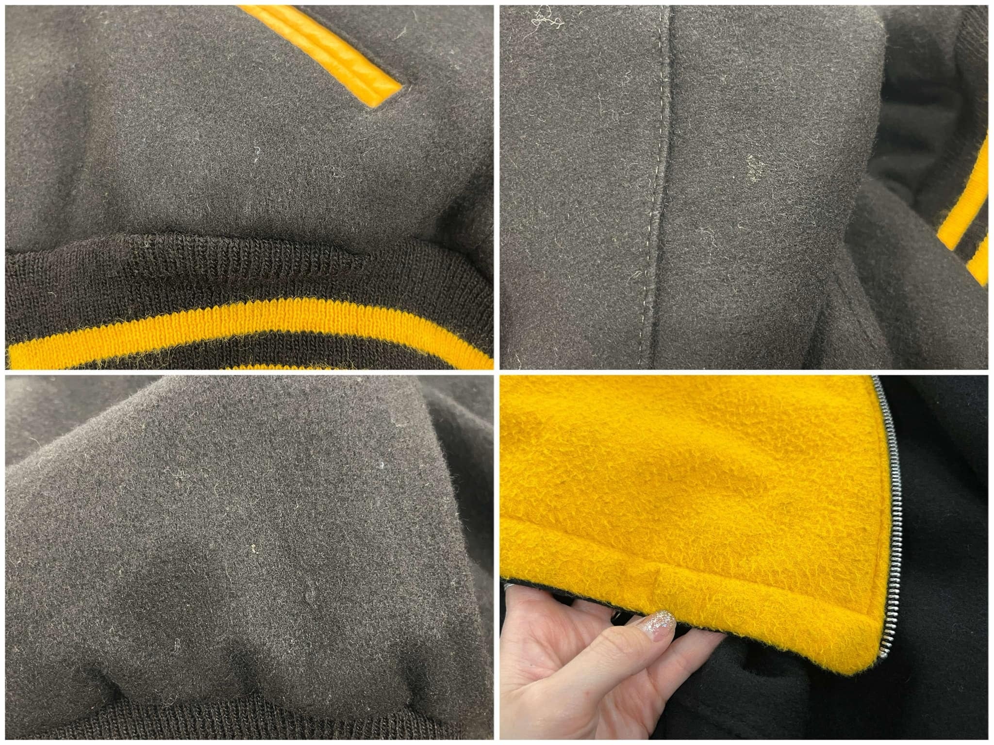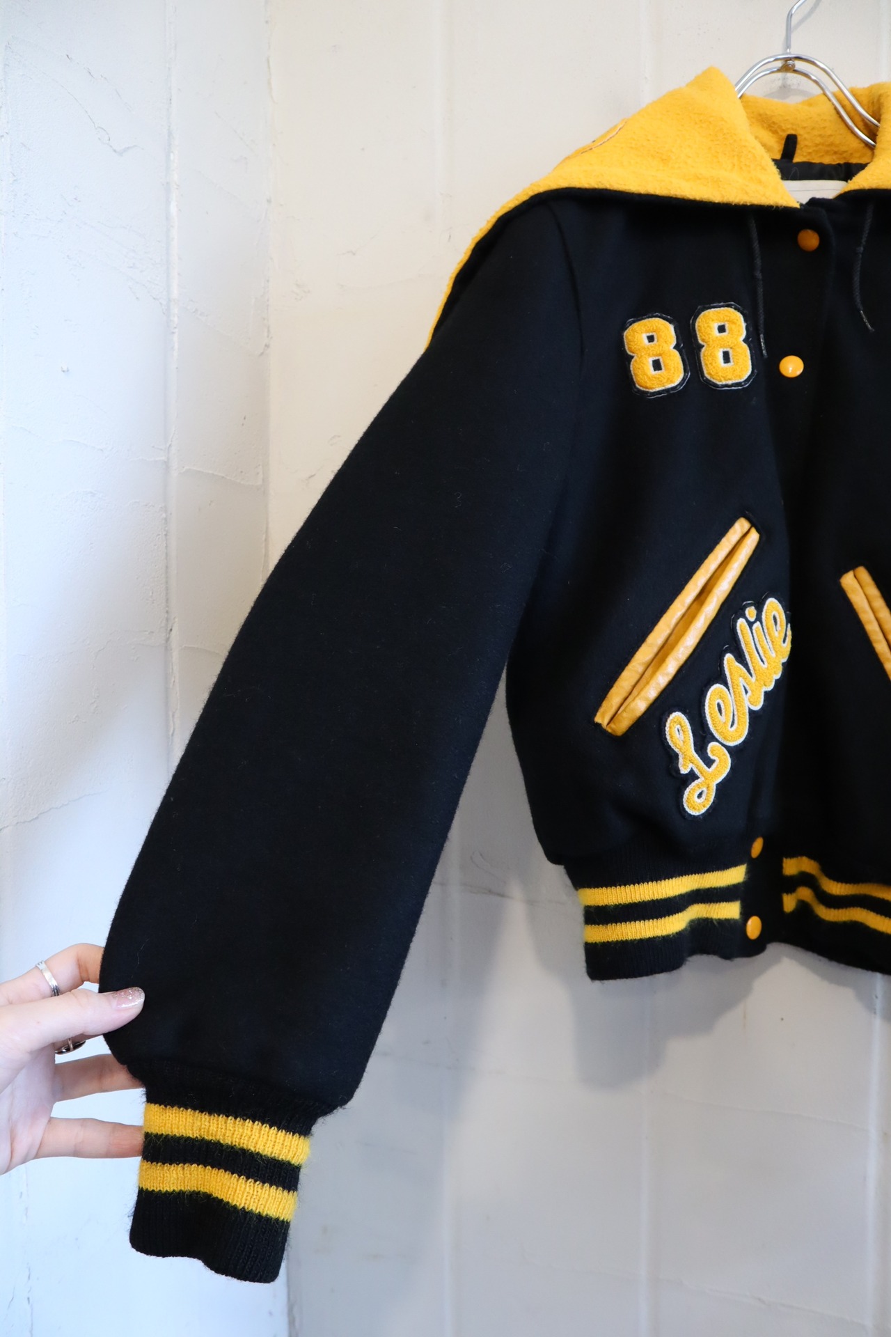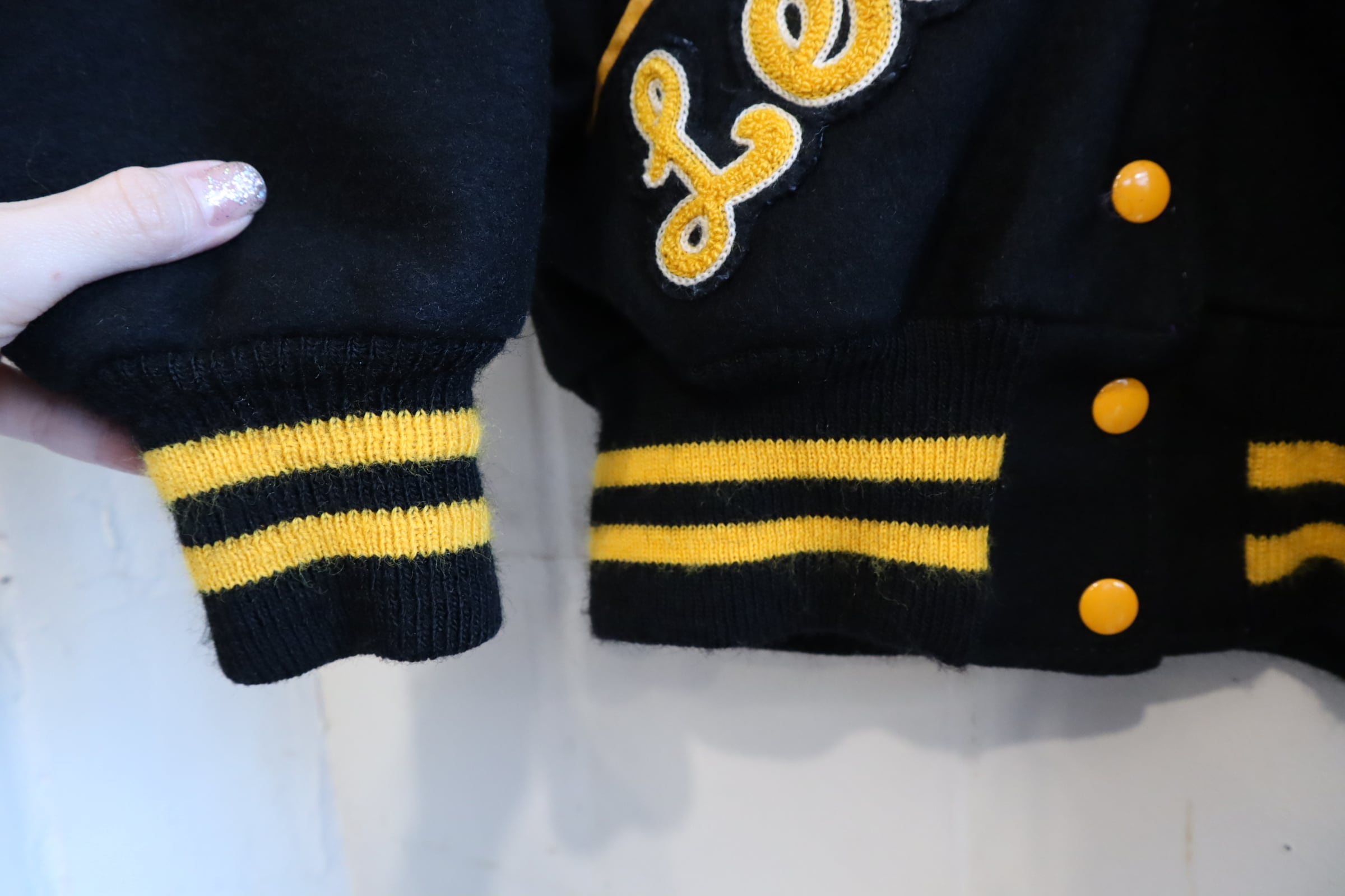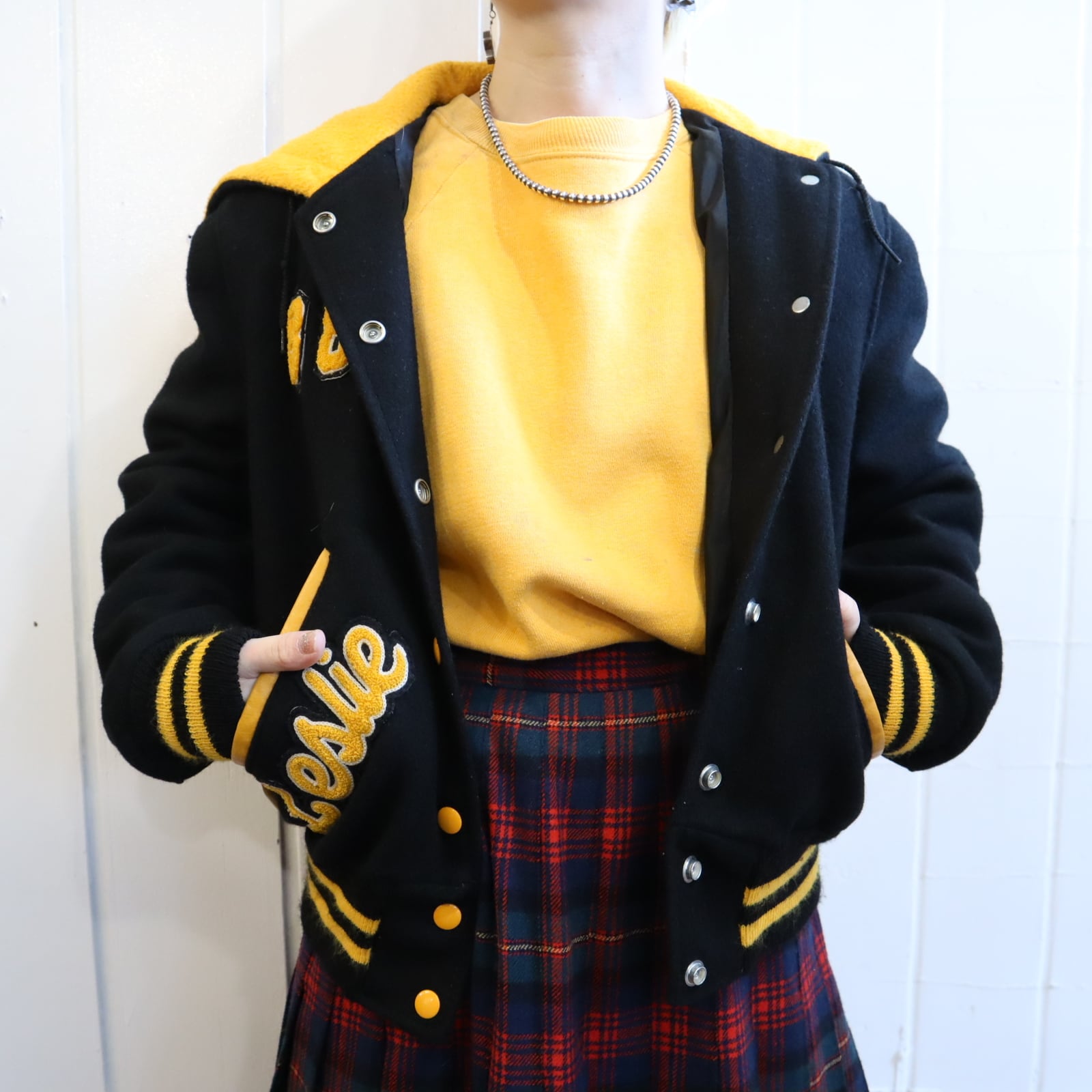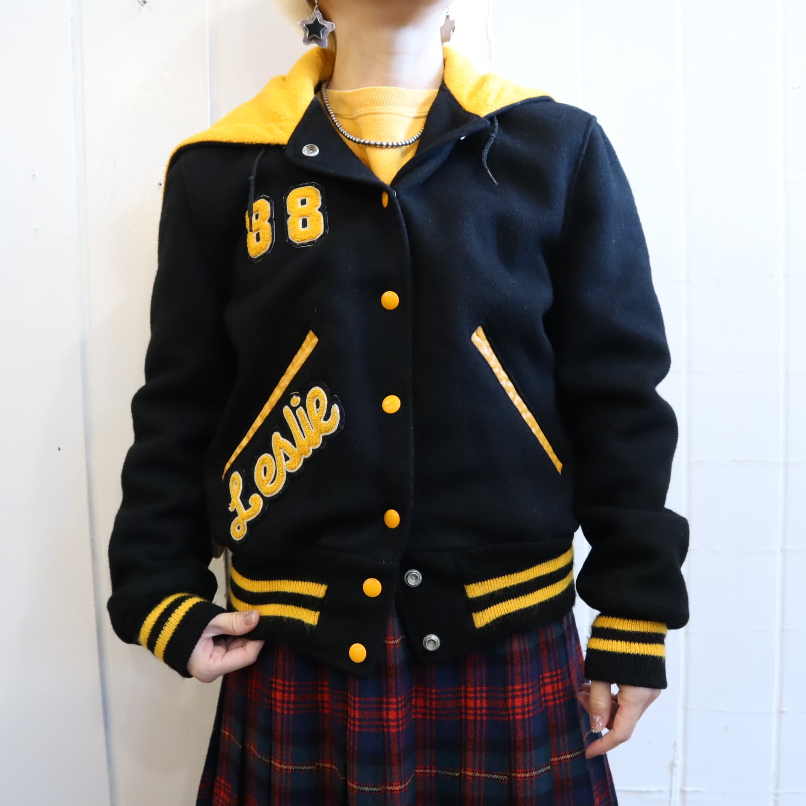 80s black×yellow sheep lettered wappen stadium jumper [l-4364]