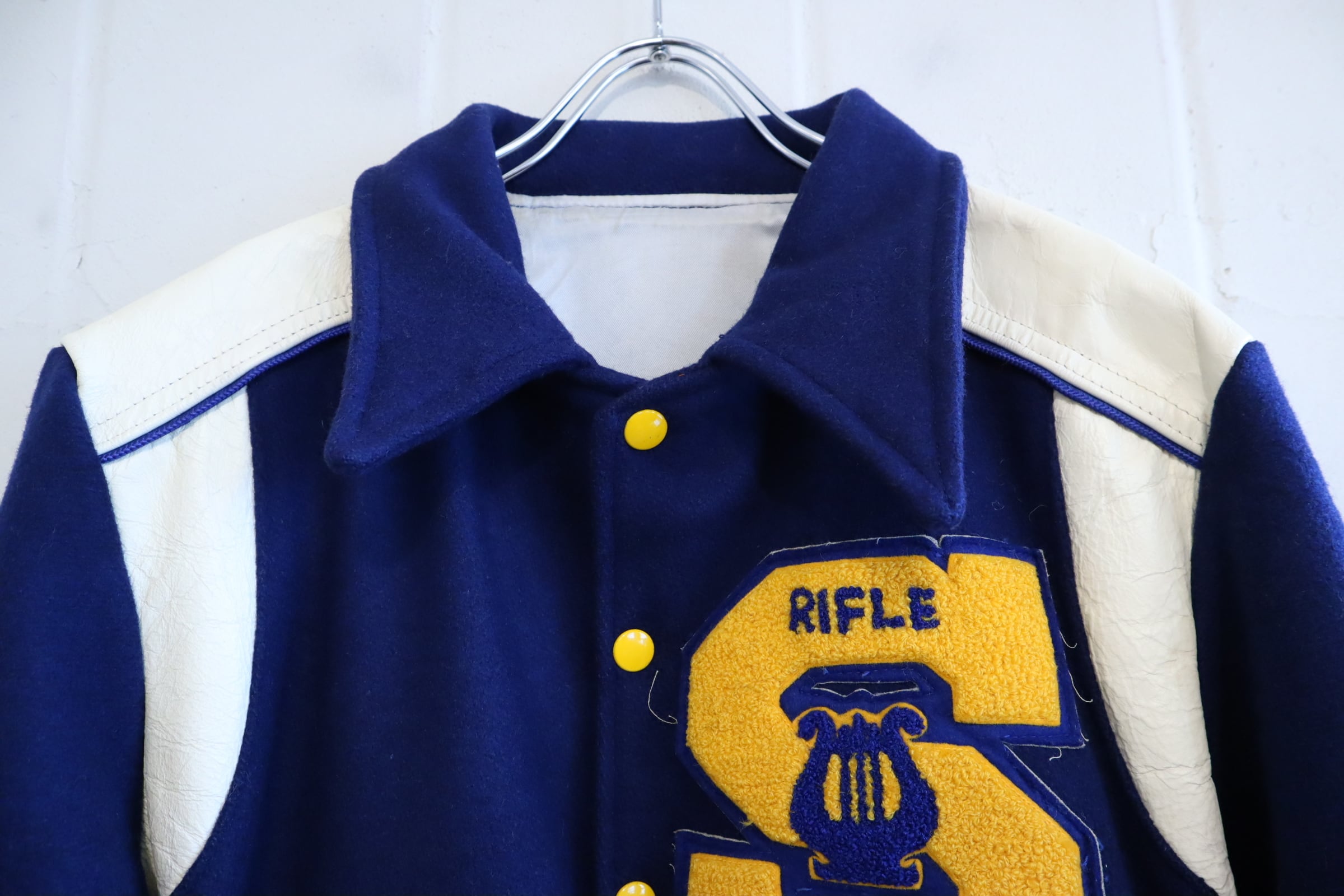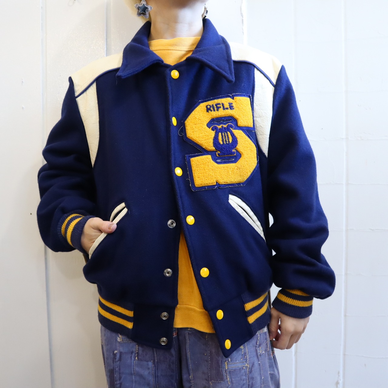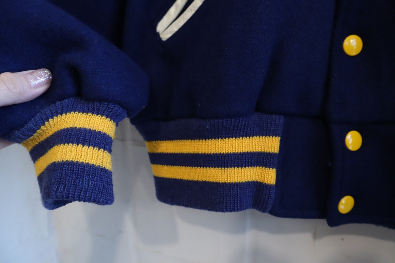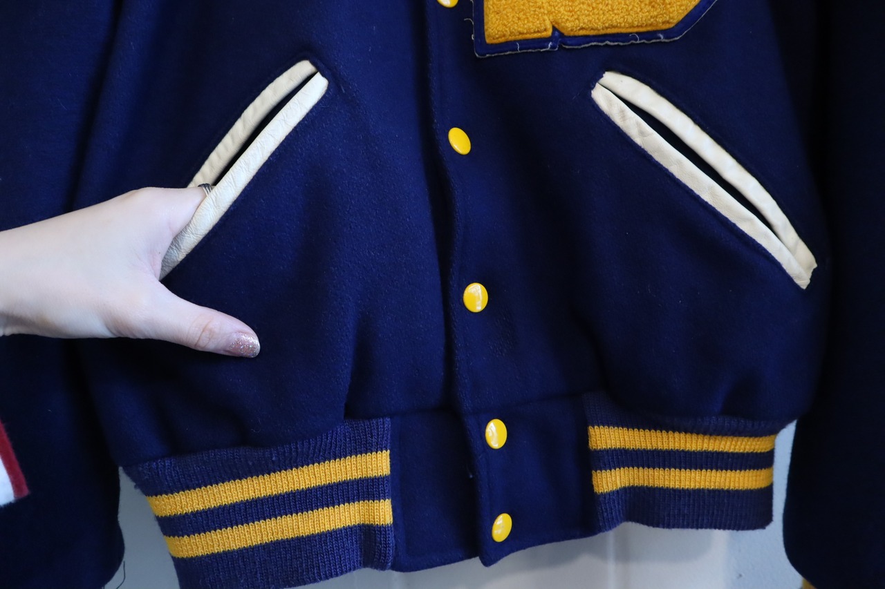 70s navy×yellow leather switch stadium jumper [l-4365]