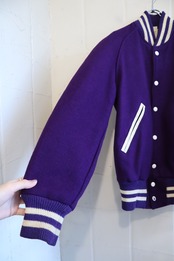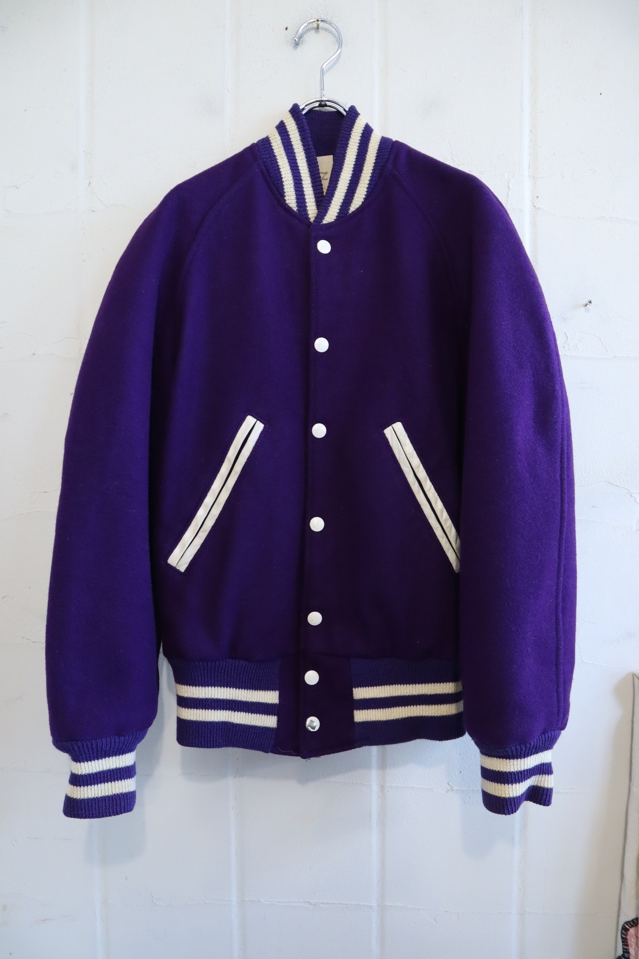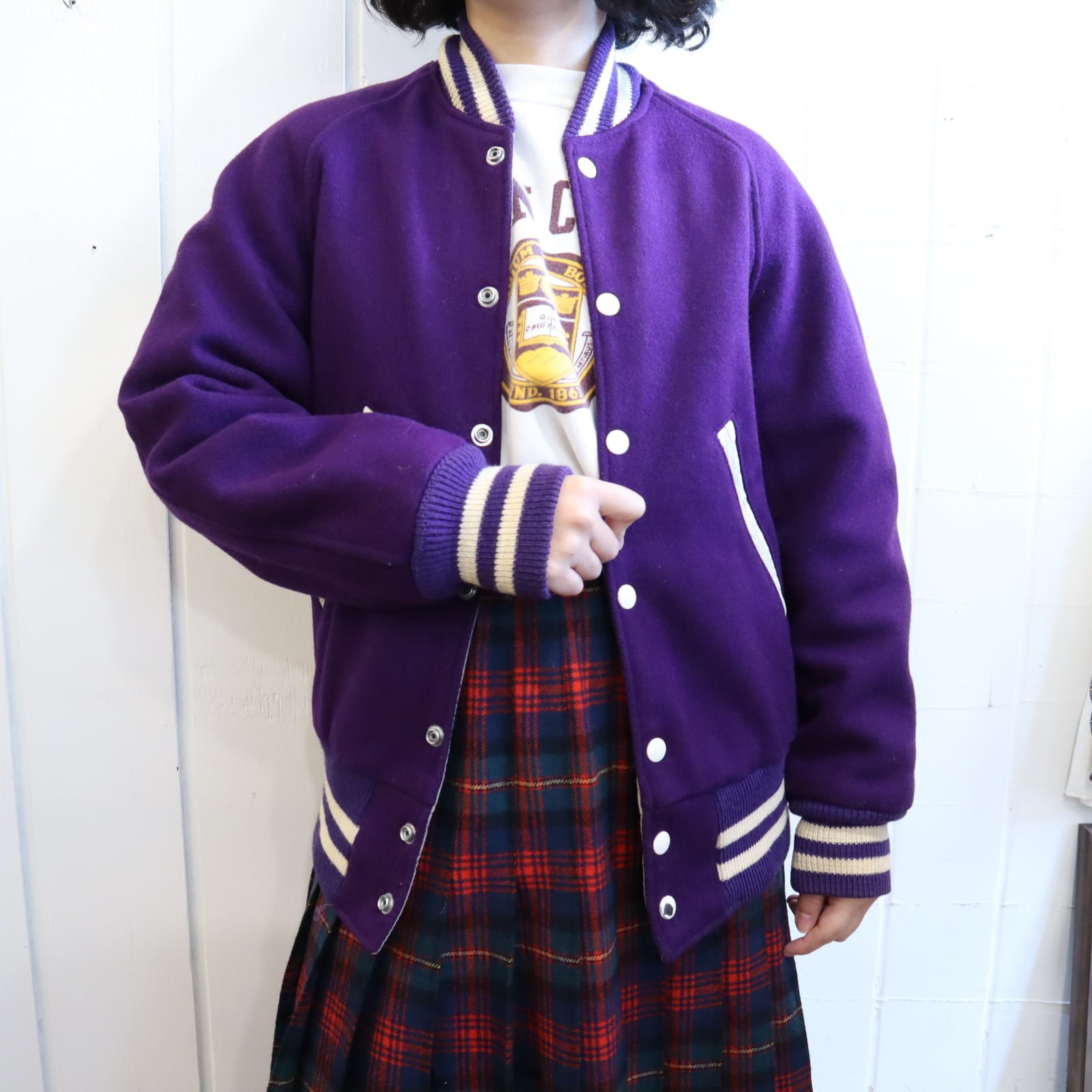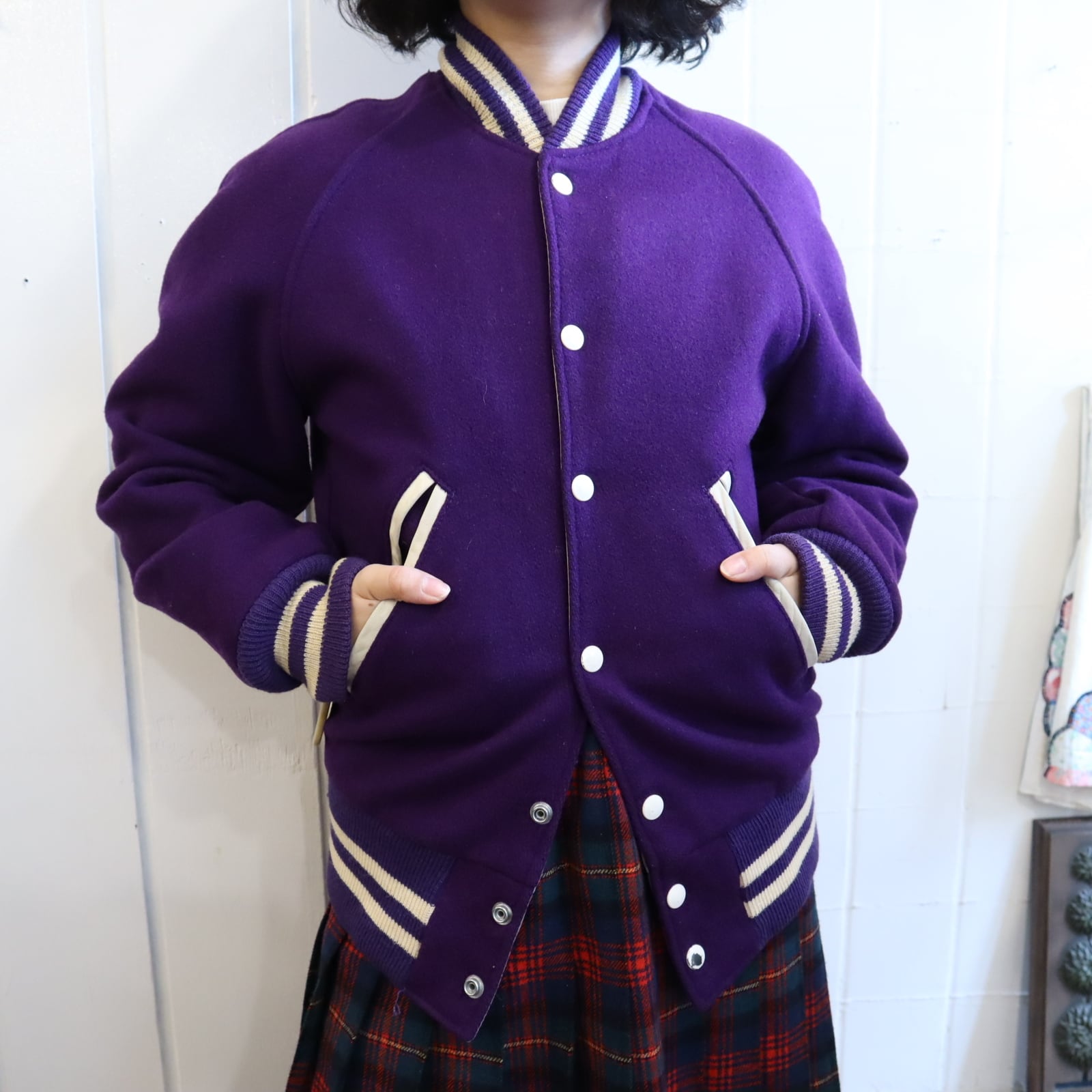 60s- purple×white line lettered wappen stadium jumper [l-4366]