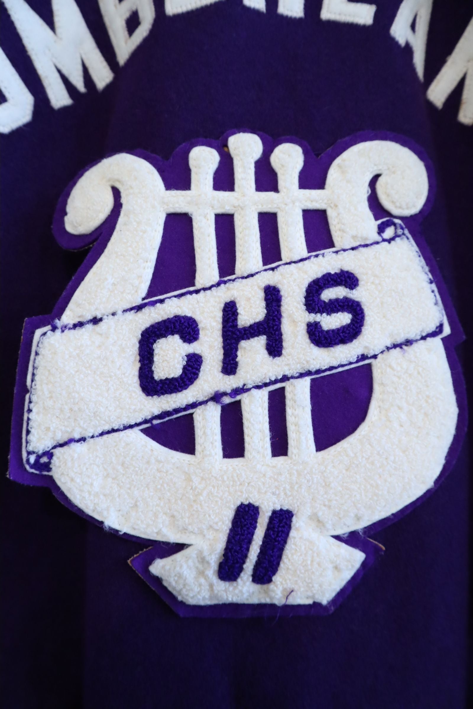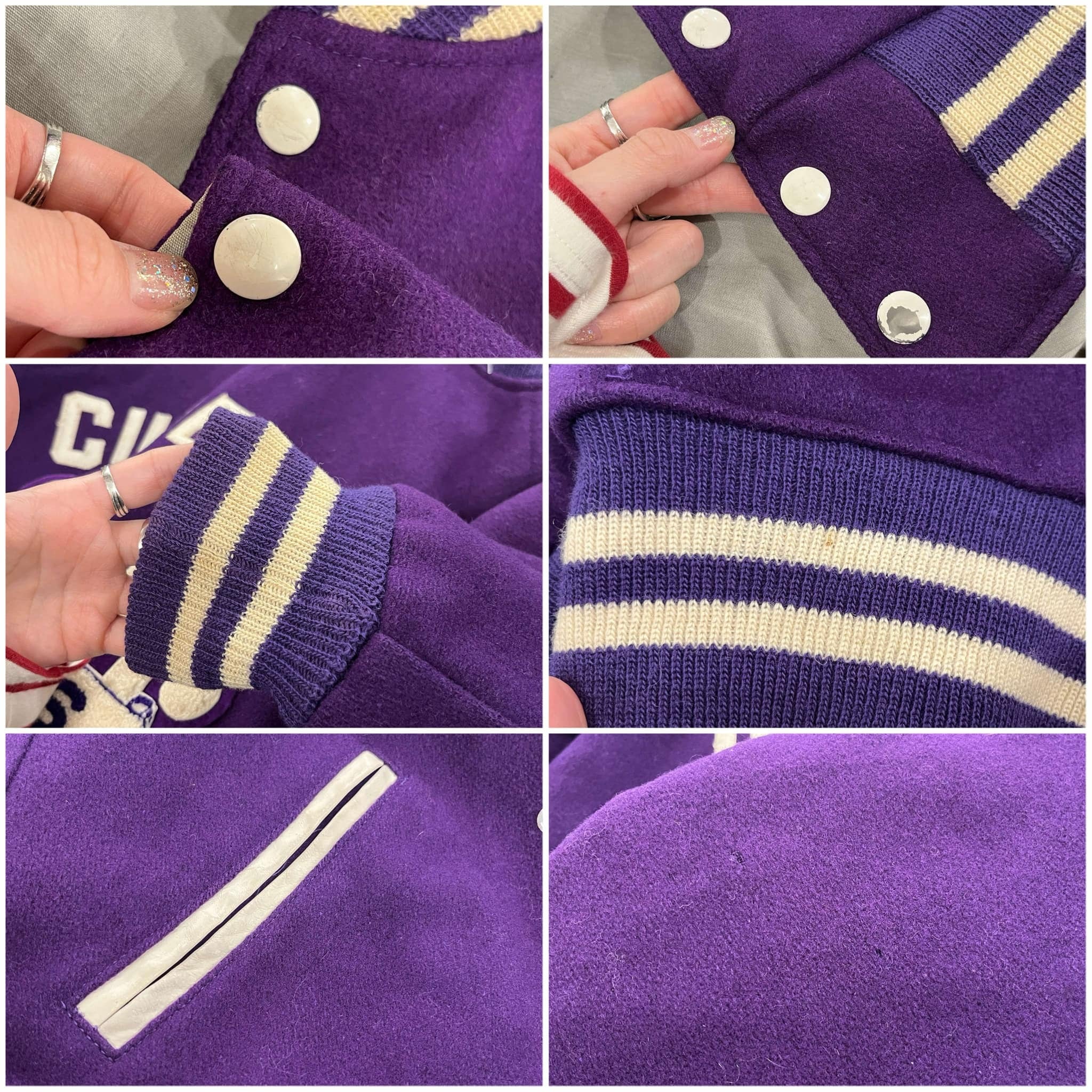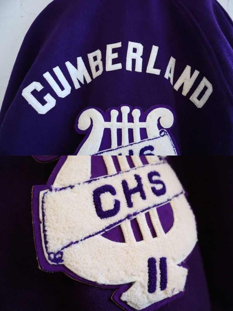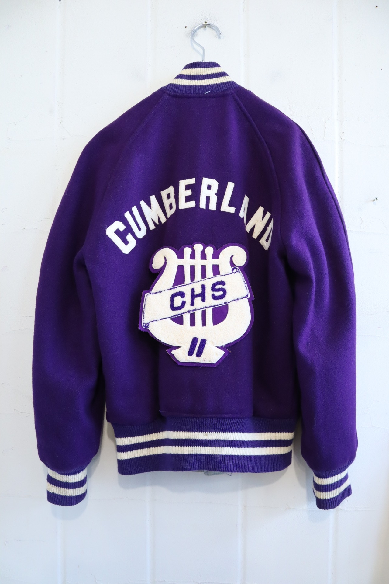 60s- purple×white line lettered wappen stadium jumper [l-4366]