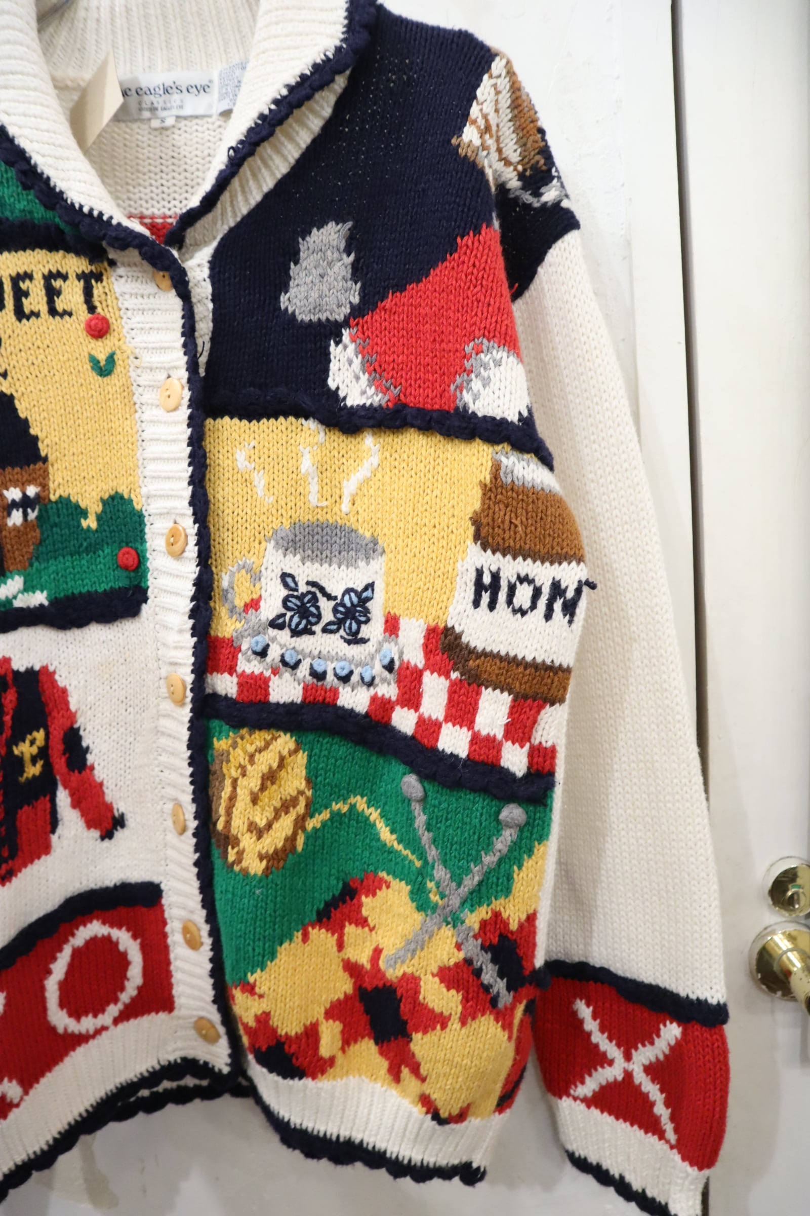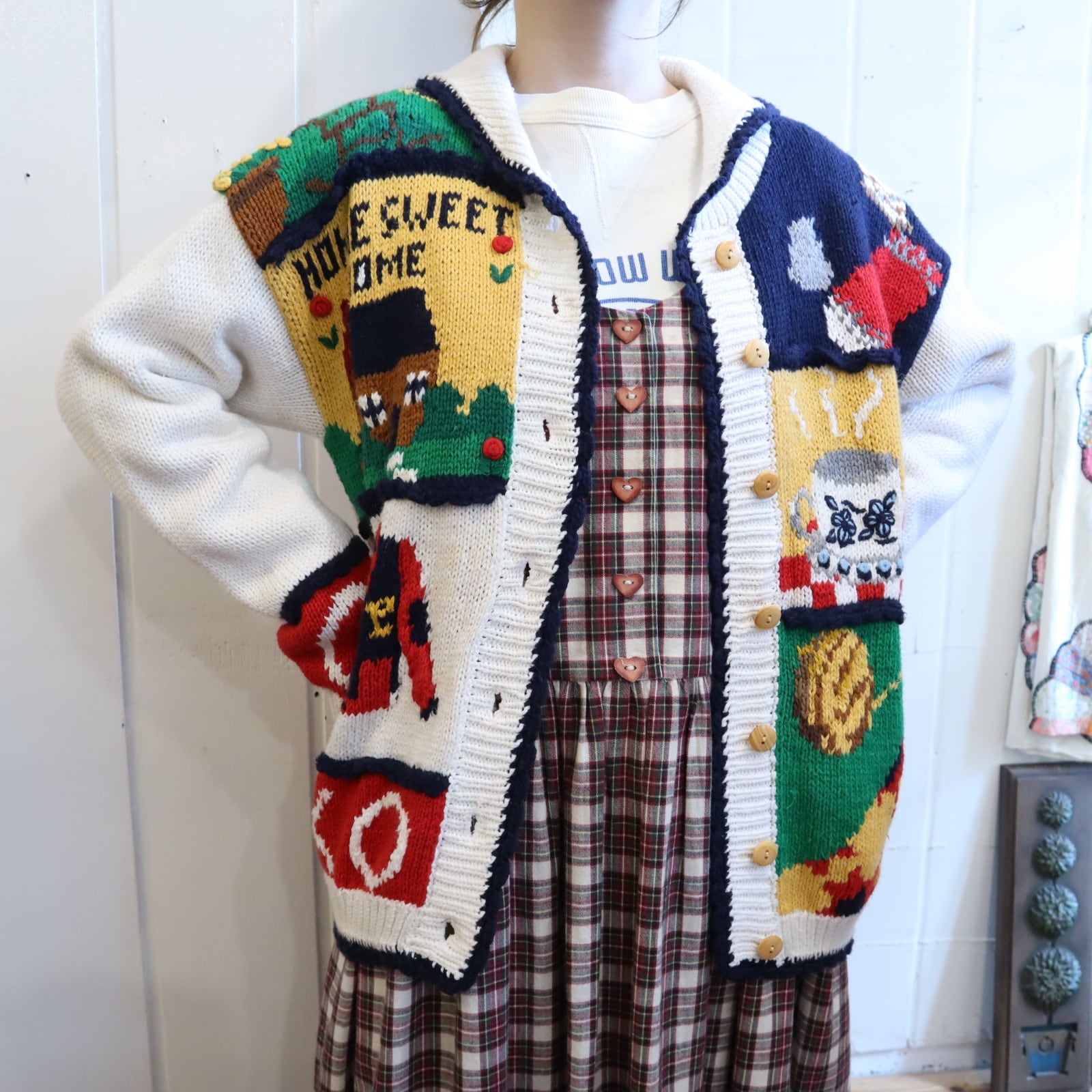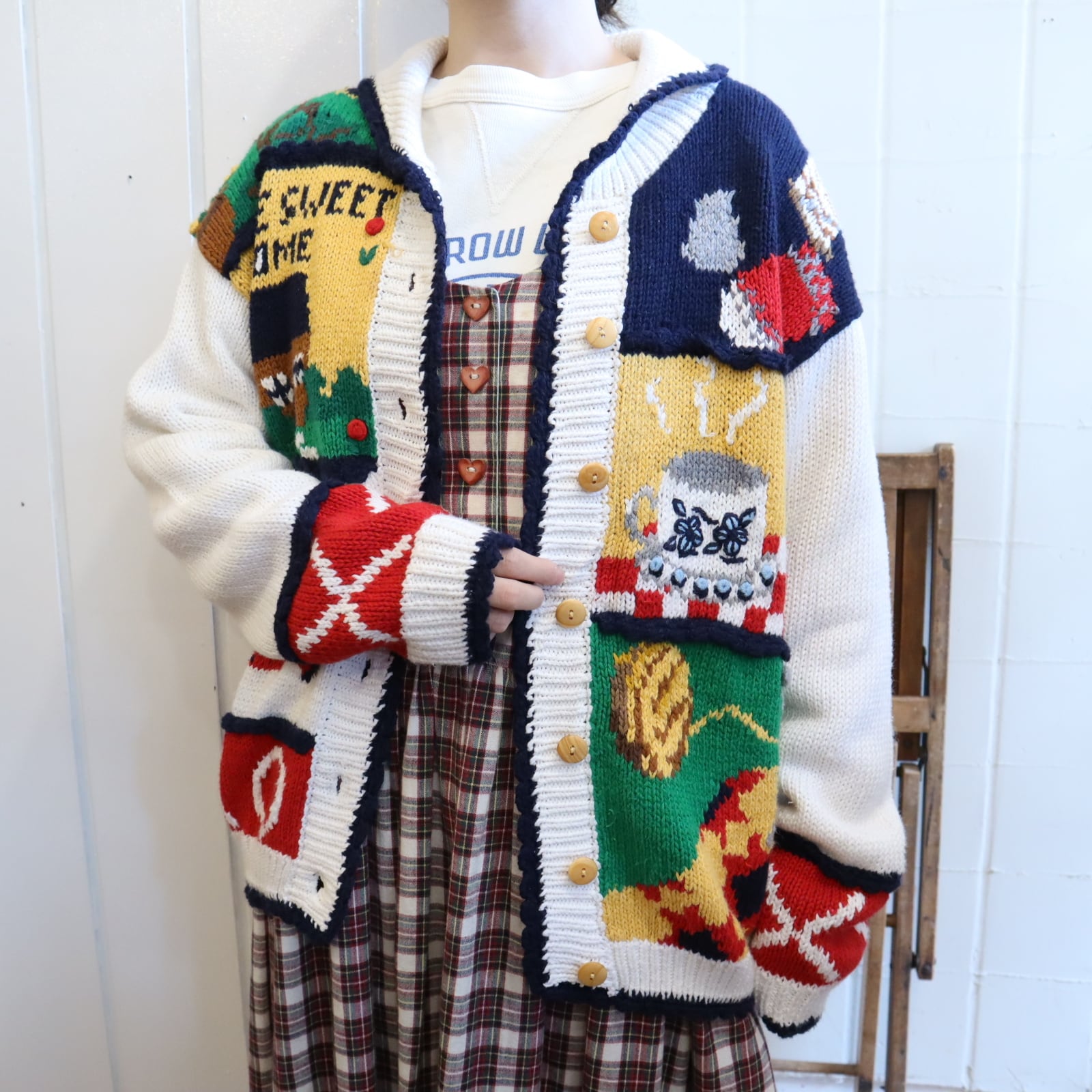 ほっこりとした優しいデザインがキュートなニットカーディガンです。