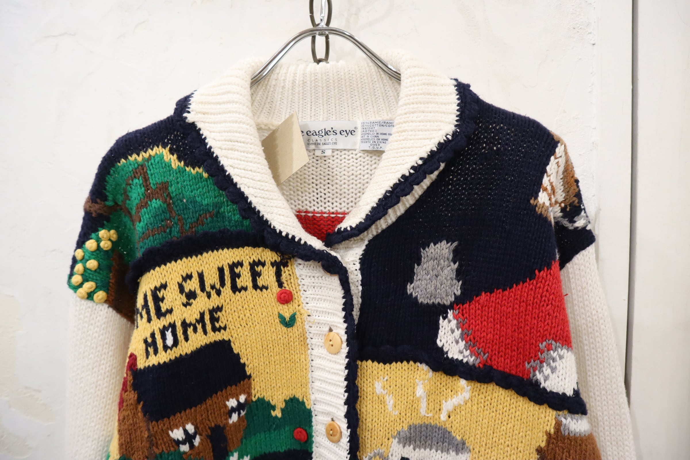 white×colorful ramie cotton knit cardigan [l-4368]