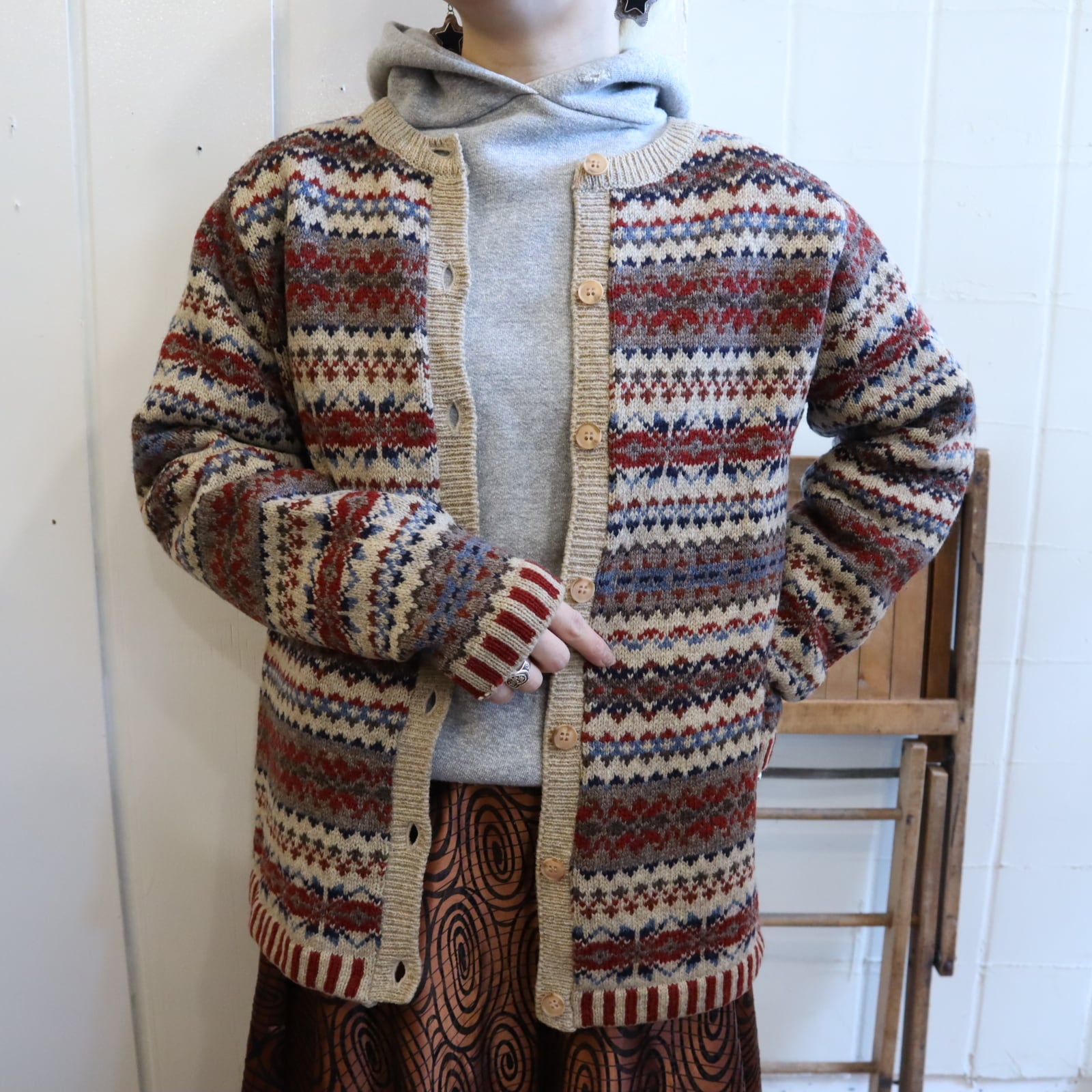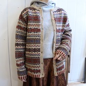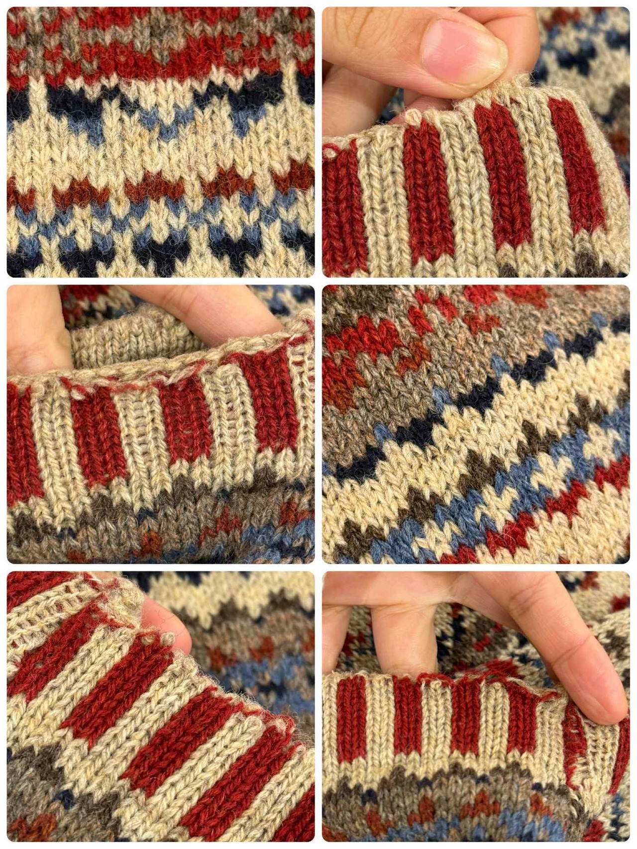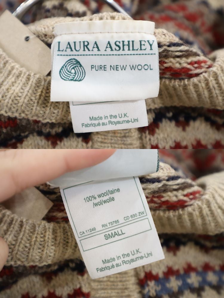 Laura Ashley beige×red×navy nordic pattern wool knit cardigan [l-4369]