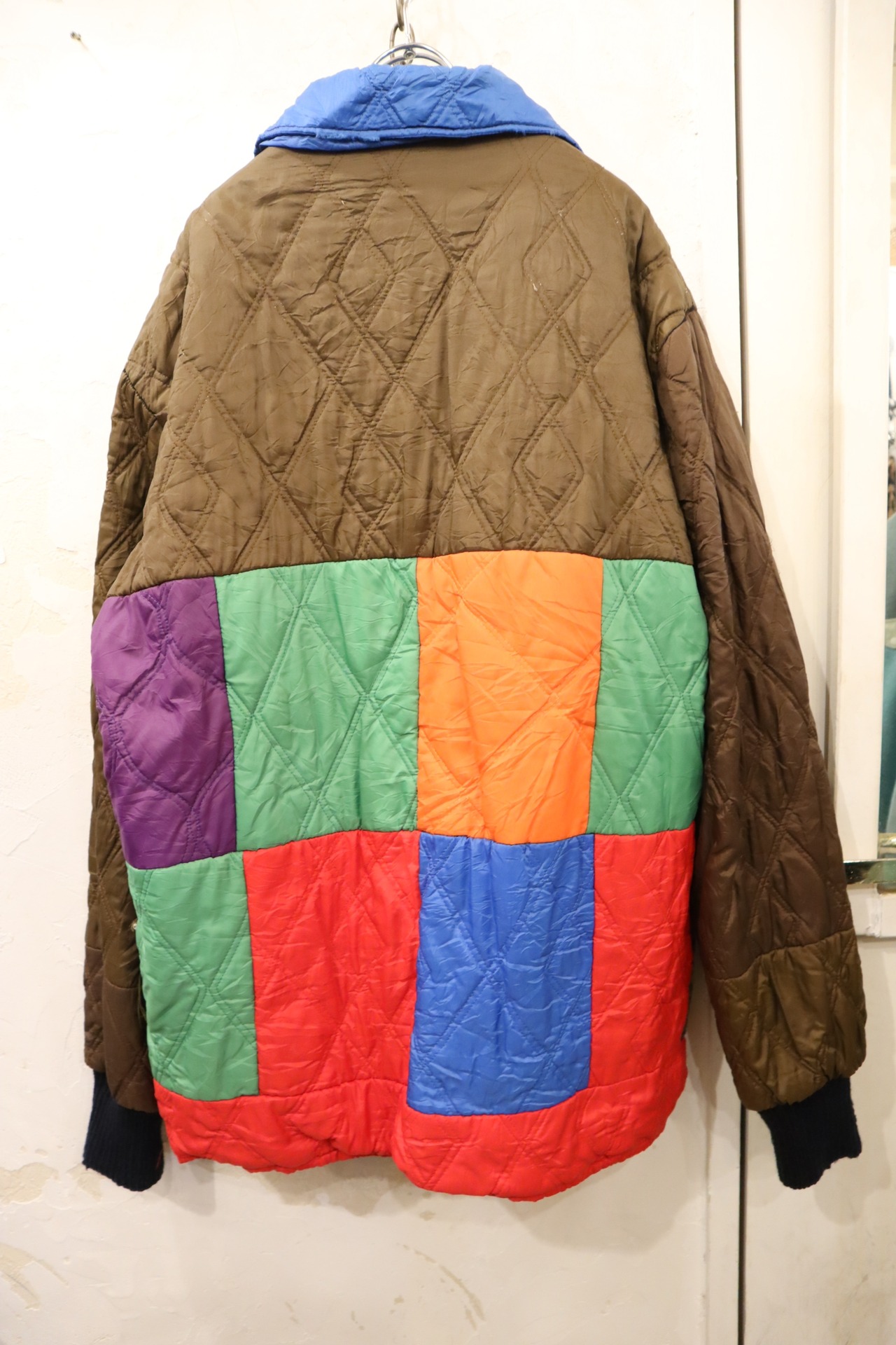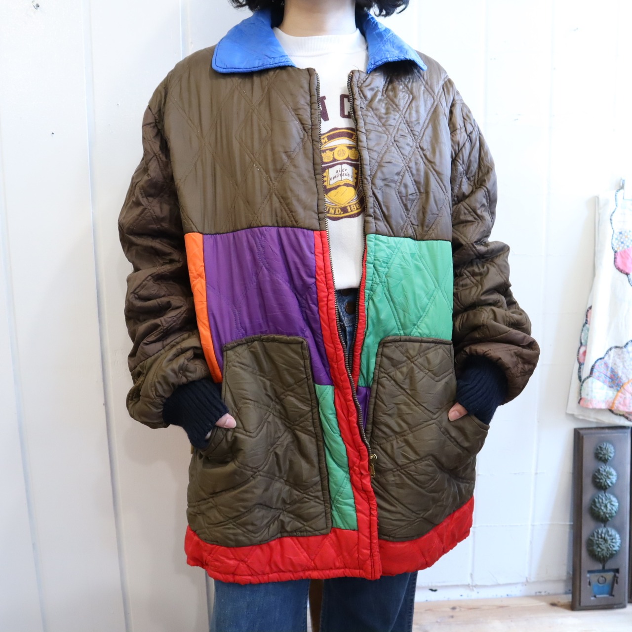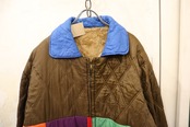 brown×colorful quilting&fakefur reversible jacket [l-4374]