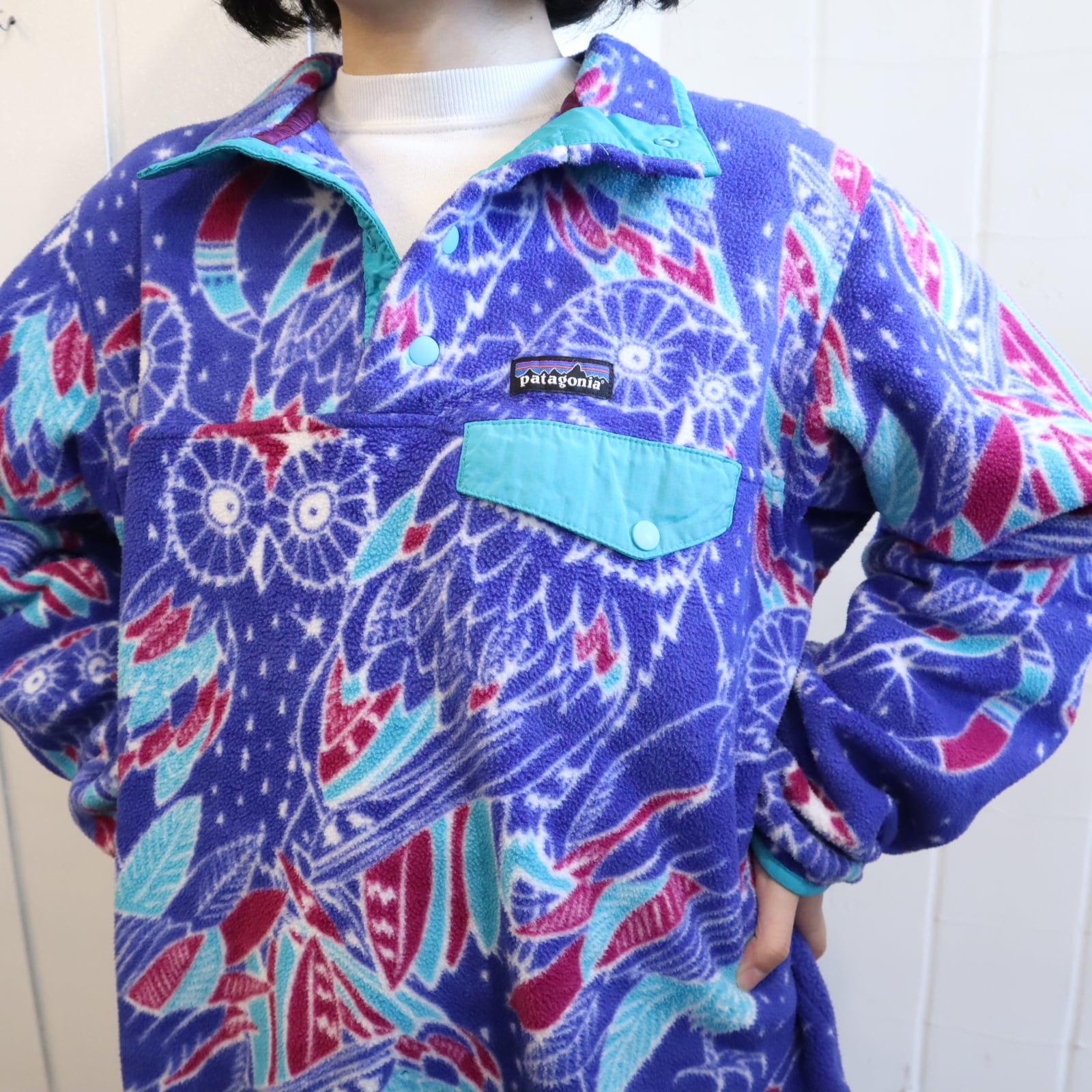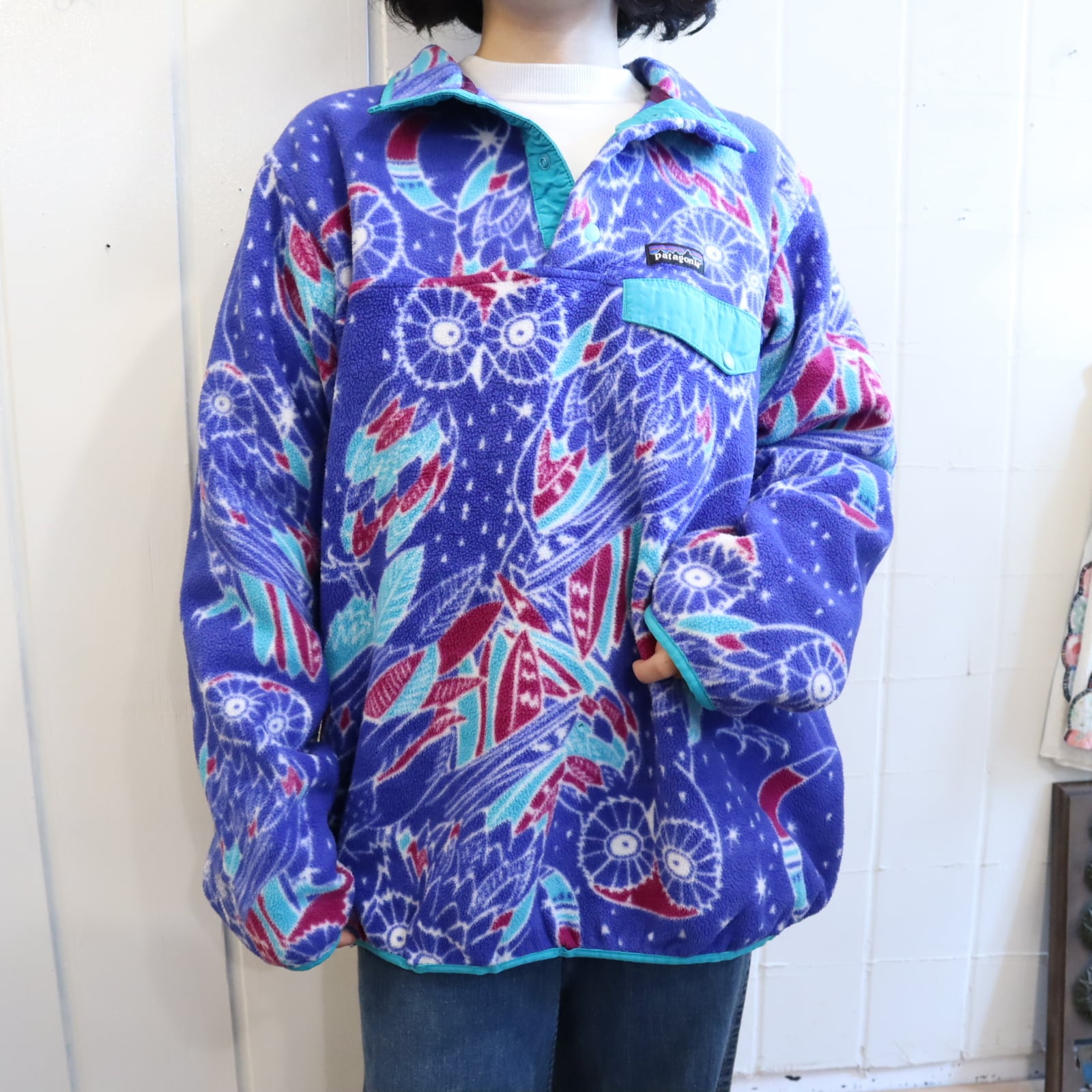 Patagonia blue×pinkpurple owl pullover snap-t fleece [k-4382]