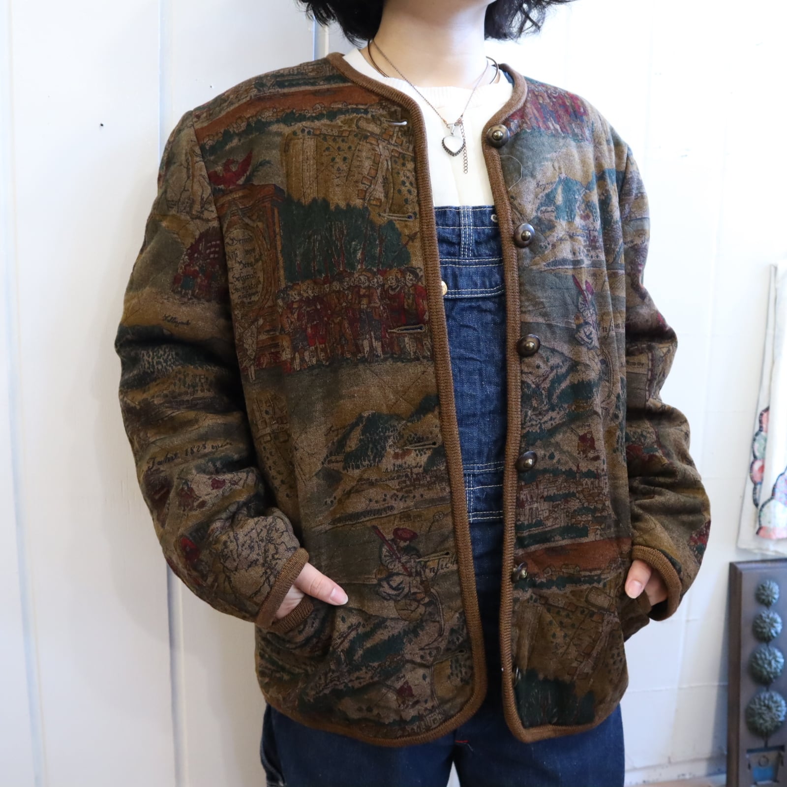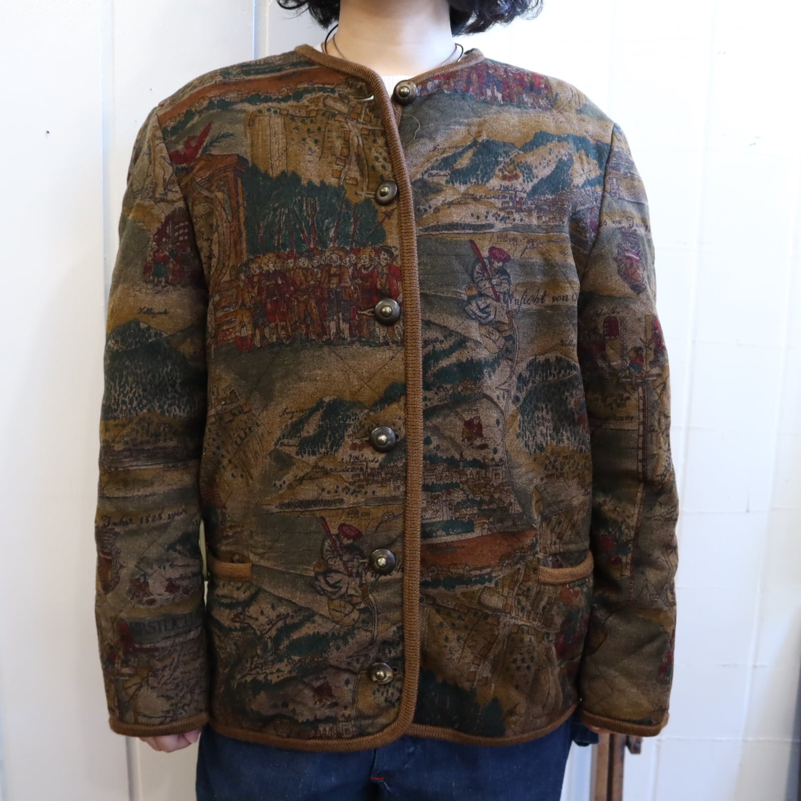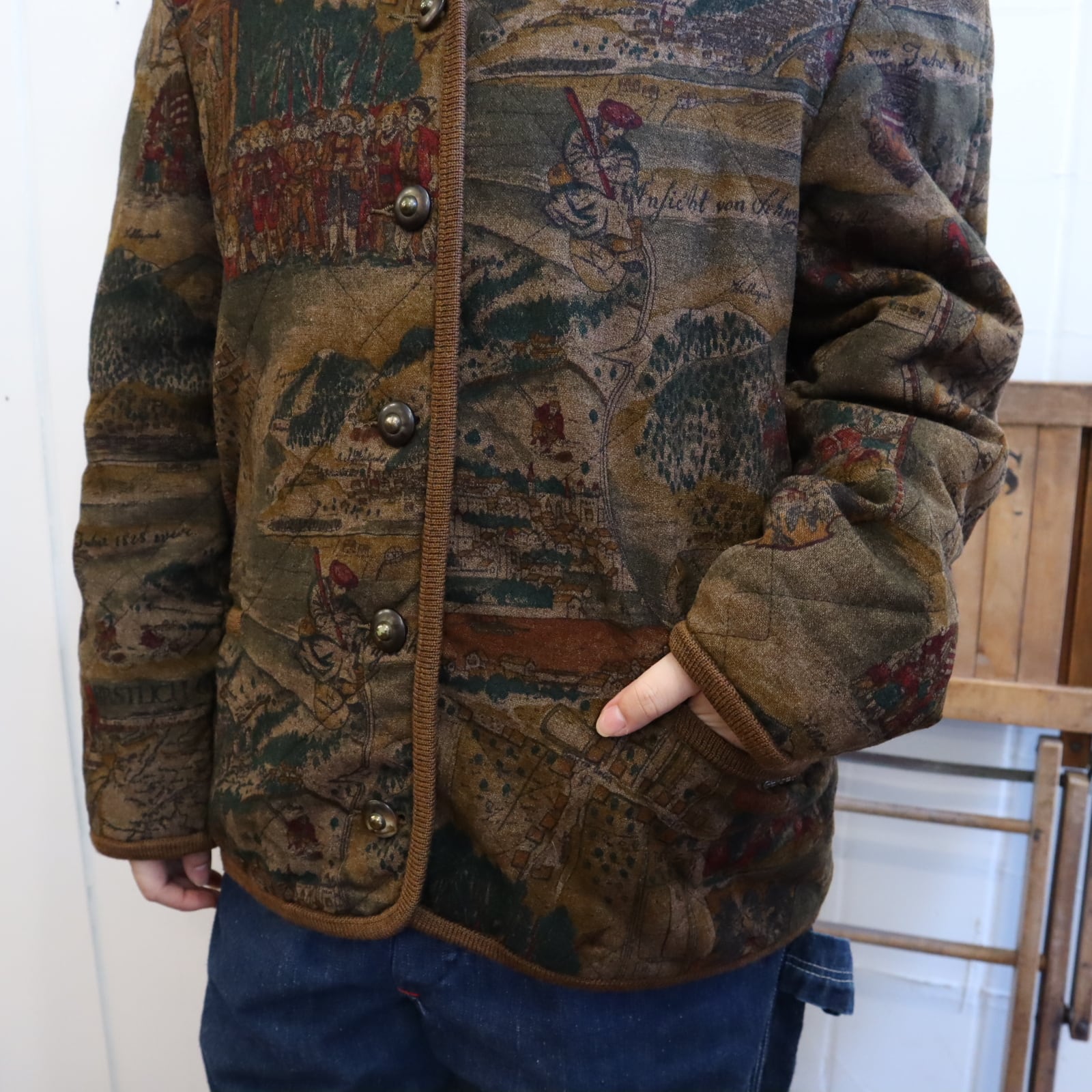 brown×green human pattern tyrol quilting jacket [l-4384]