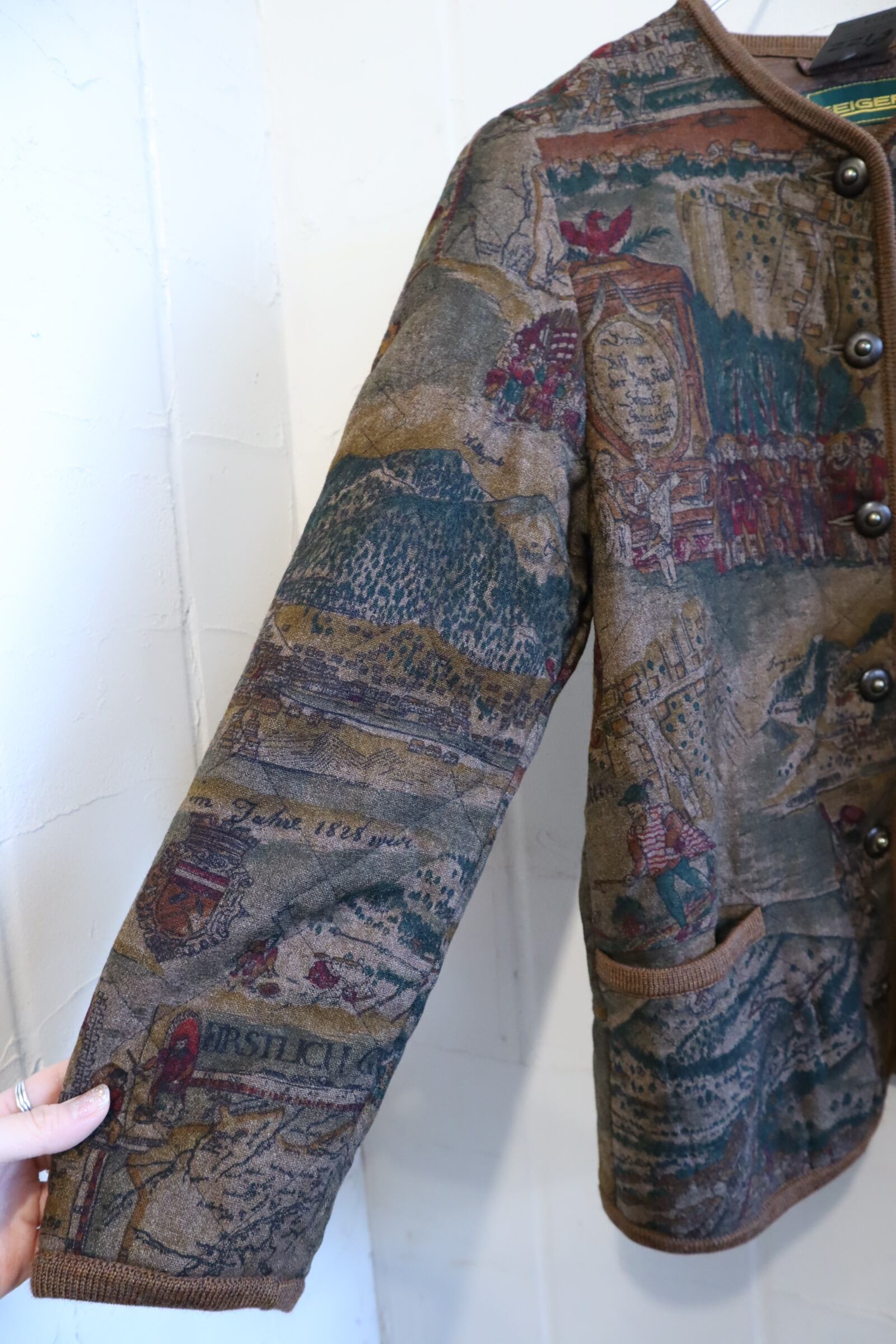 地図のようなユニークなテキスタイルが素敵なチロルジャケット。