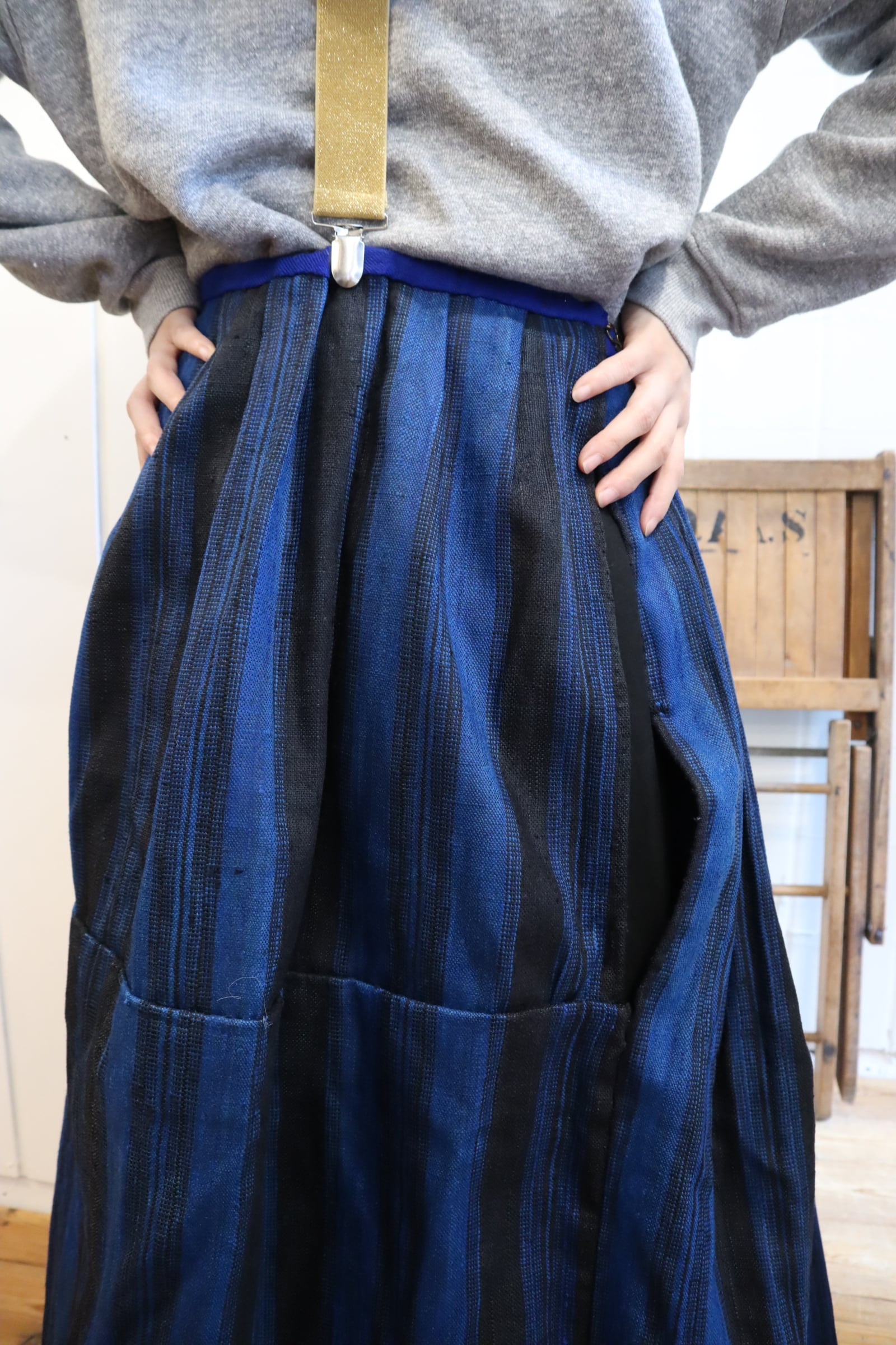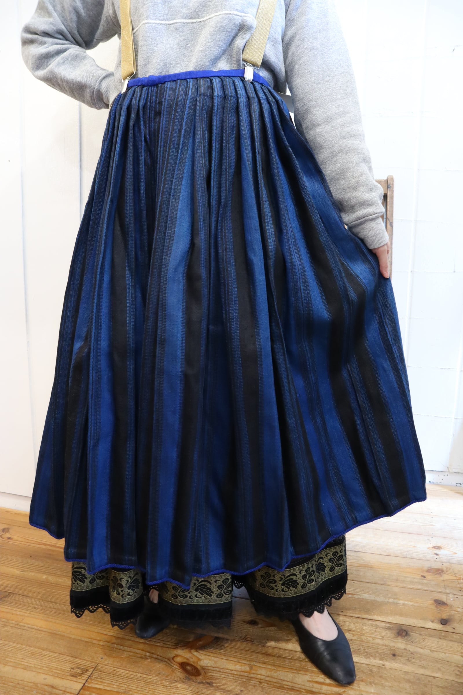 antique blue×black stripe skirt [l-4386]