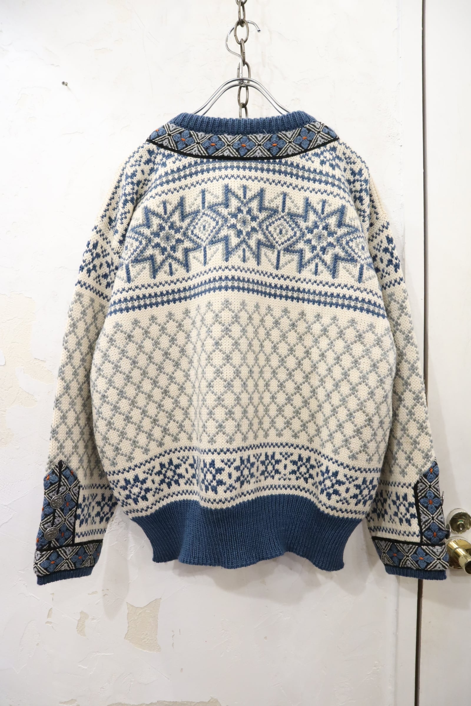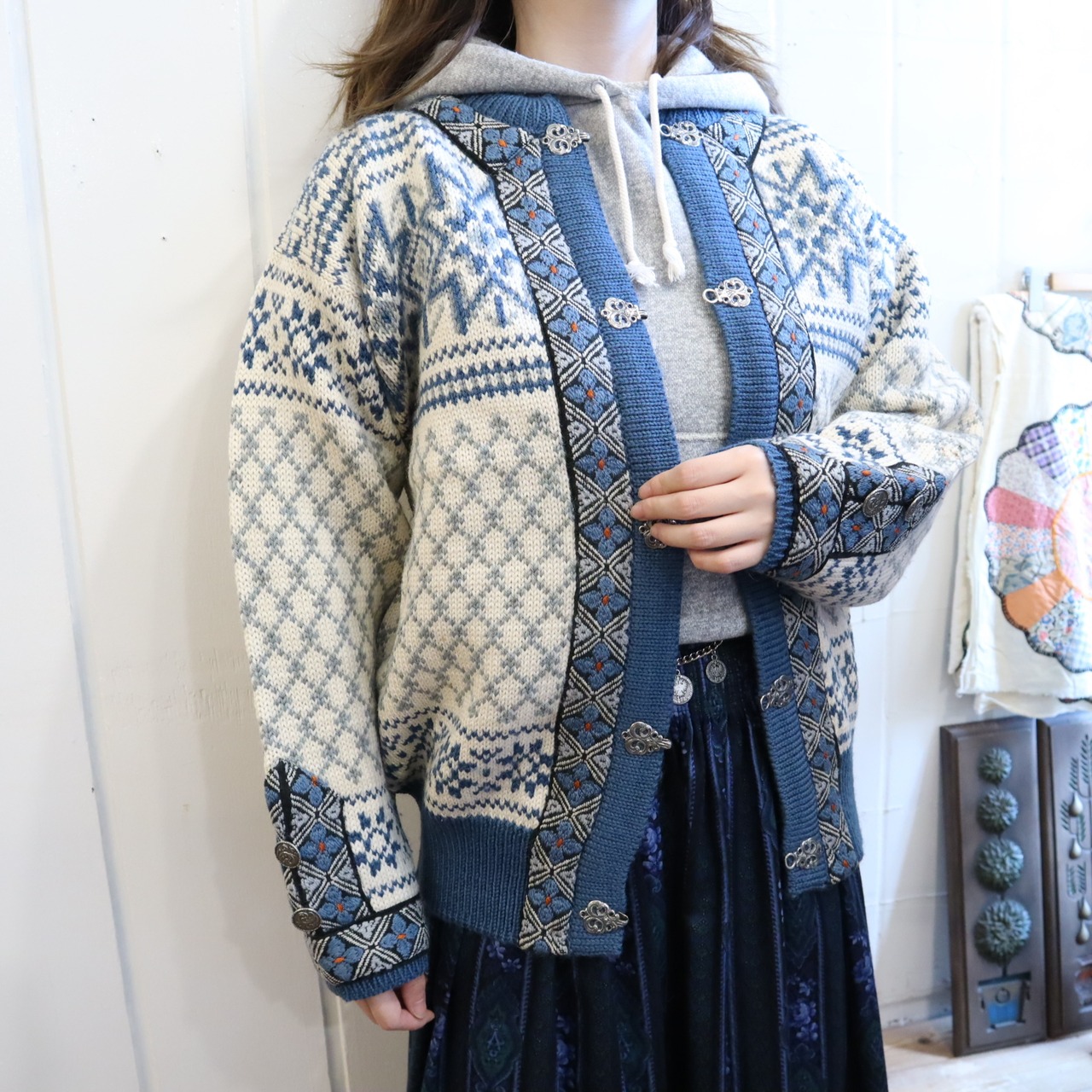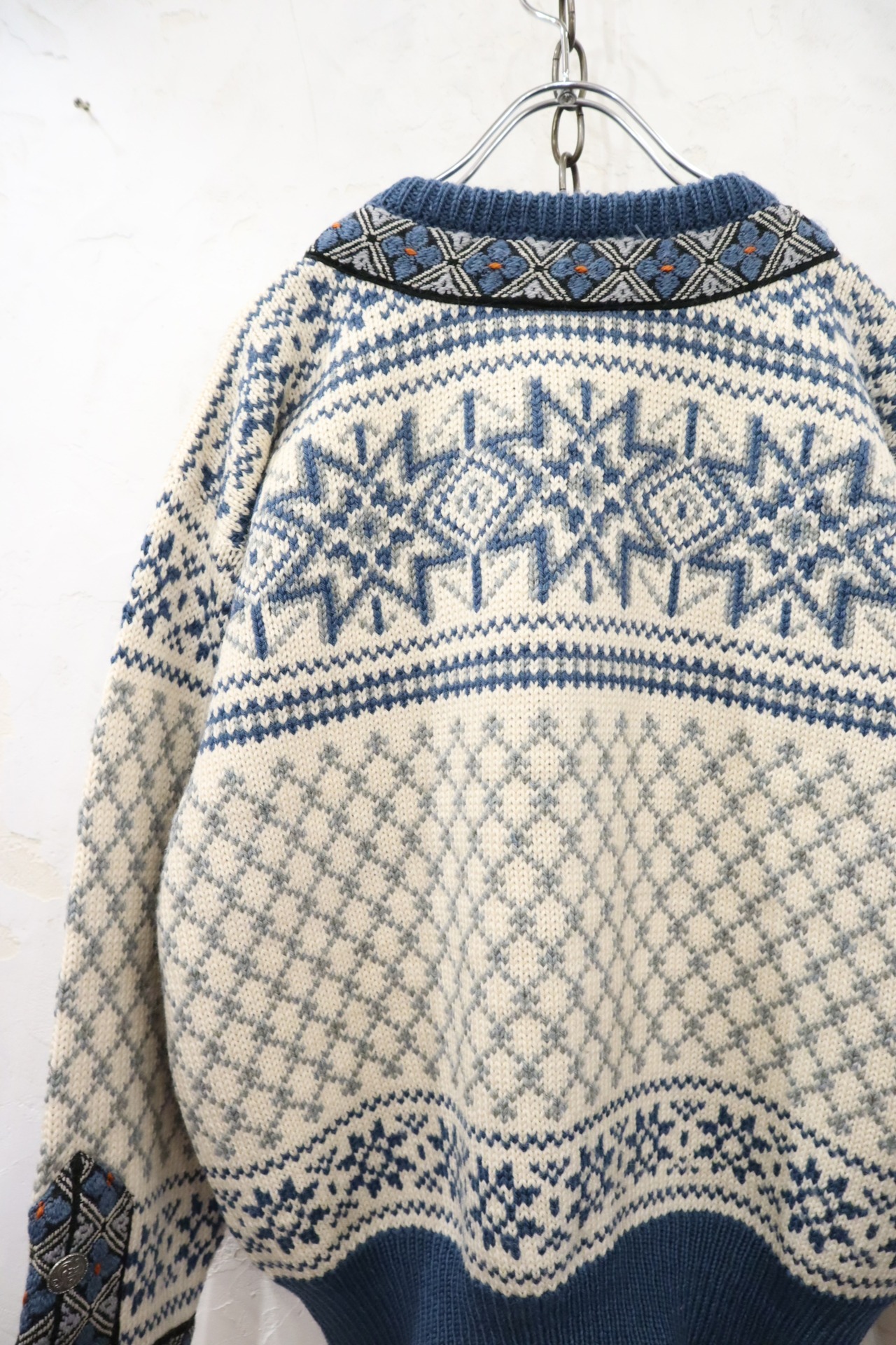 offwhite×lightblue nordic knit cardigan [l-4389]