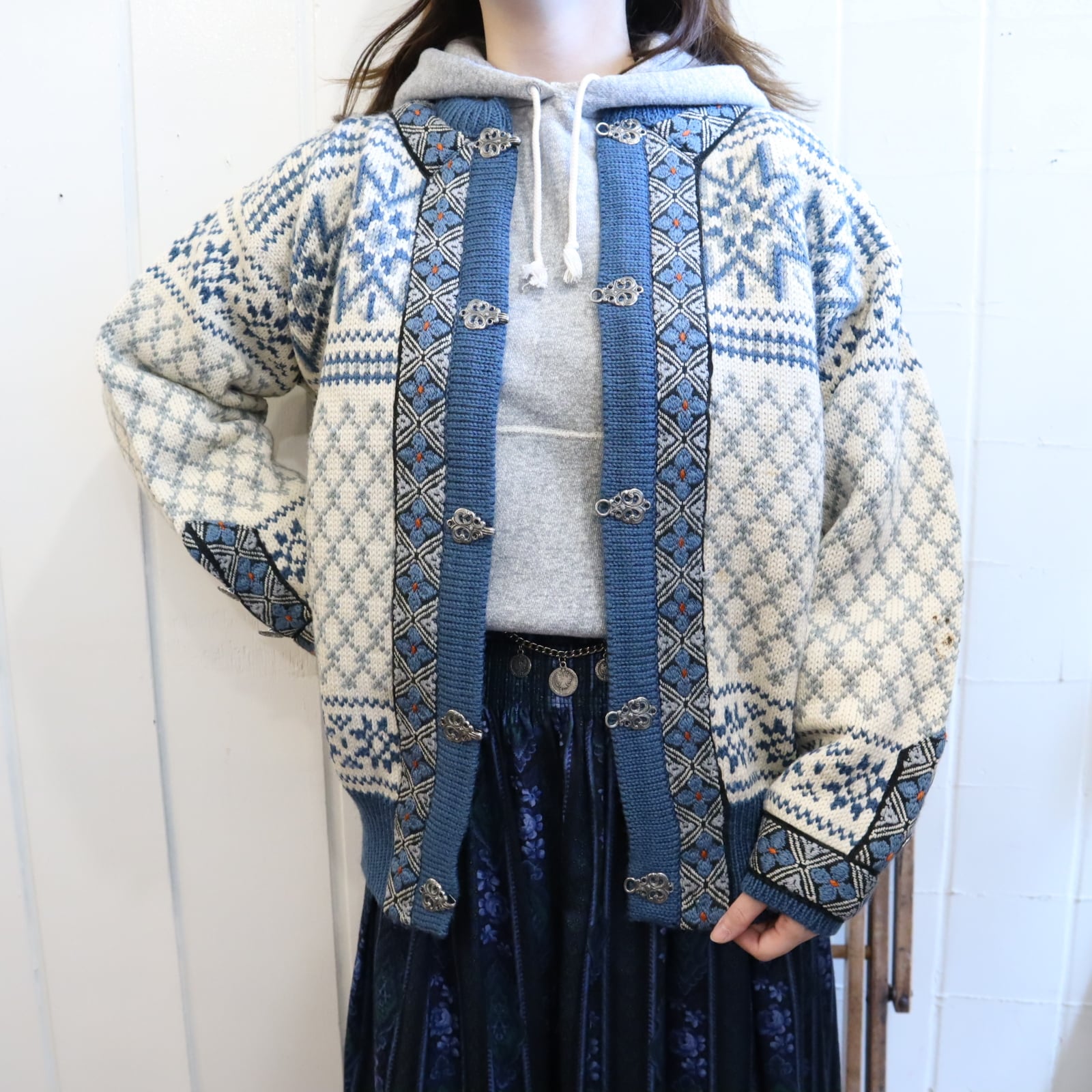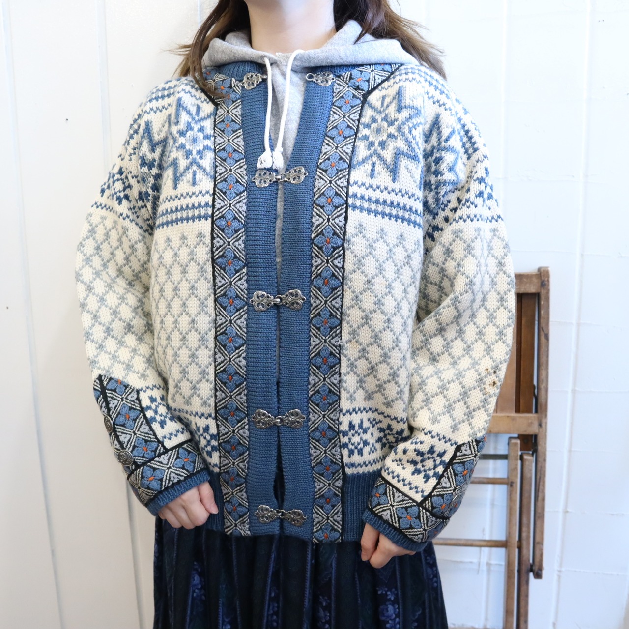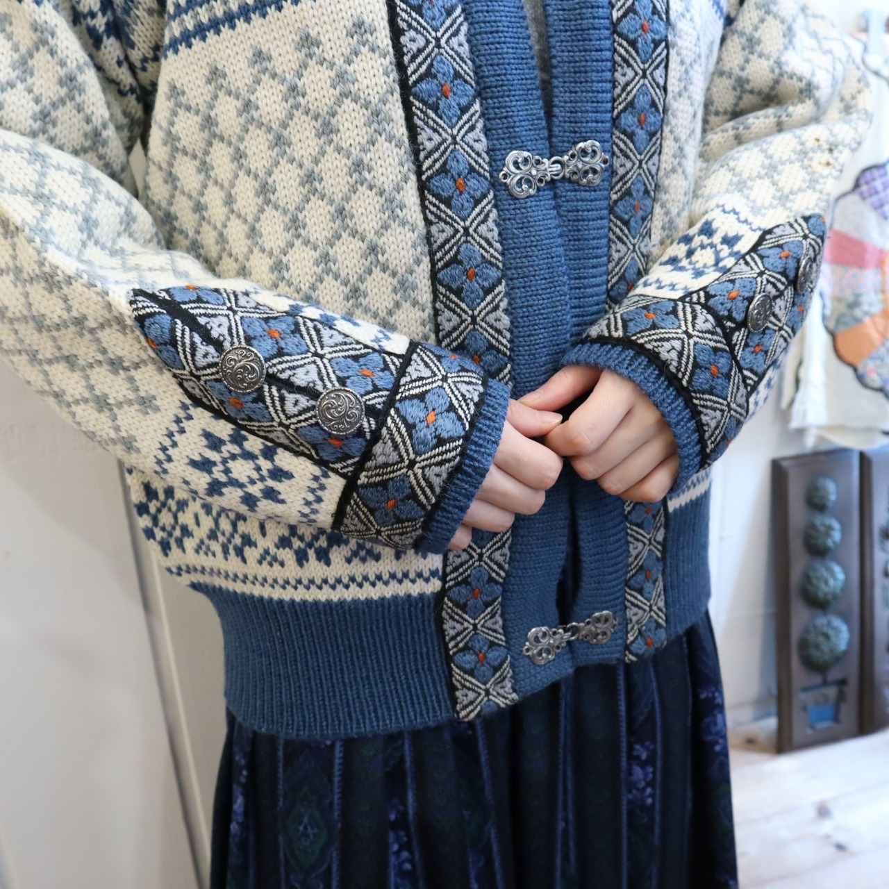 offwhite×lightblue nordic knit cardigan [l-4389]