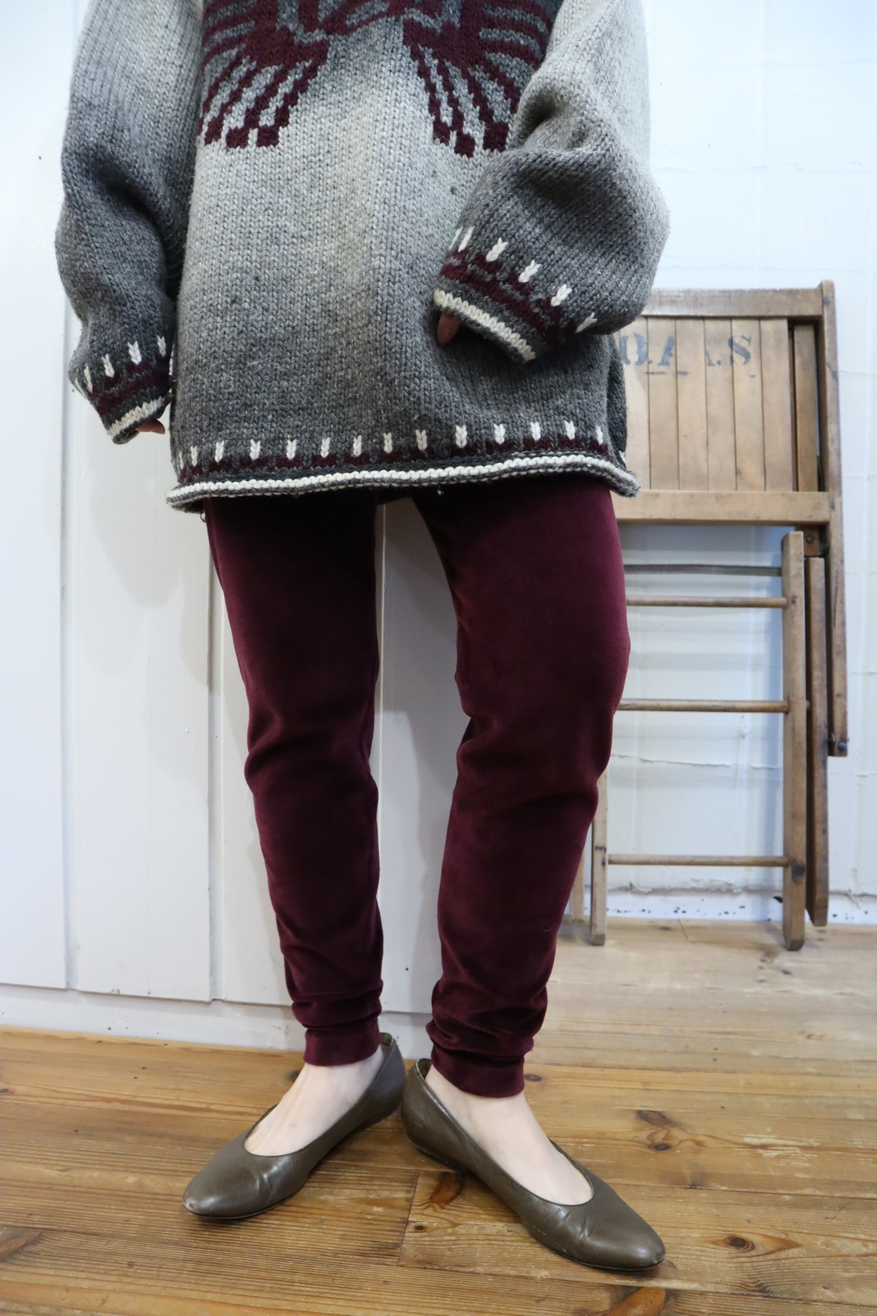 Ralph Lauren bordeaux plain velour leggings pants [l-4391]