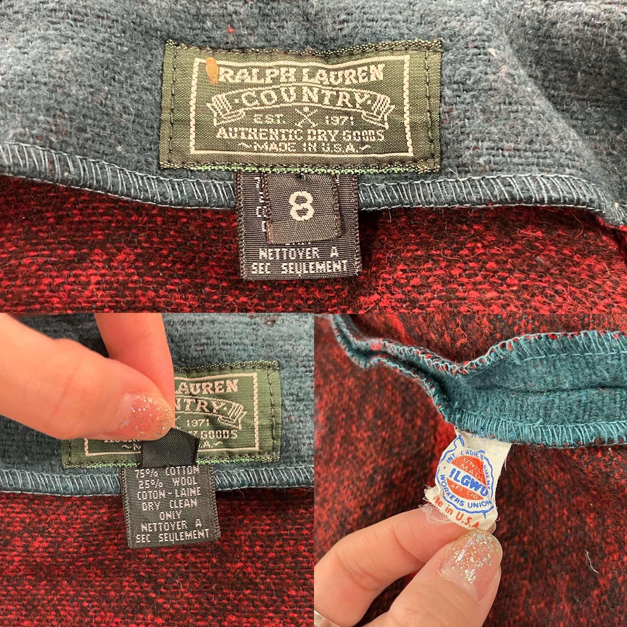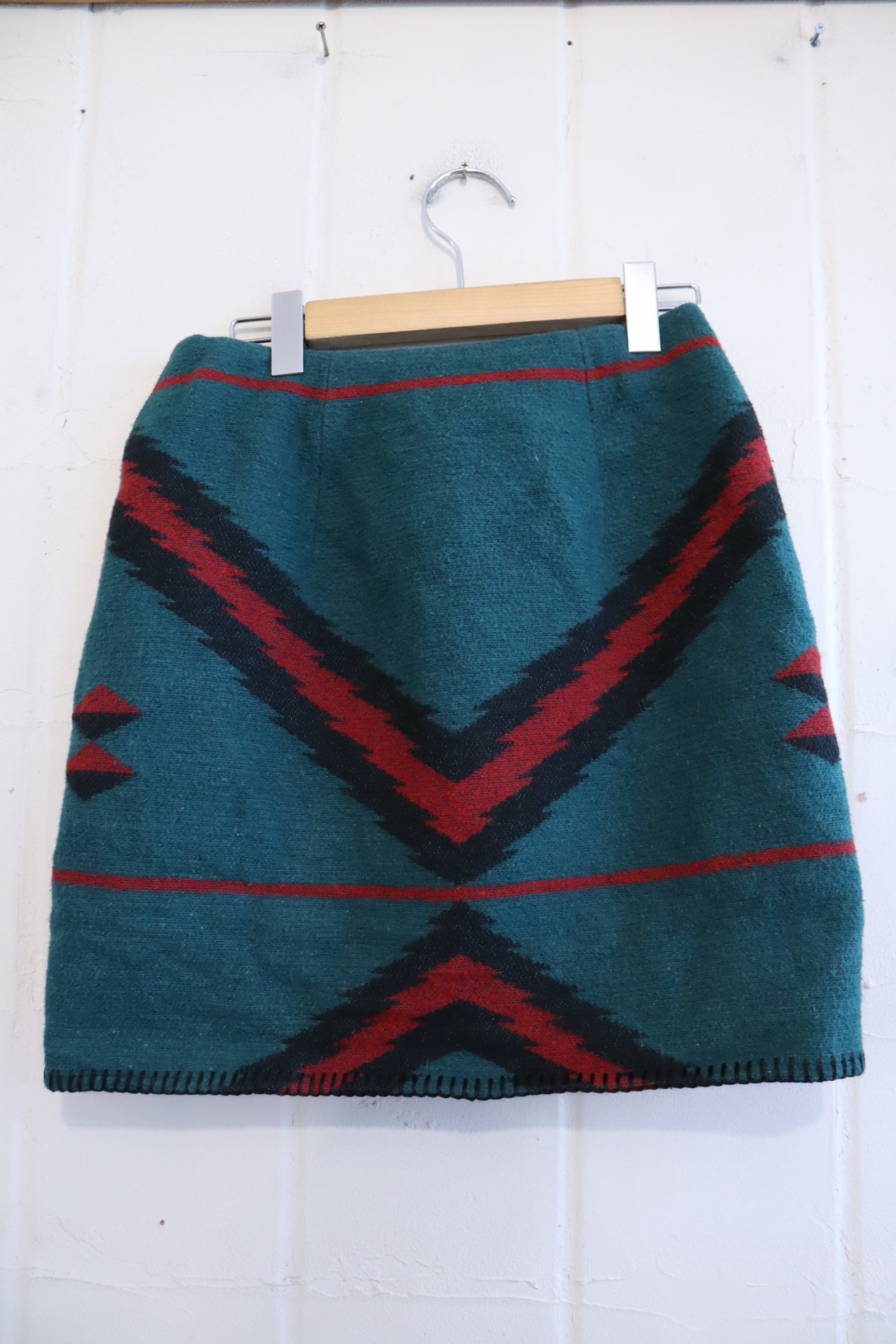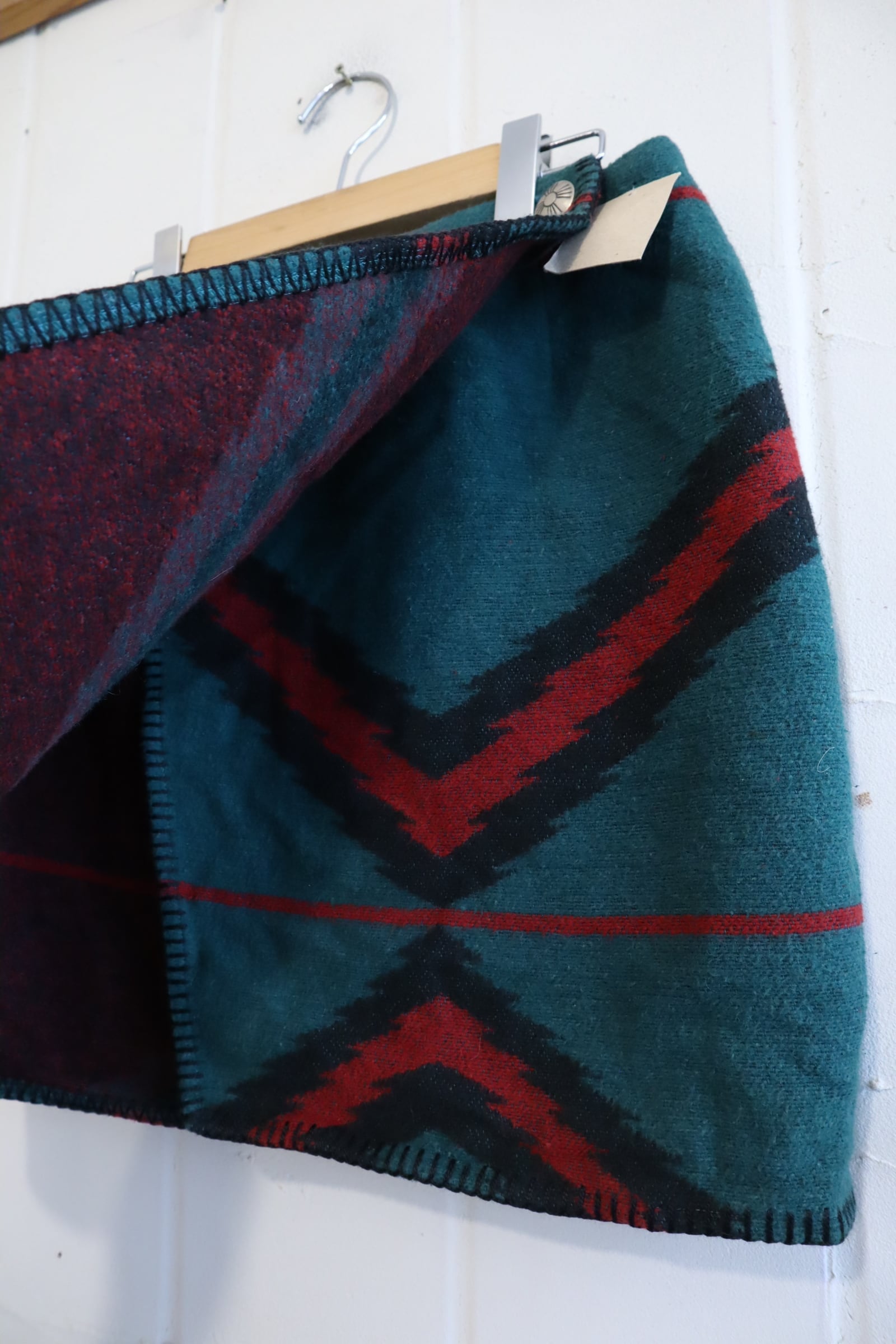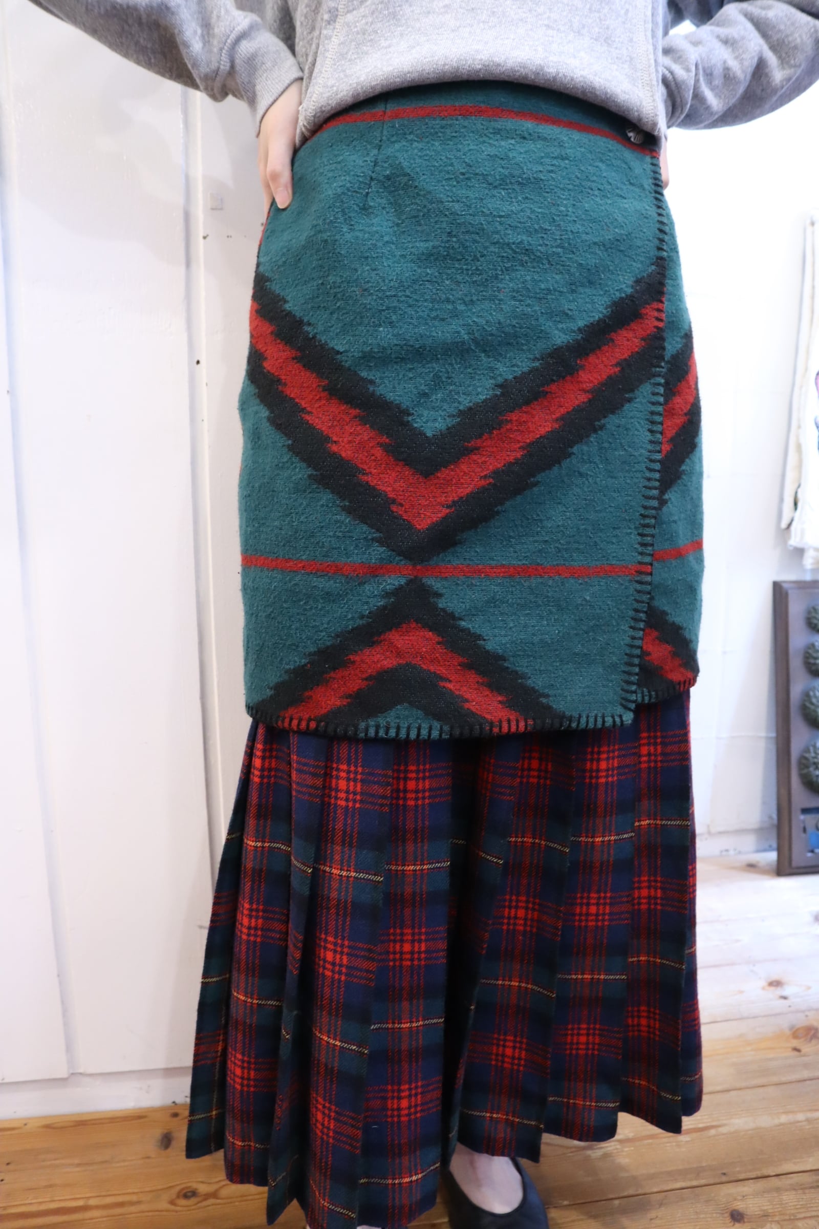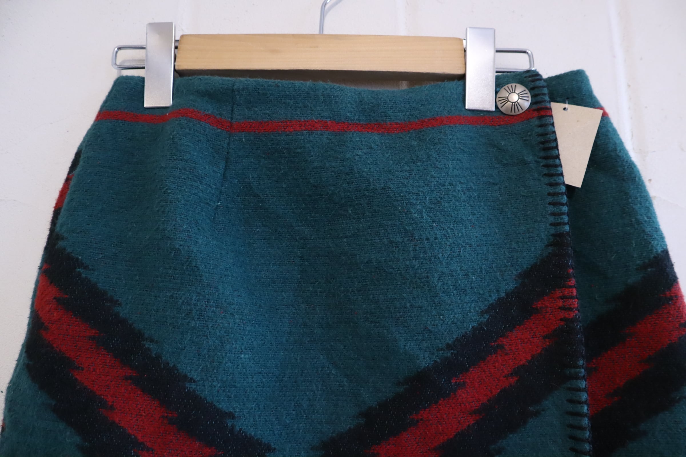 70s Ralph Lauren country bluegreen×red wrap mini skirt [l-4392]