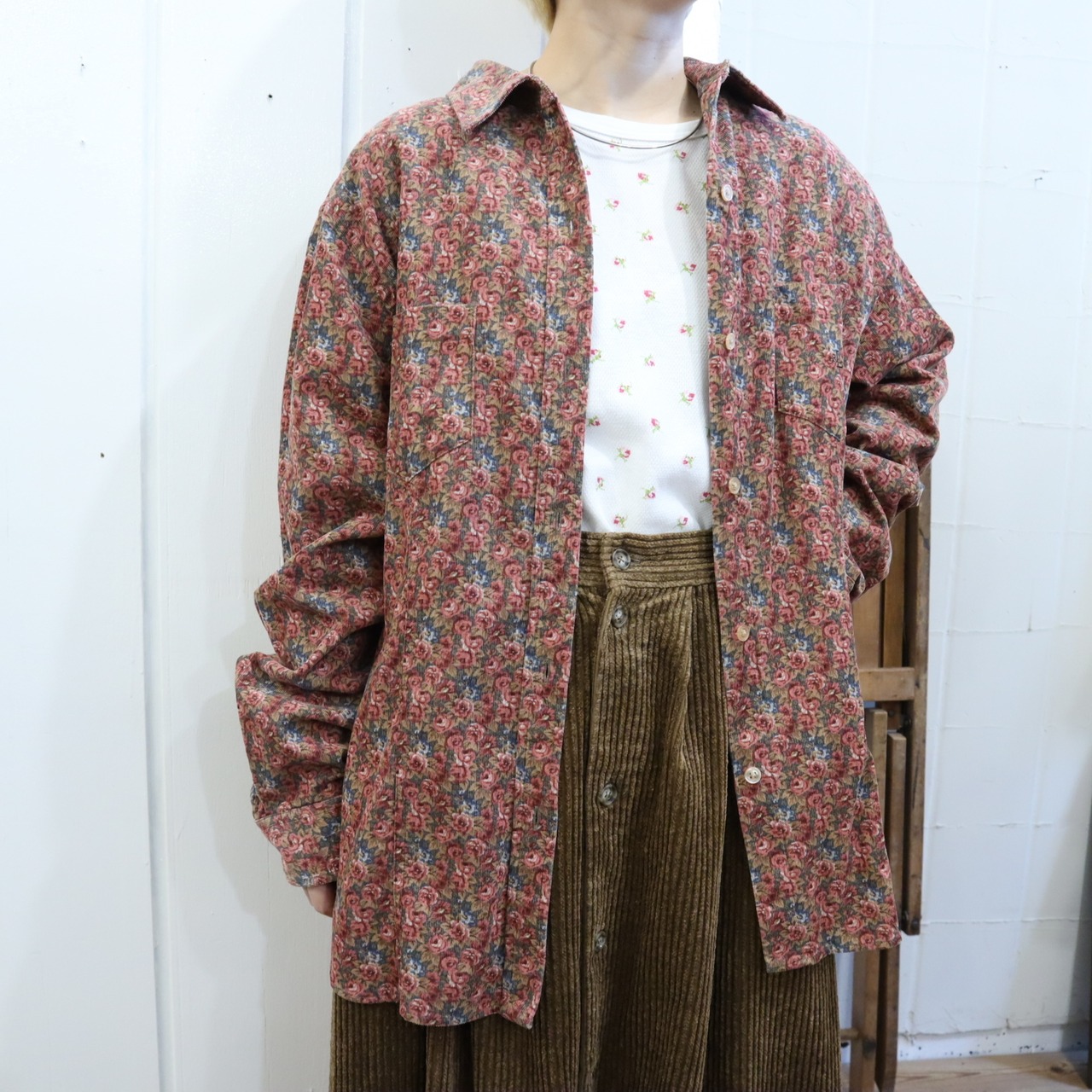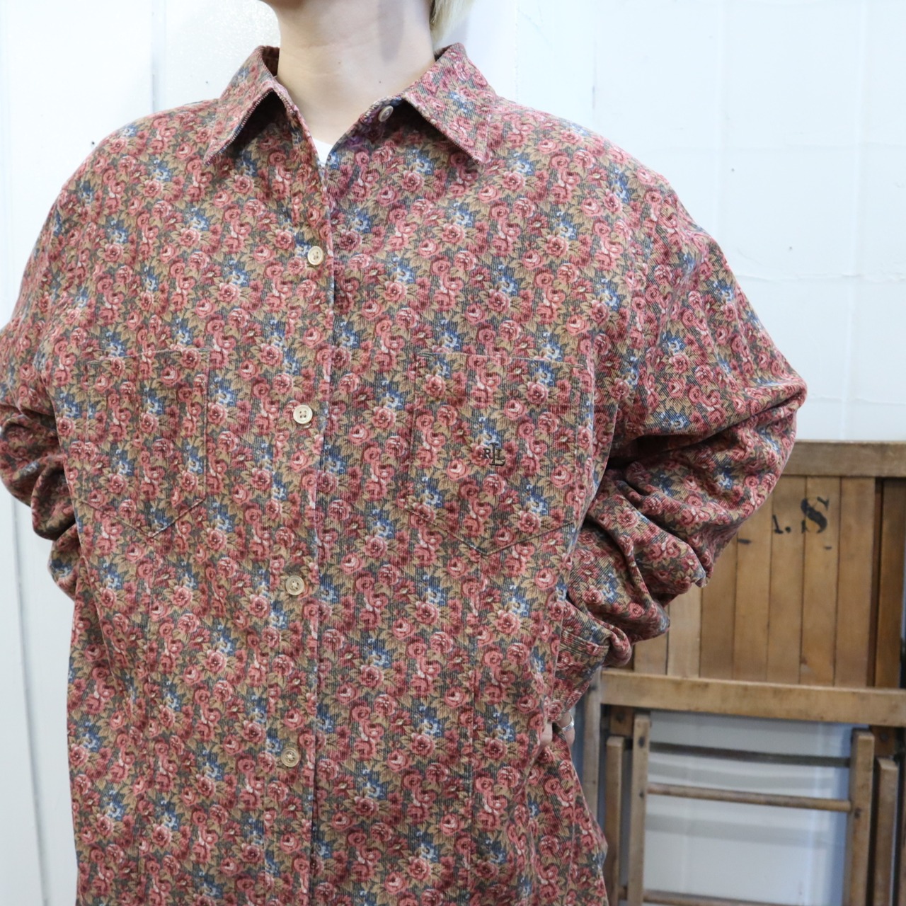 Ralph Lauren dullpink×lightbrown flower pattern corduroy shirt [l-4393]