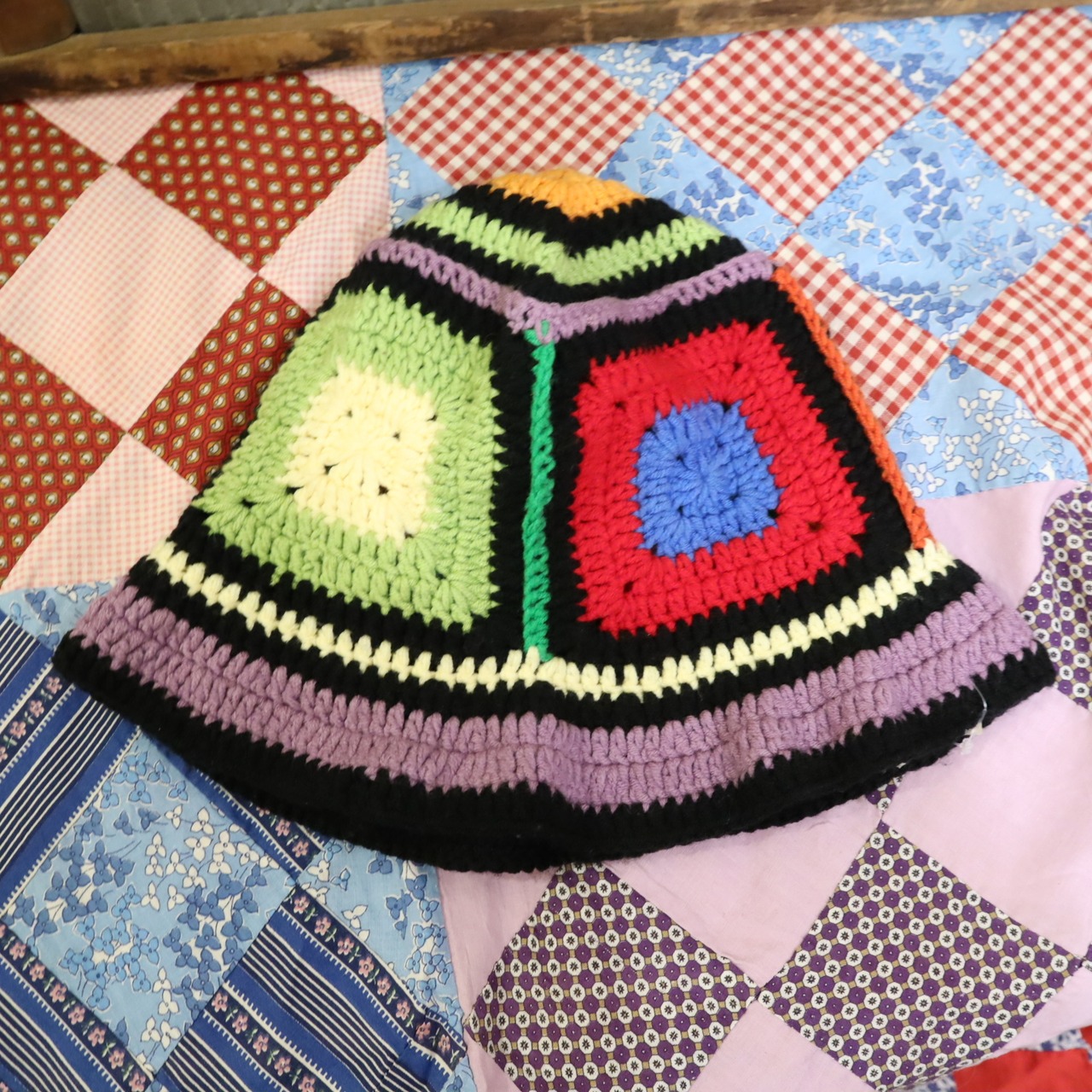 カラフルなカラーリングがとても可愛いクロシェニットバケットハット。
