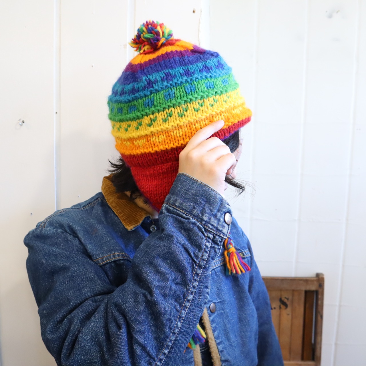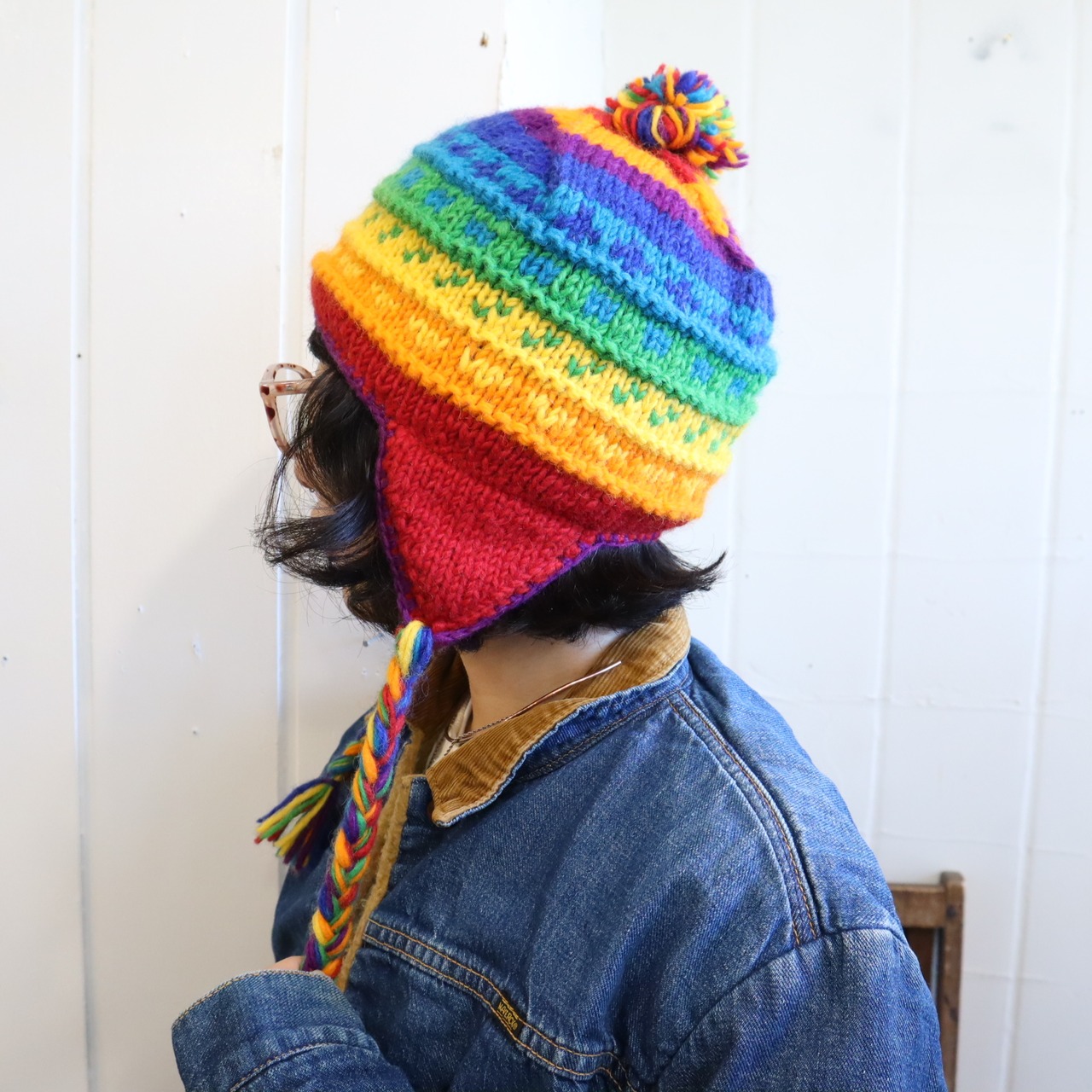 rainbow ponpon knit hat [l-4402]