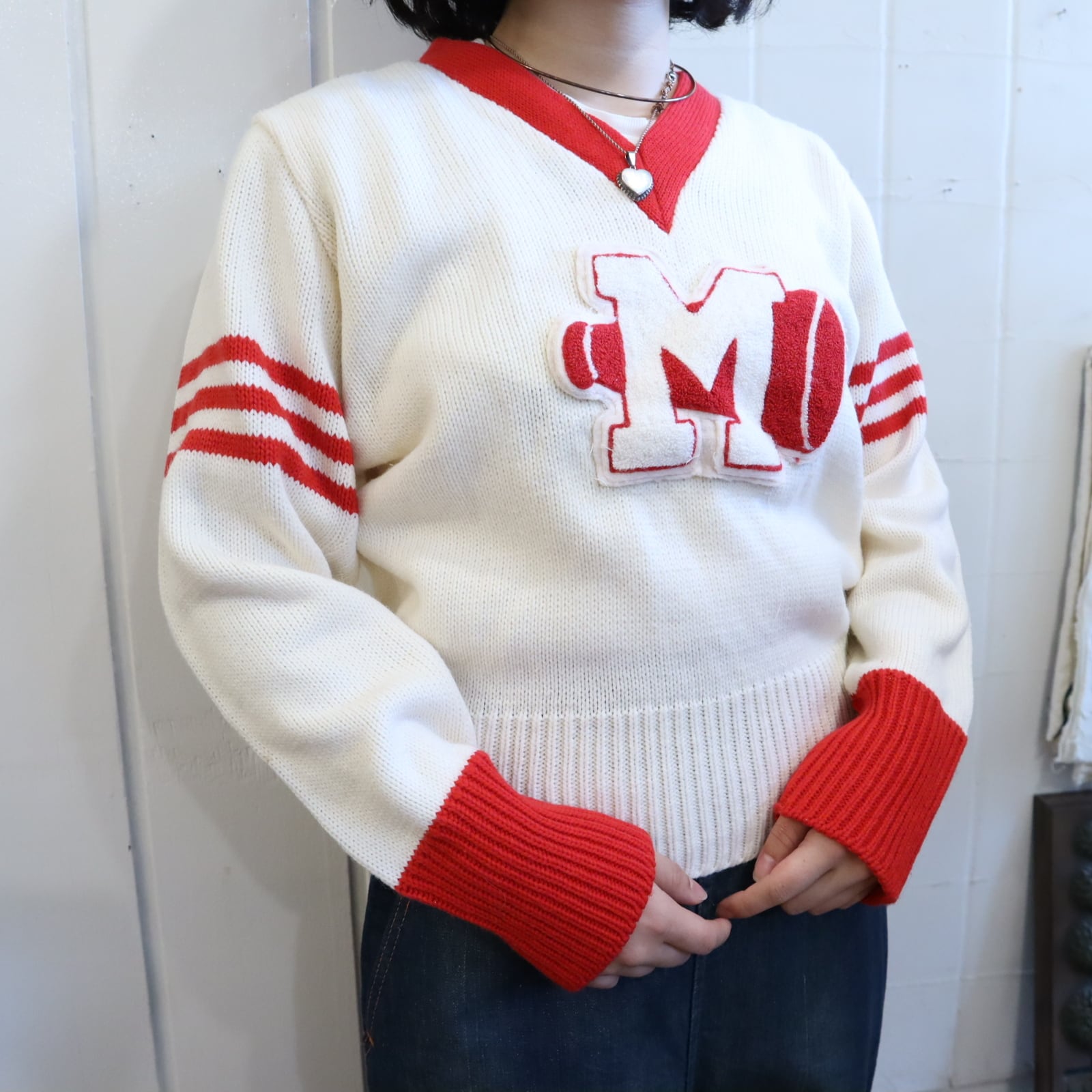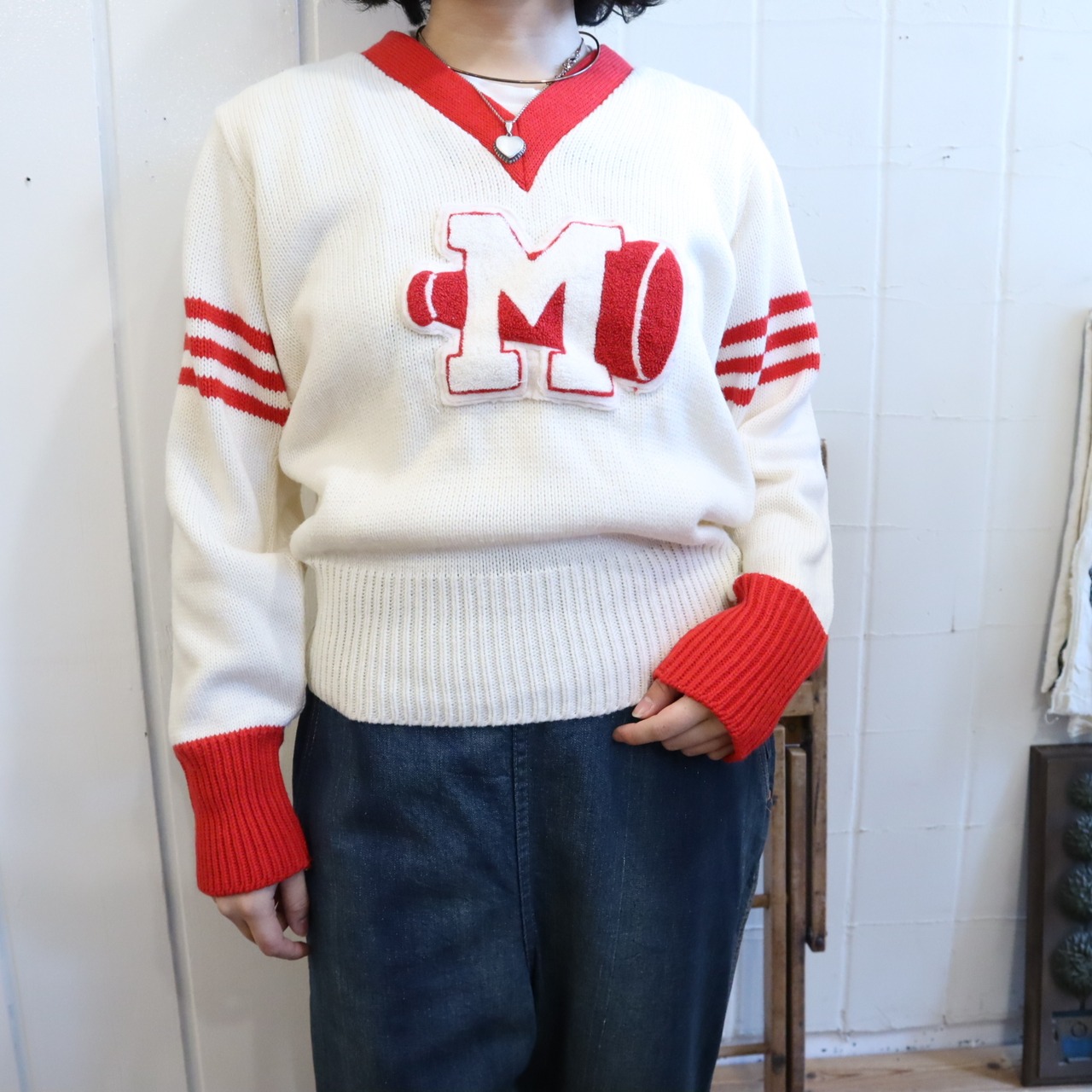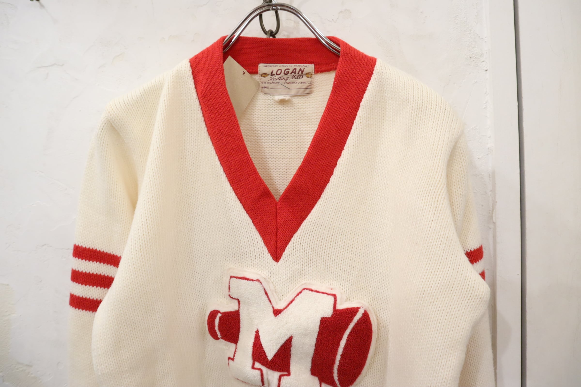 50-60s red×white lettered wappen knit pullover [l-4405]
