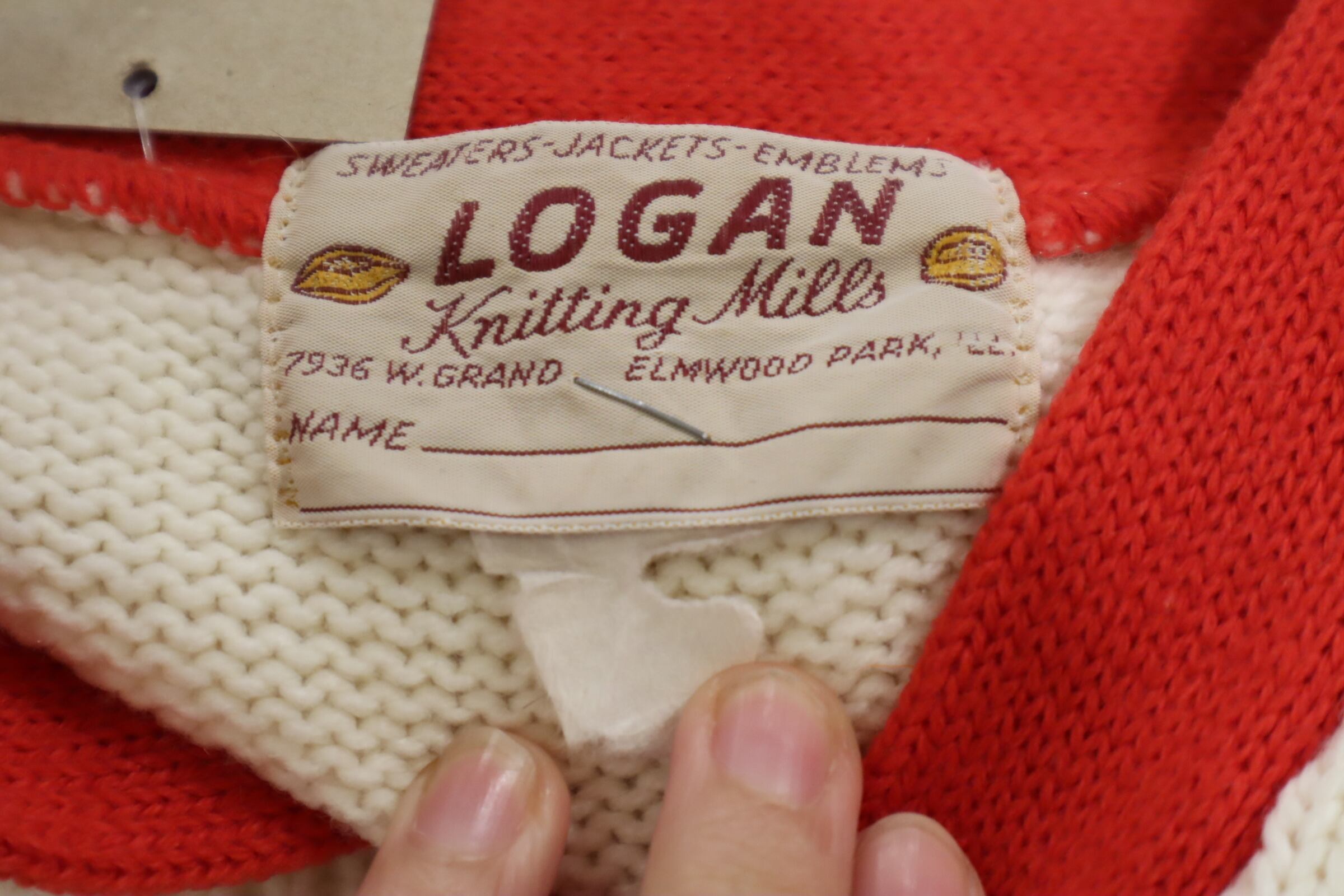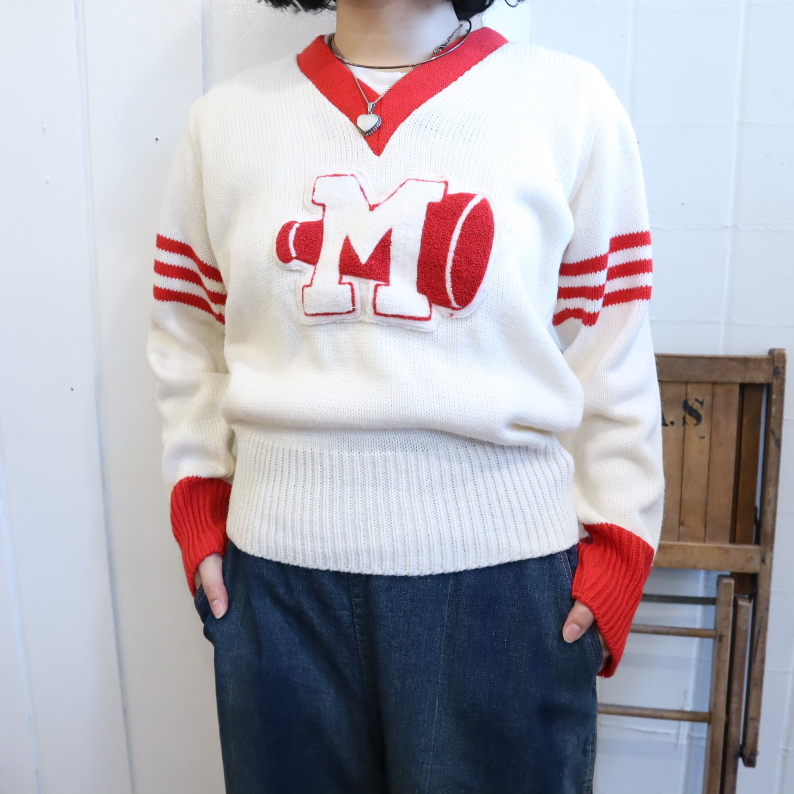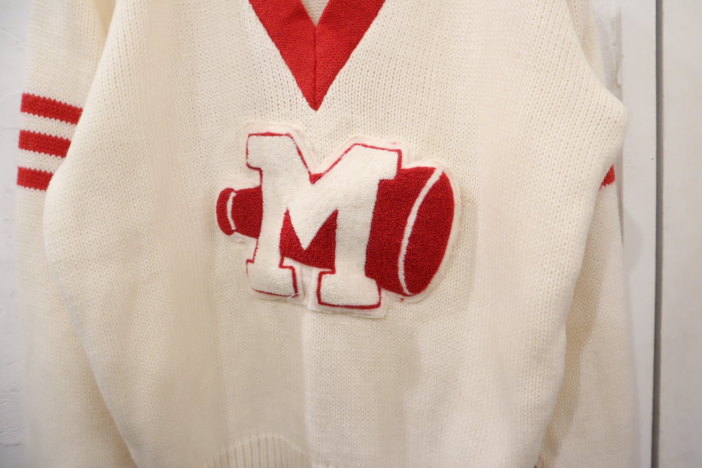 50-60s red×white lettered wappen knit pullover [l-4405]