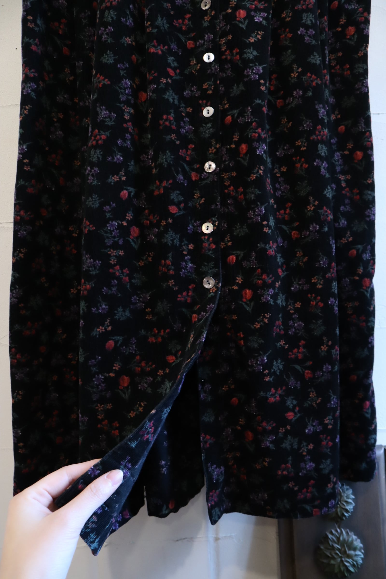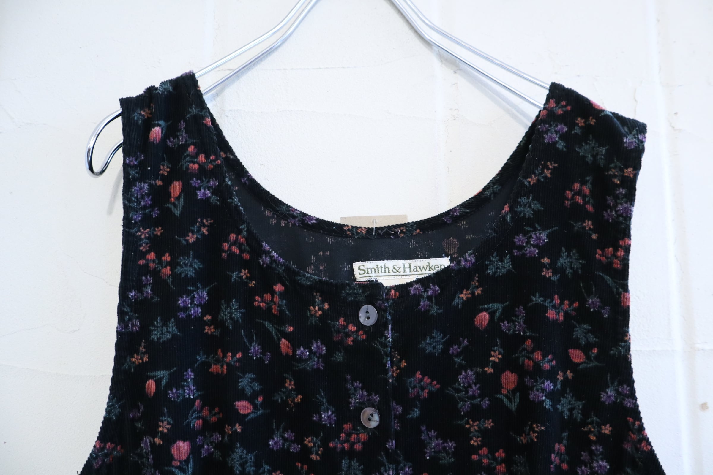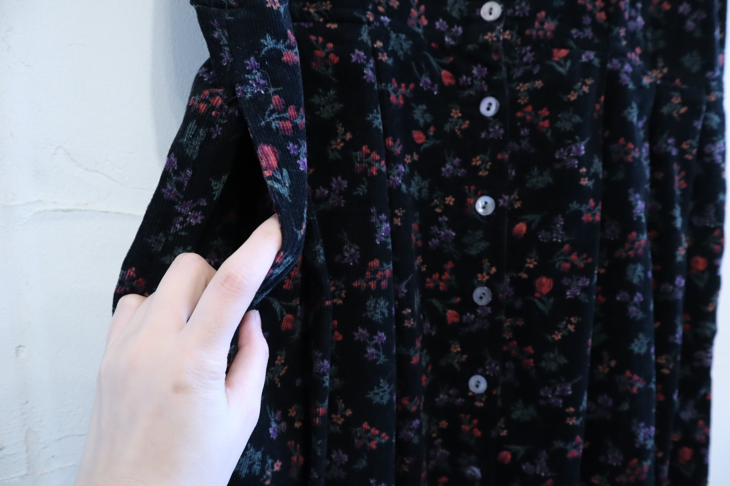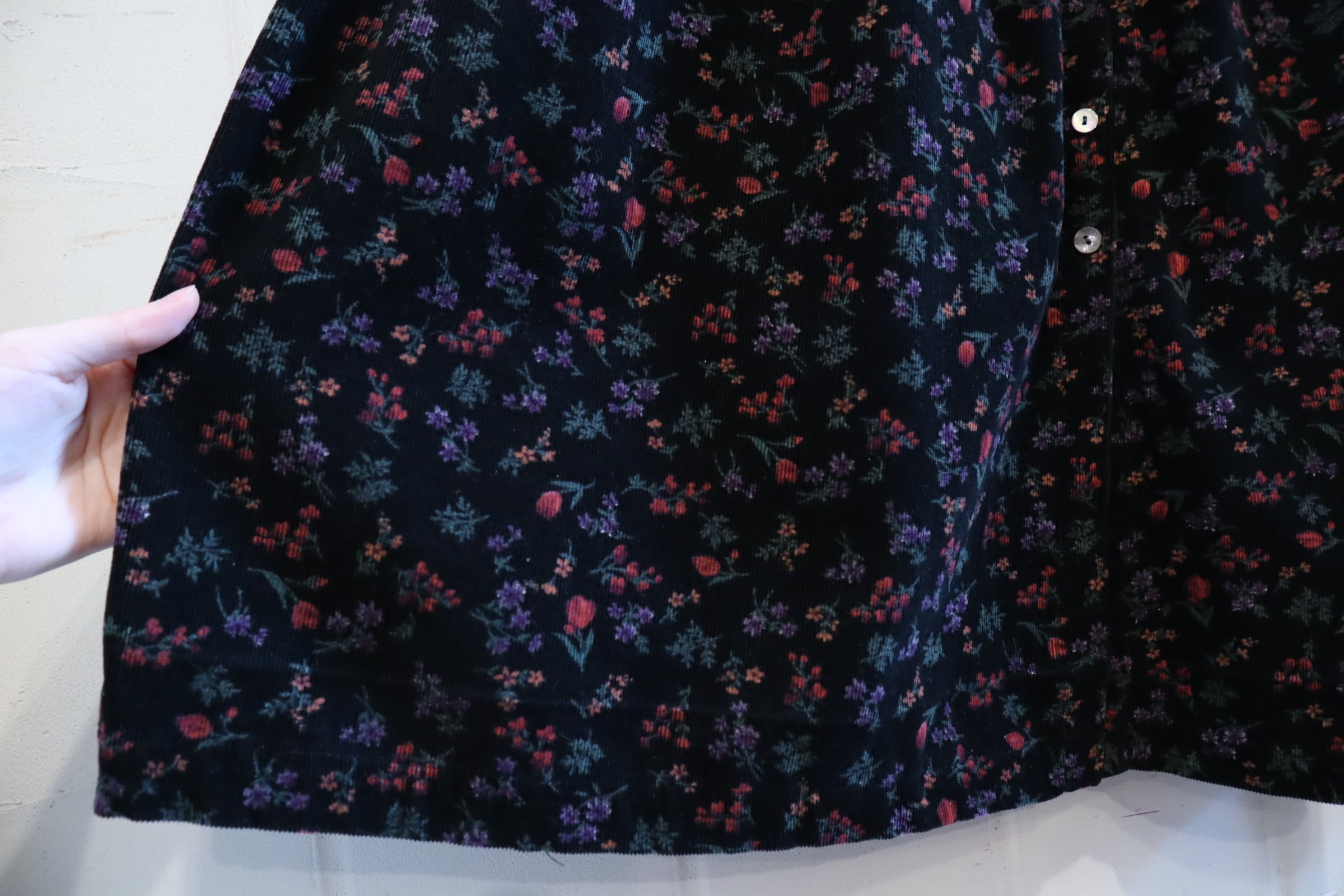 made in USA black×pink flower pattern sleeveless corduroy dress [l-4407]