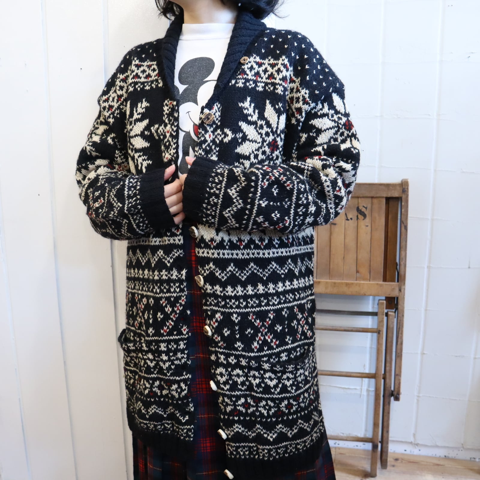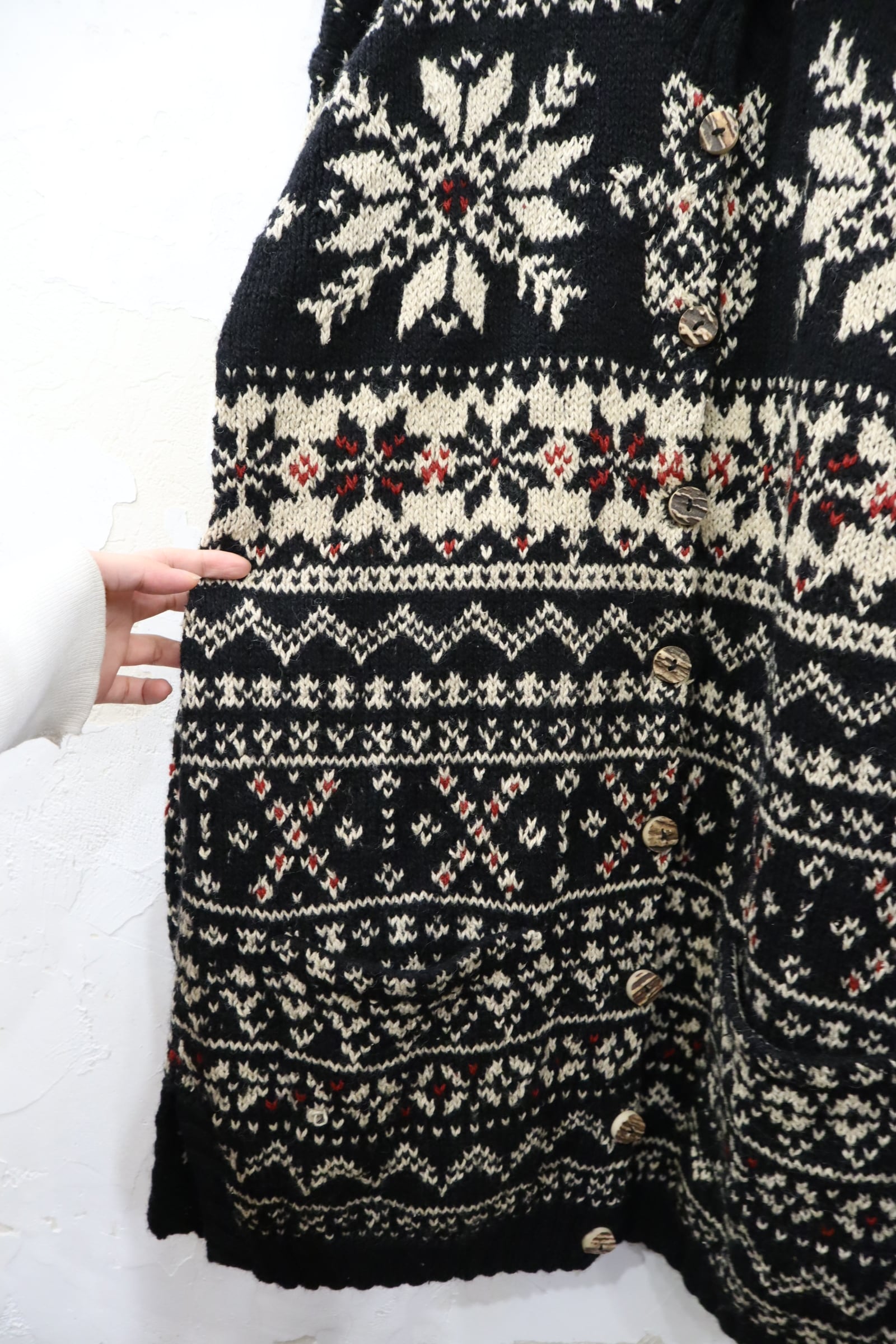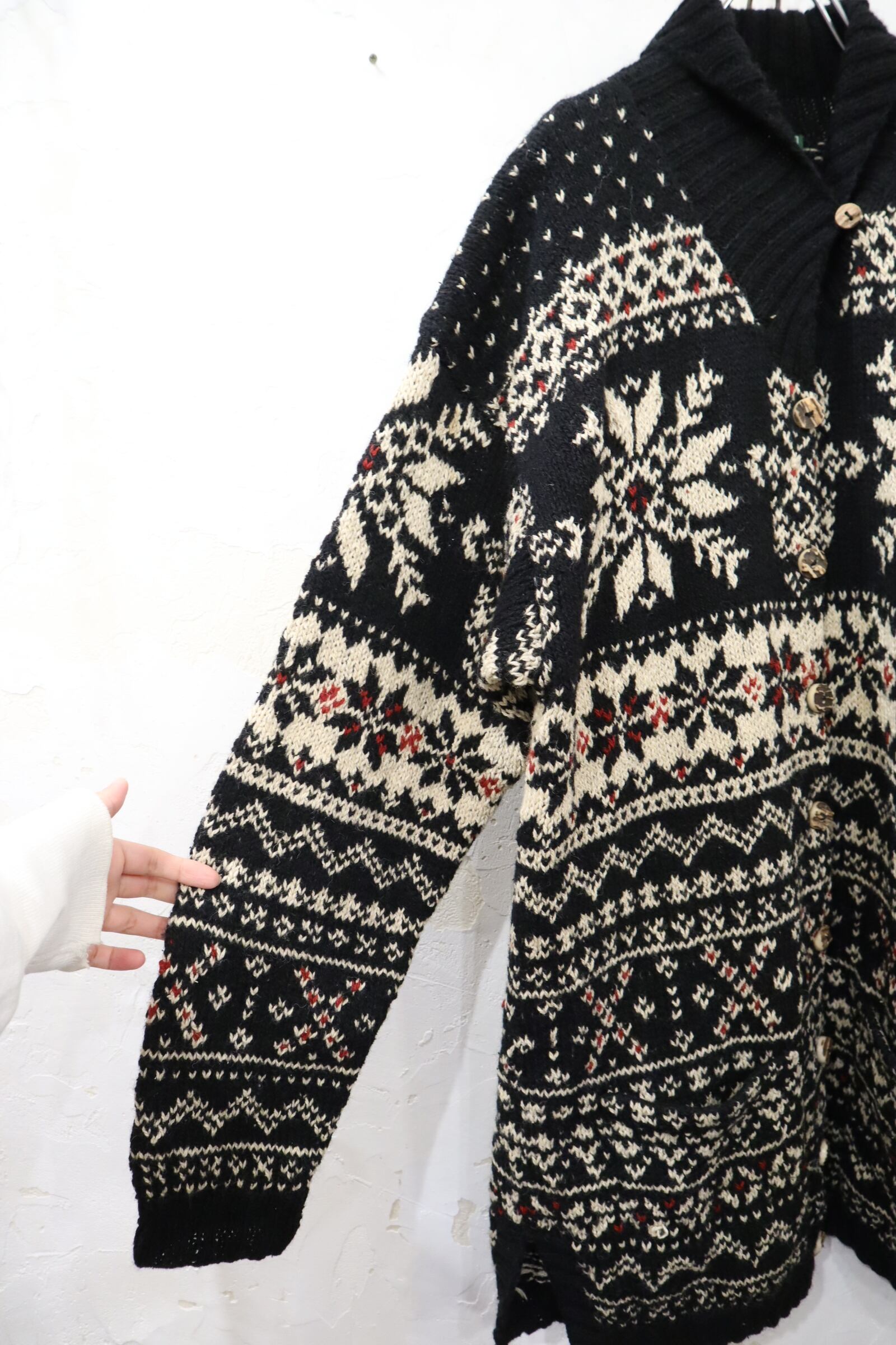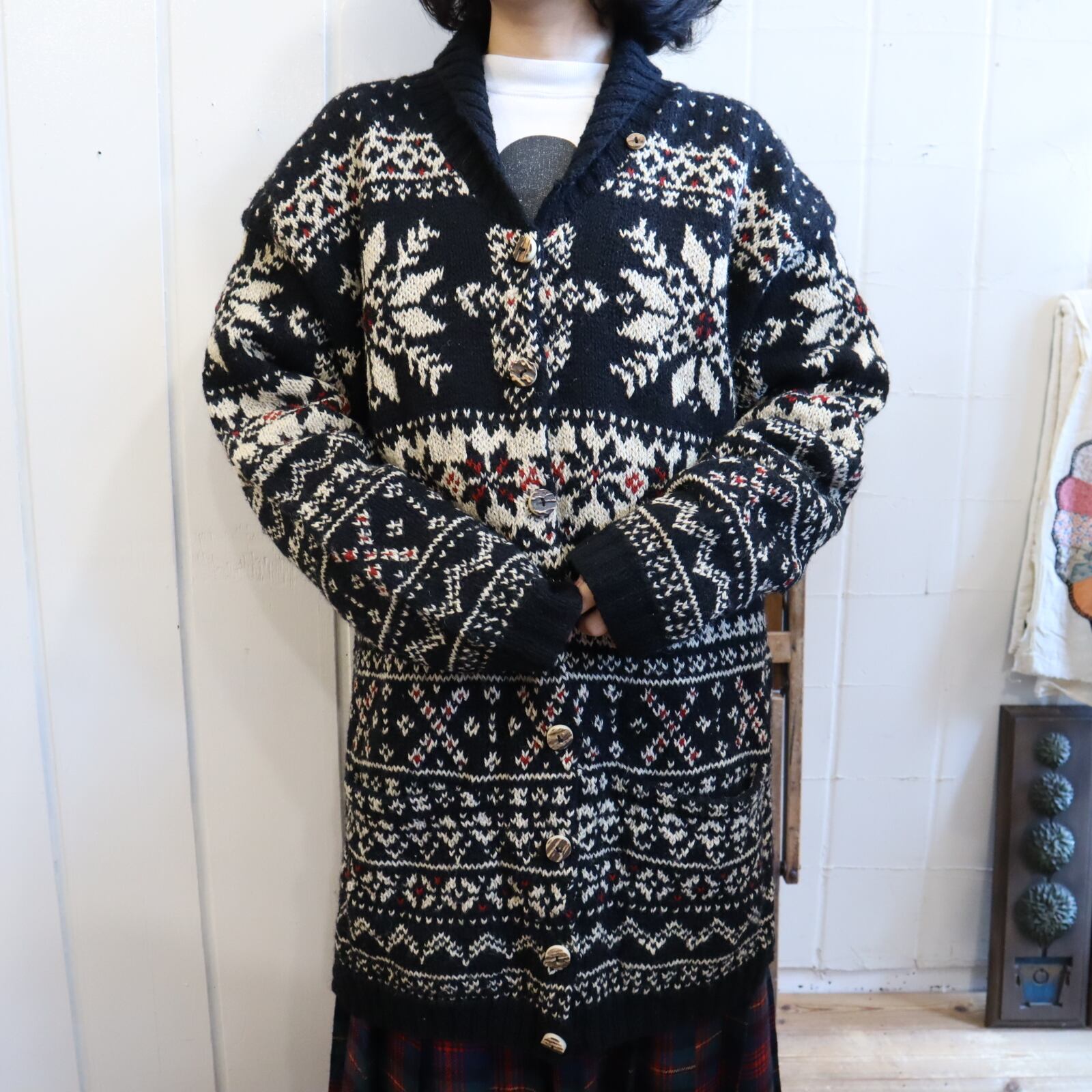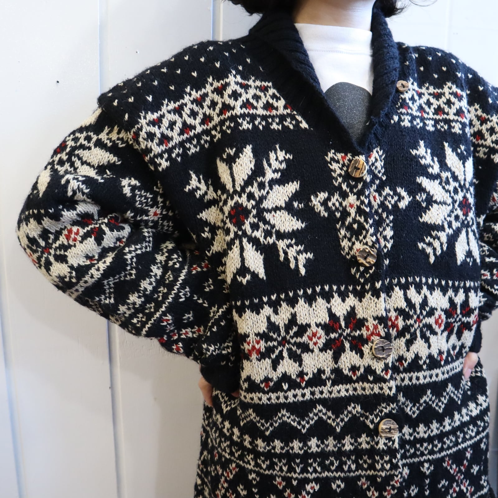 Ralph Lauren black×white nordic pattern knit cardigan [k-4417]