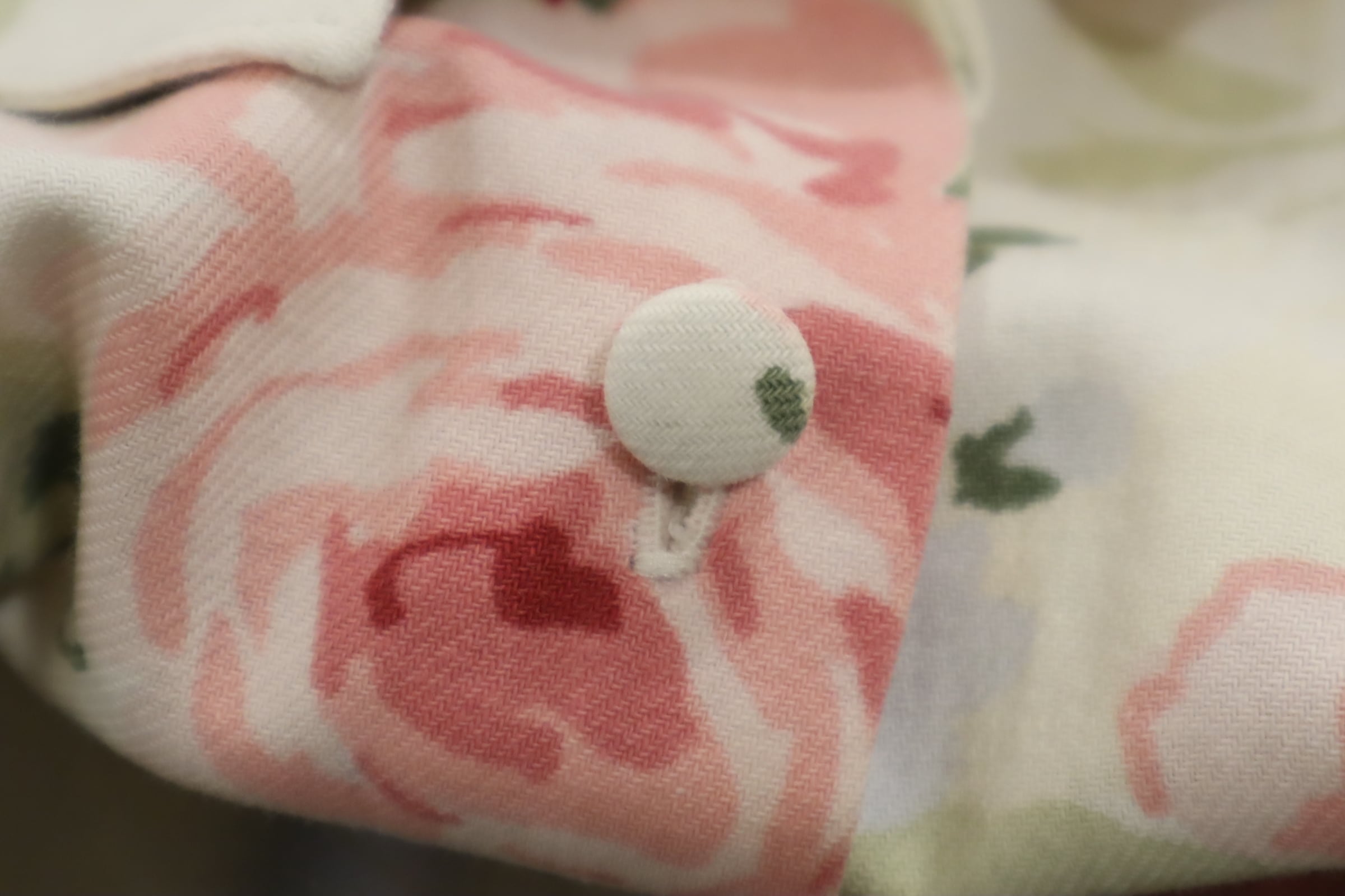 シルエットは可愛らしく、大きなお花柄で大人っぽくバランスのとれたブラウスです。