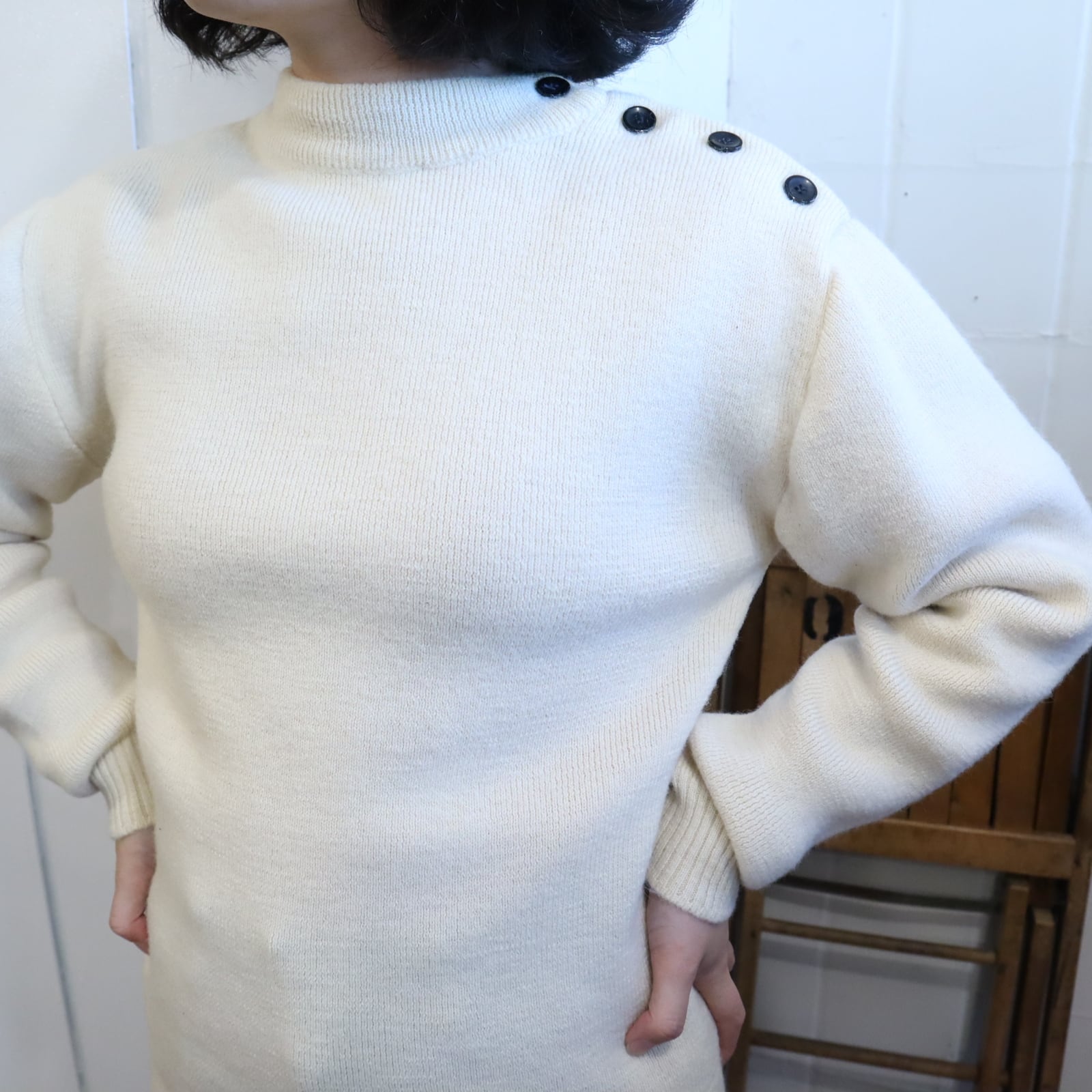 SAINT JAMES offwhite shoulder button knit pullover [l-4453]