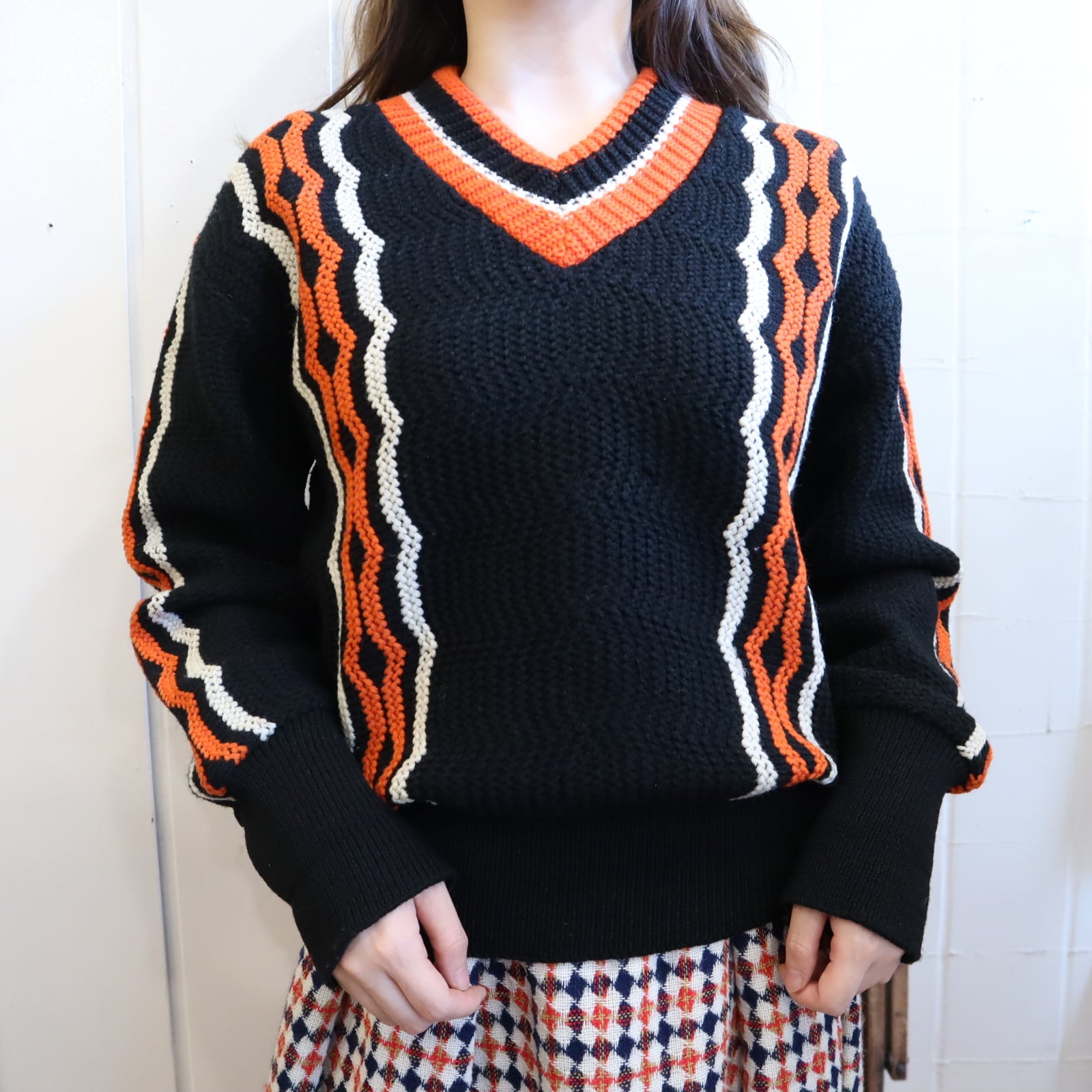 ビンテージらしい雰囲気のあるラインデザインが可愛い60sニットプルオーバー。
