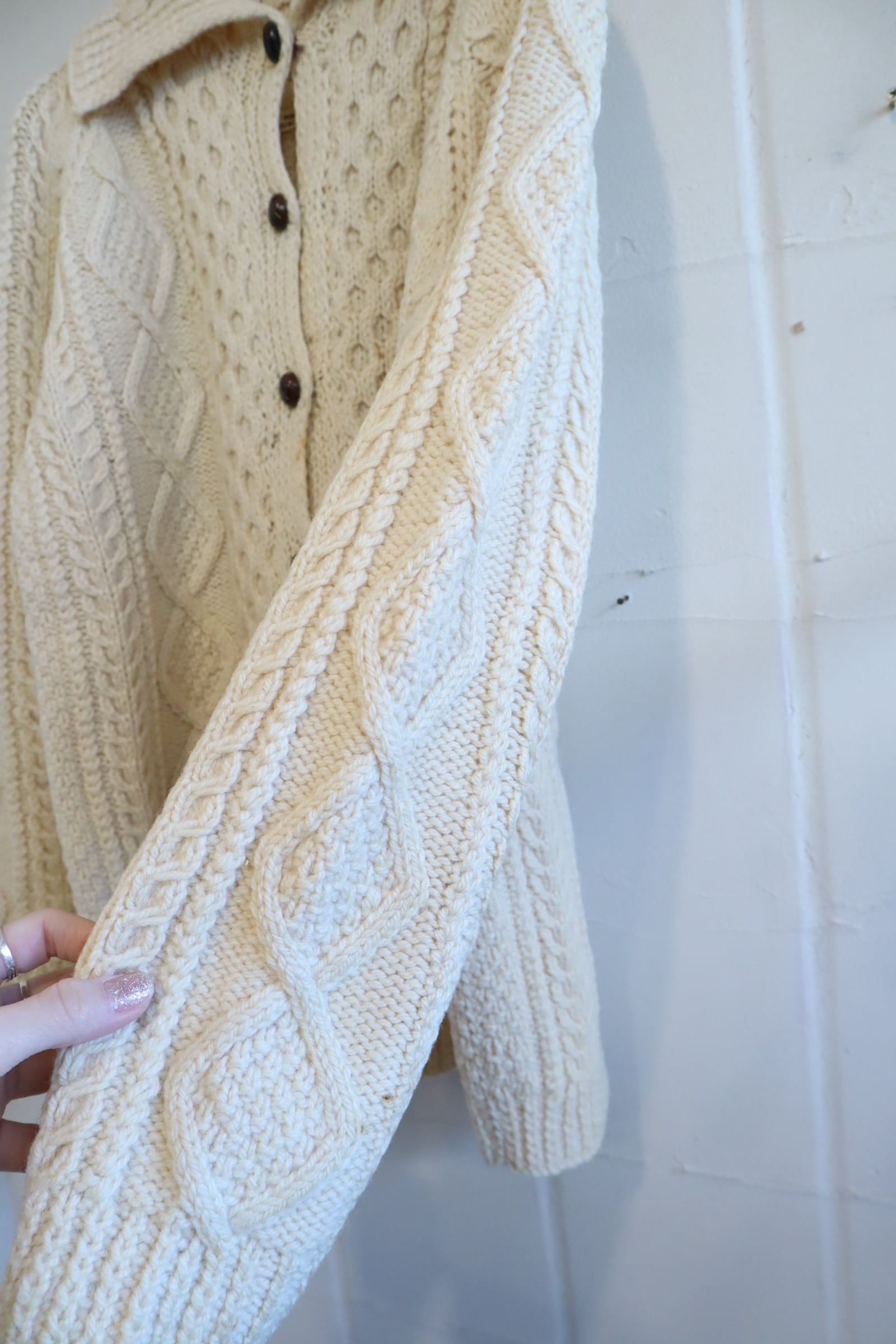 コンパクトめなサイズ感や襟付きなのが可愛いフィッシャーマンニットカーディガン*