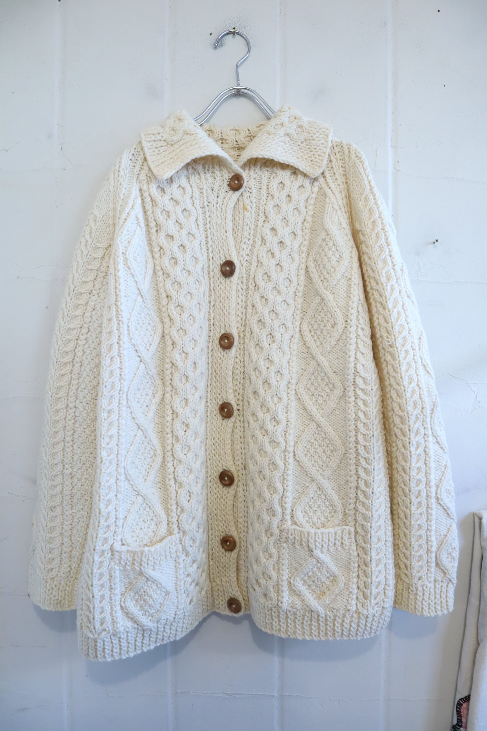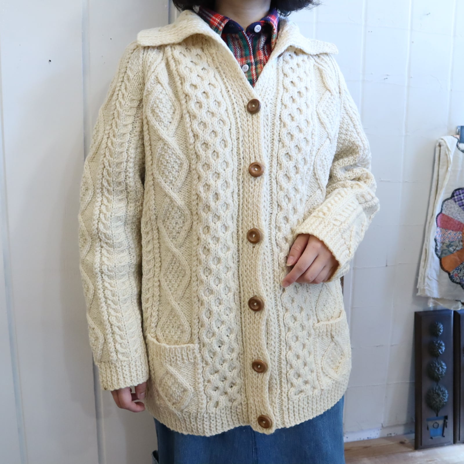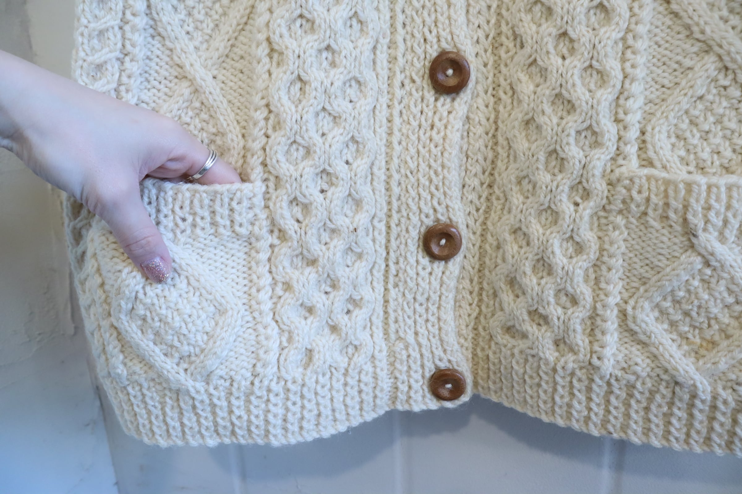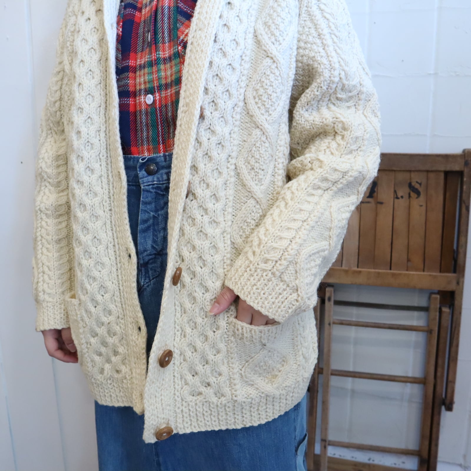 丸い木のボタンが可愛いフィッシャーマンニットカーディガン*