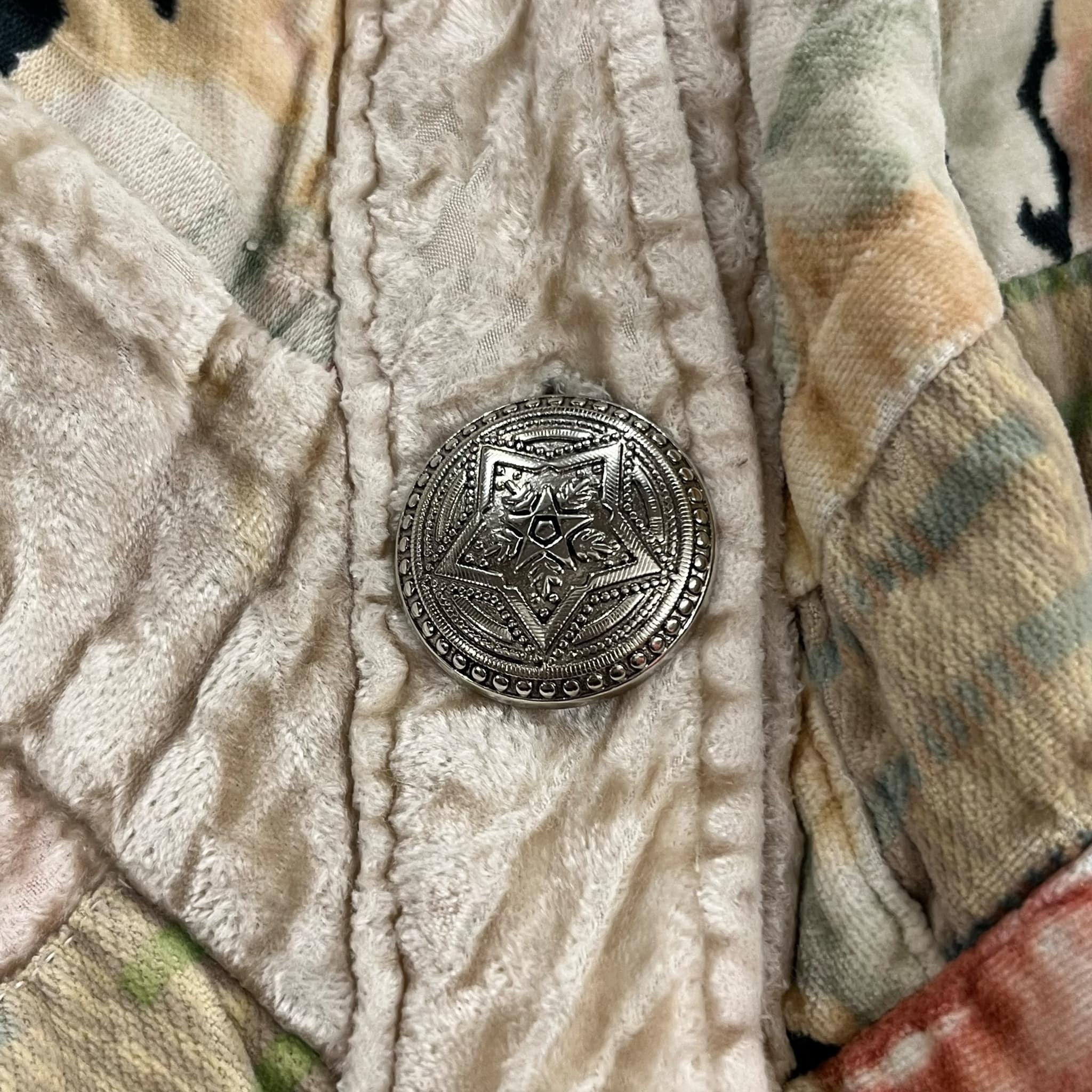 ボタンホールに一部ホツレ、全体的にベロア生地が剥げている箇所がございますが、古着の味として着て頂けるかと思います。