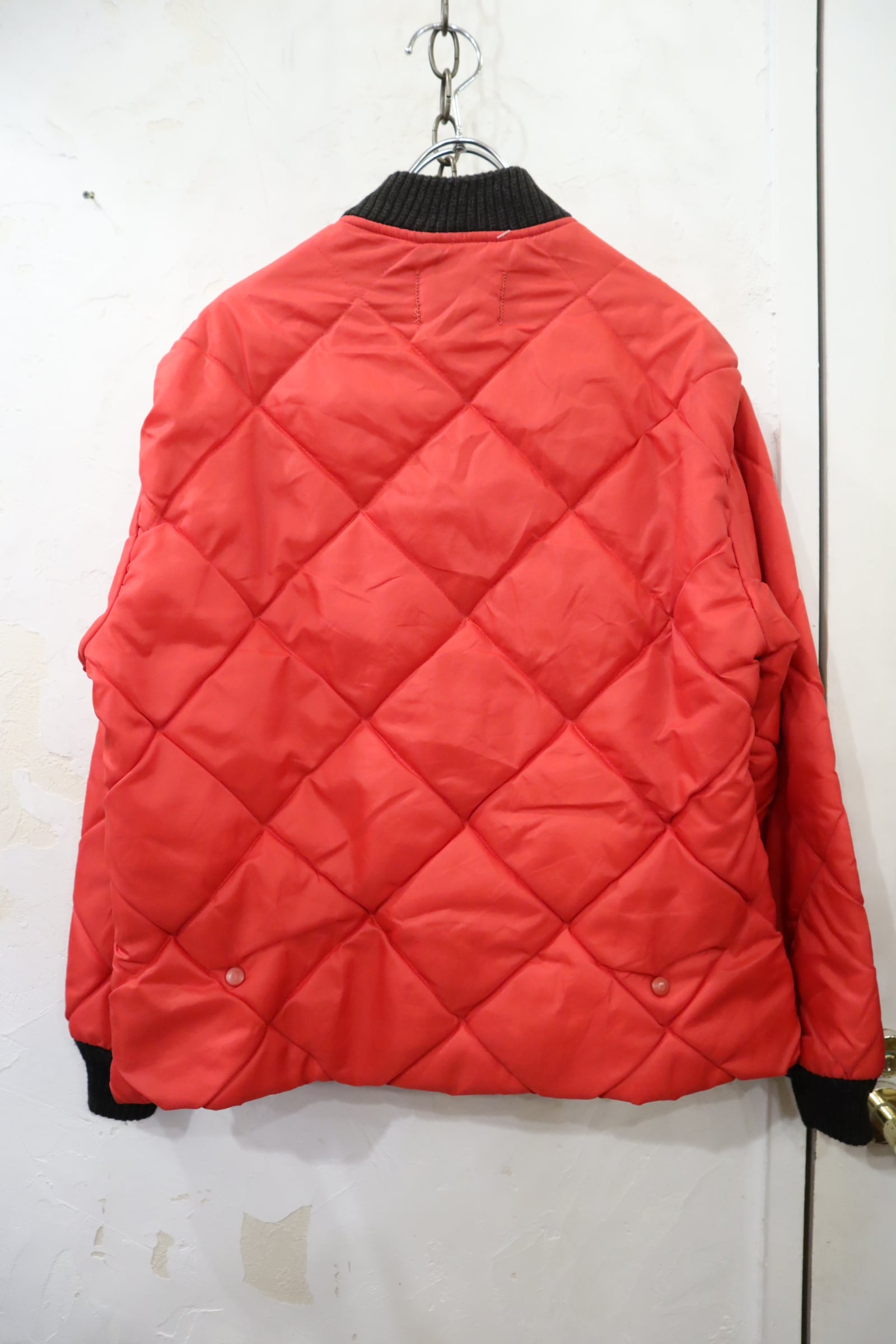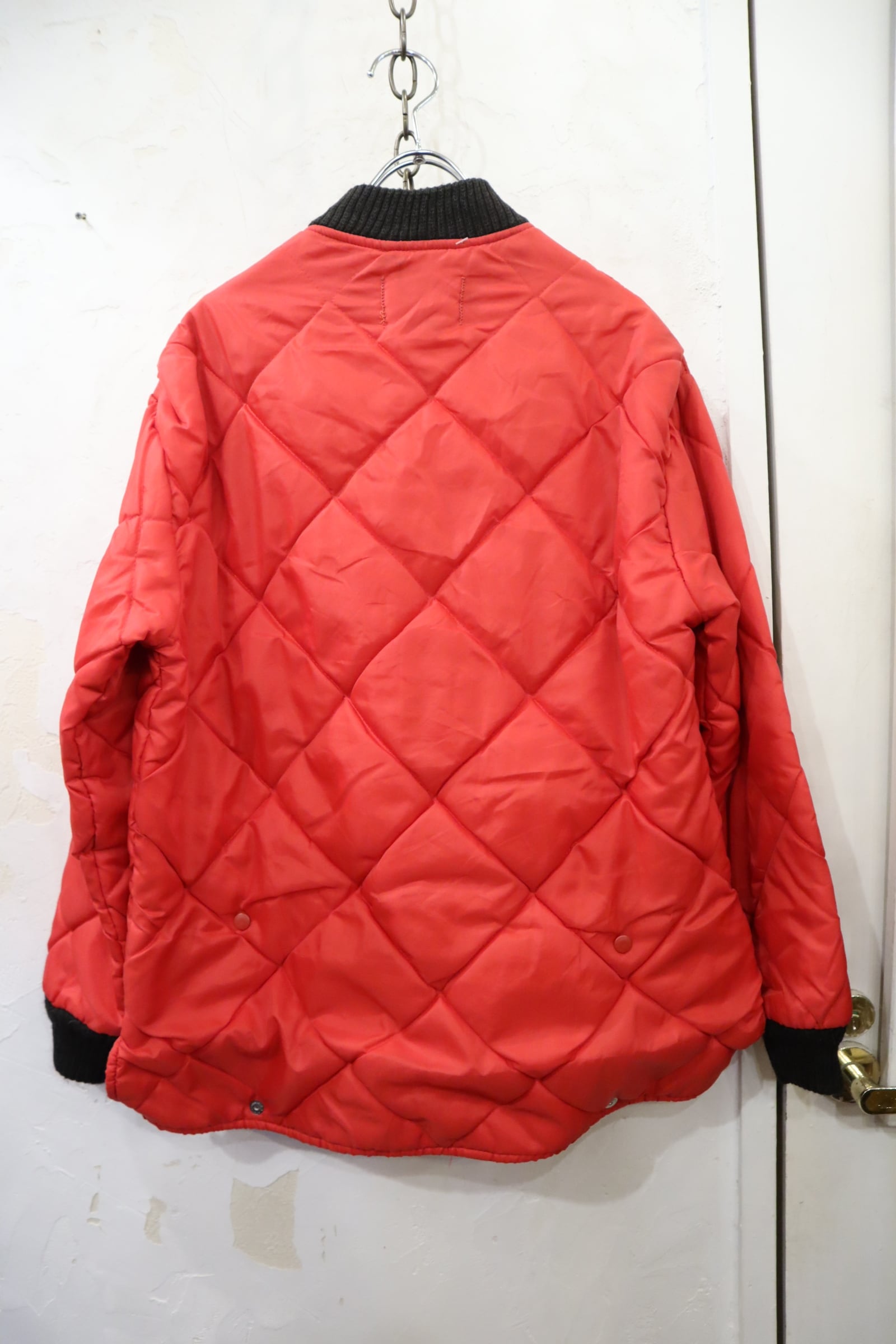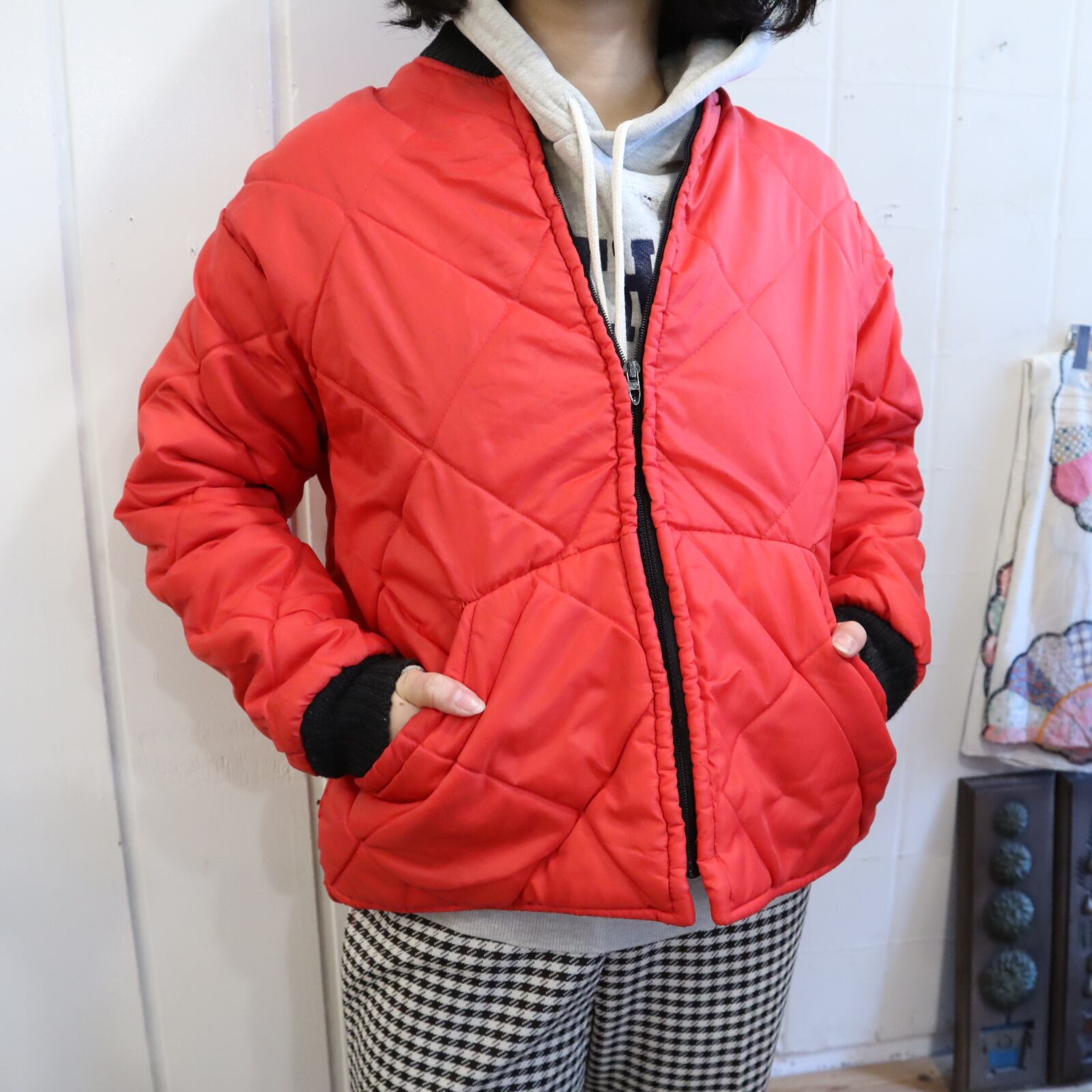 red×black quilting vintage jacket [l-4490]