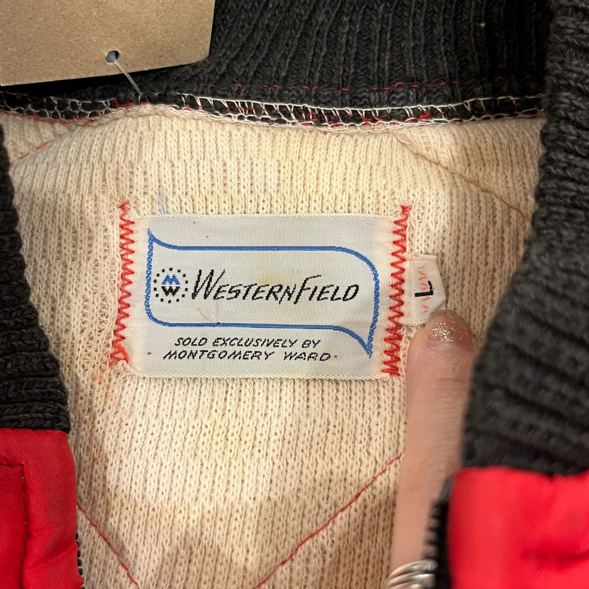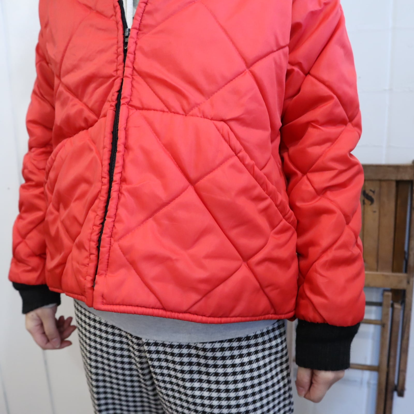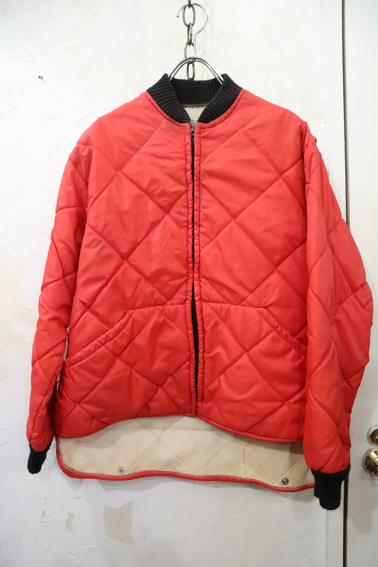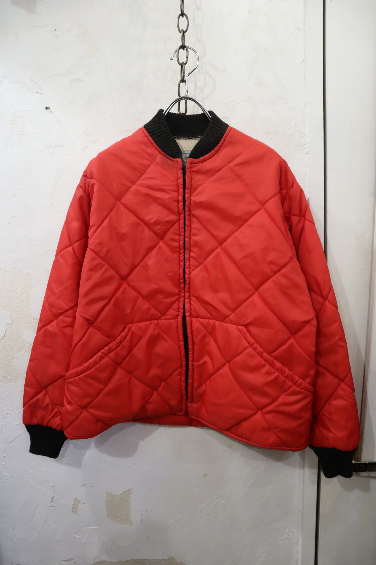 red×black quilting vintage jacket [l-4490]
