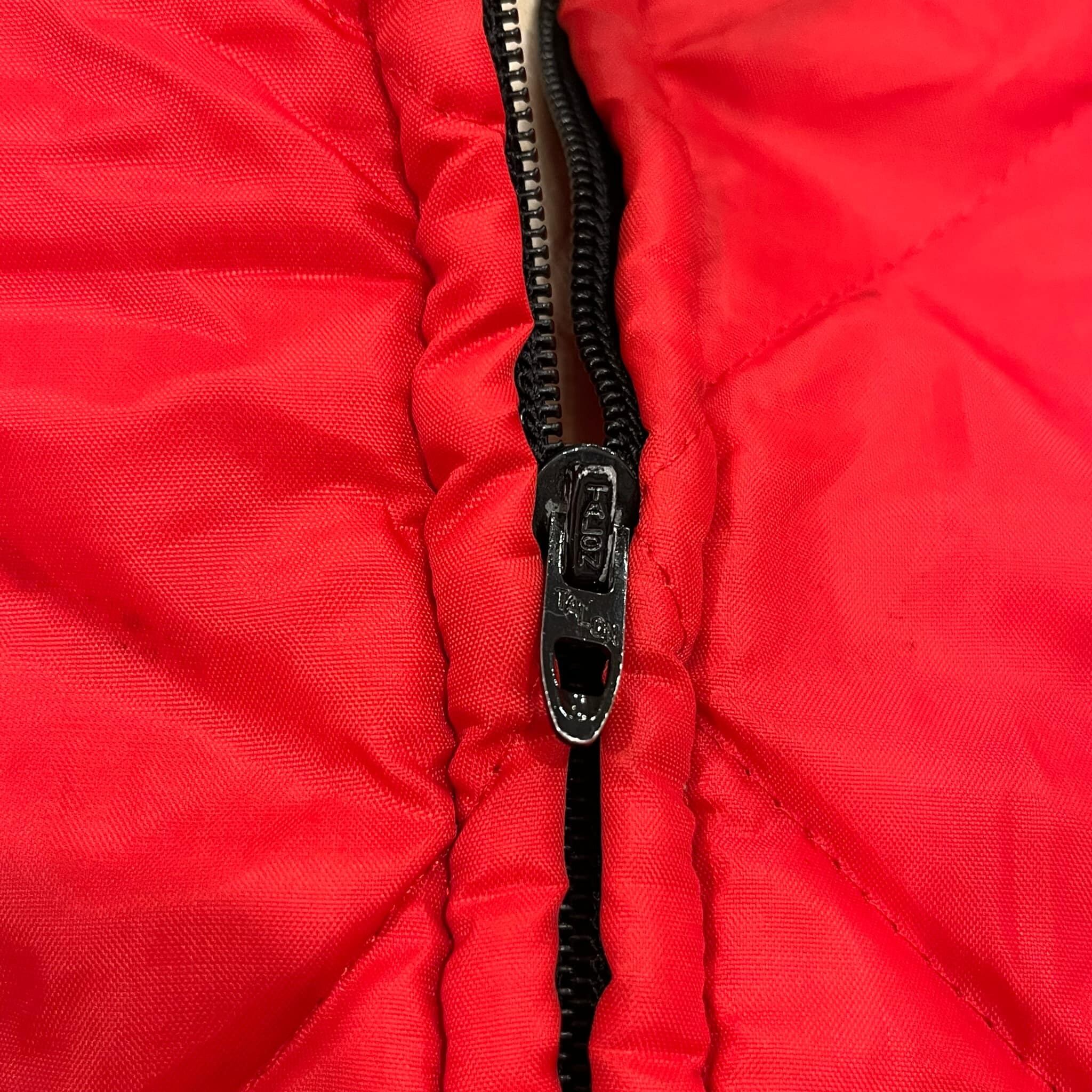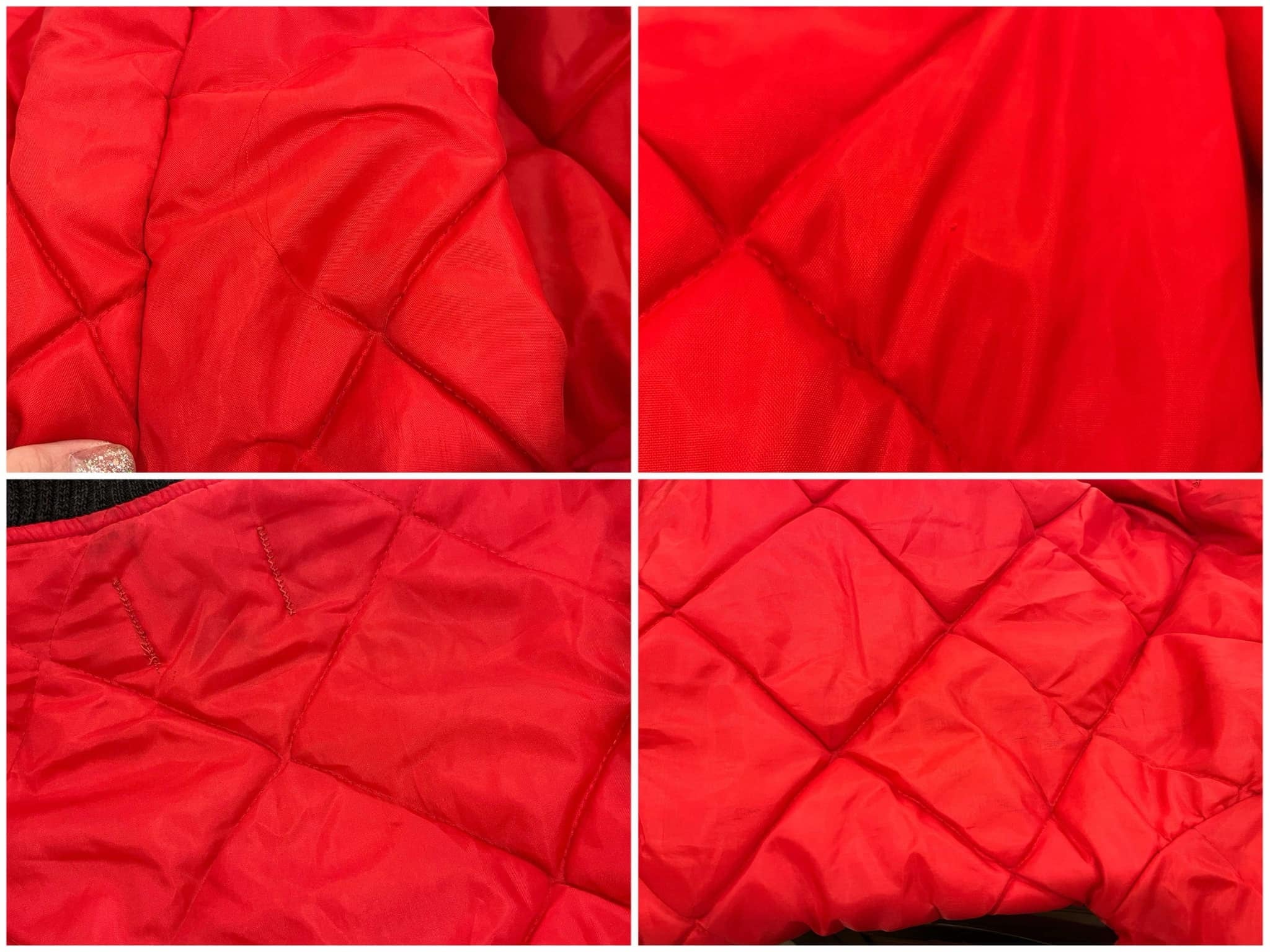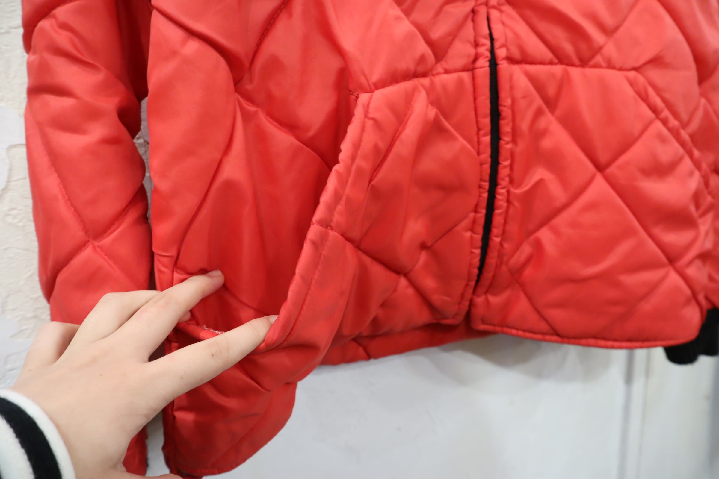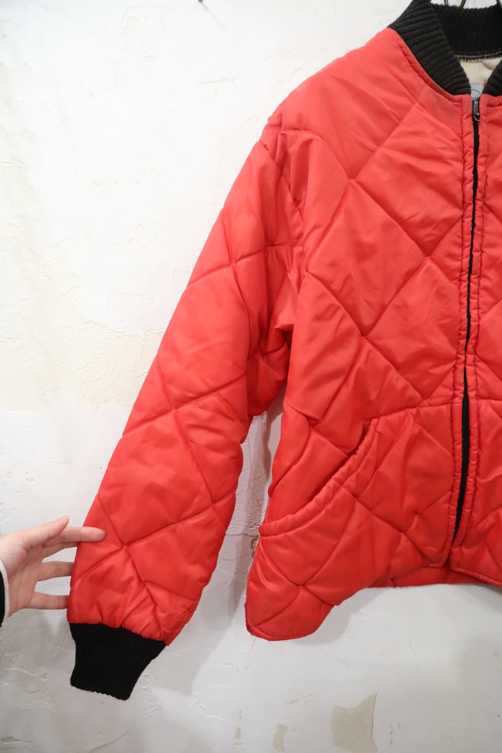 パキっとした赤が素敵なキルティングジャケットです。