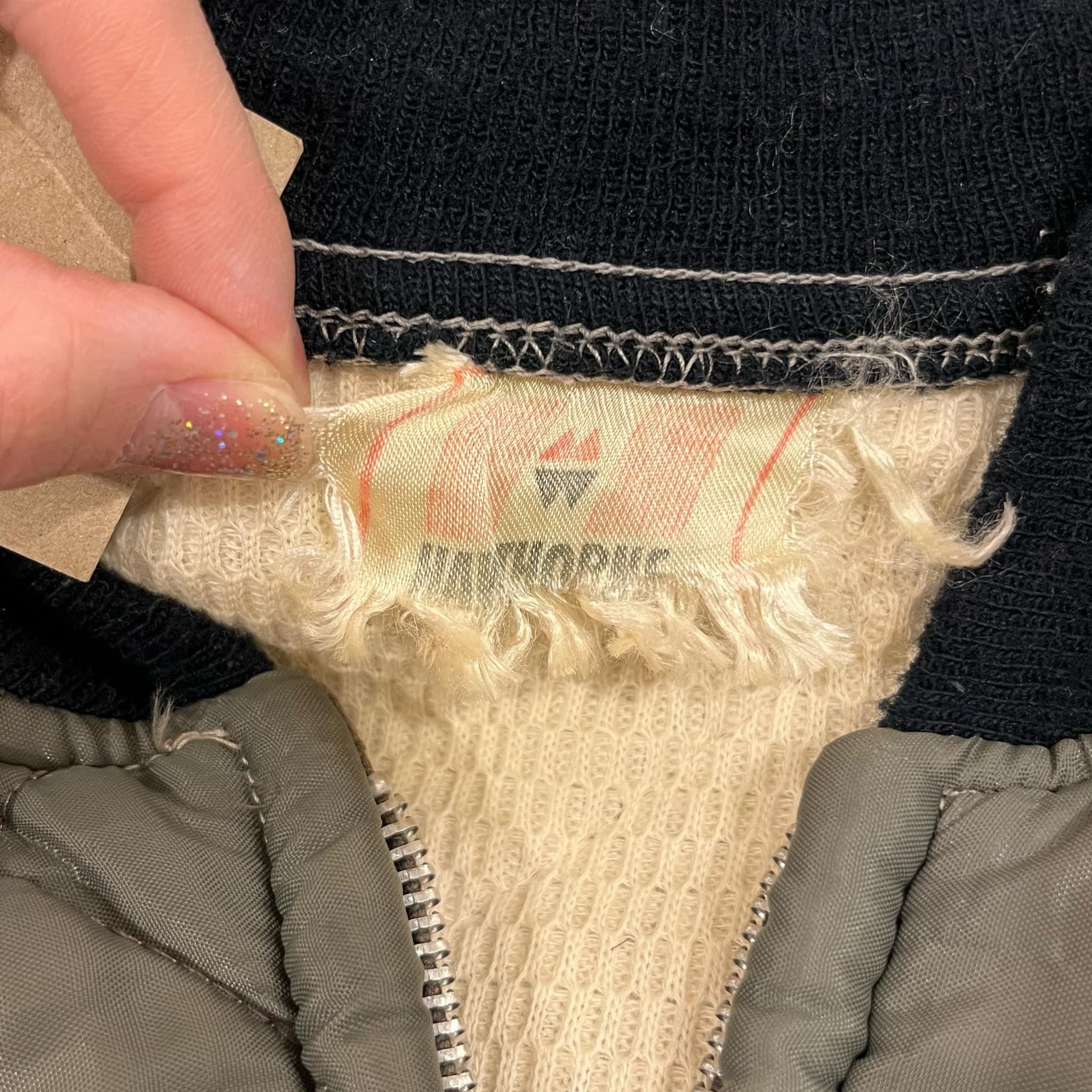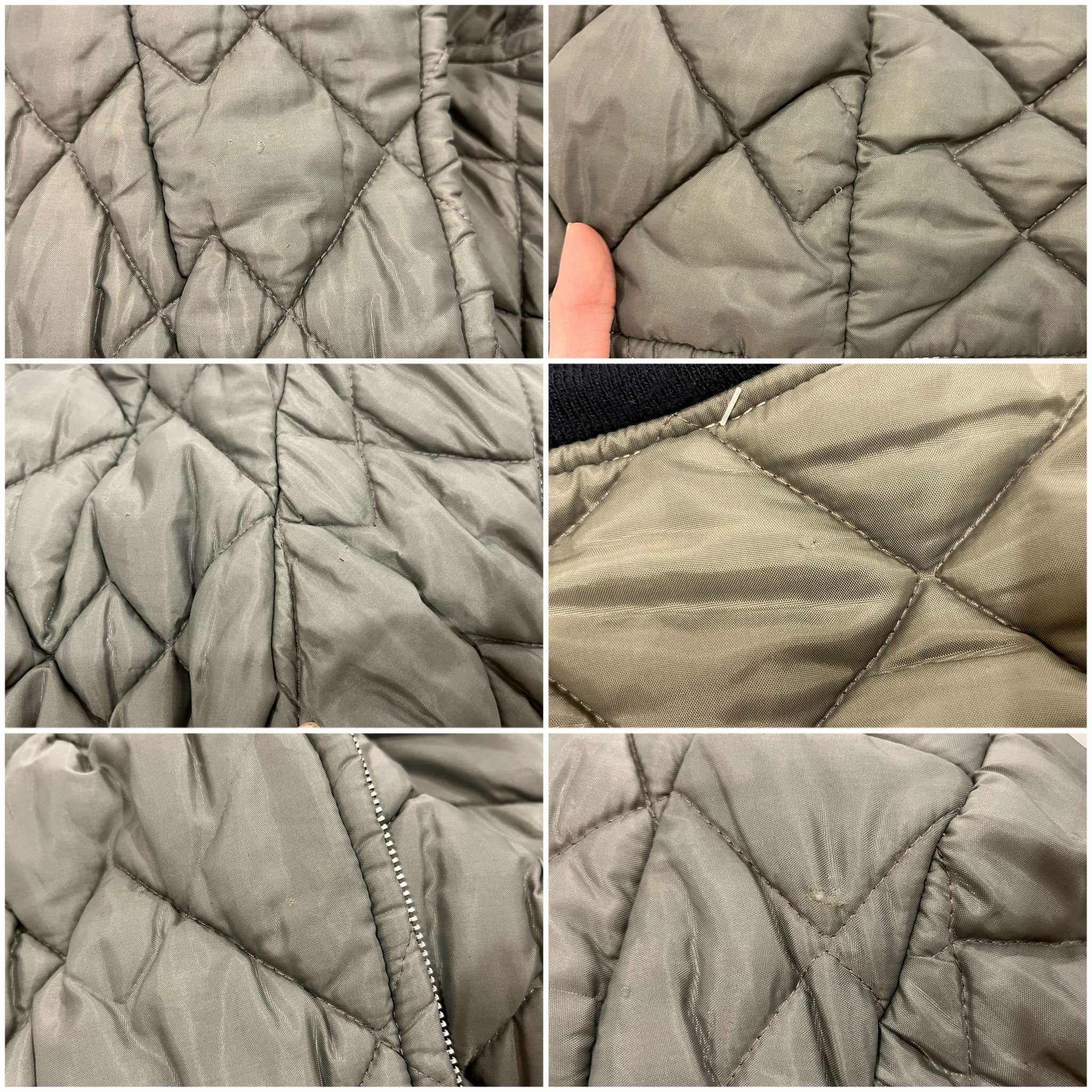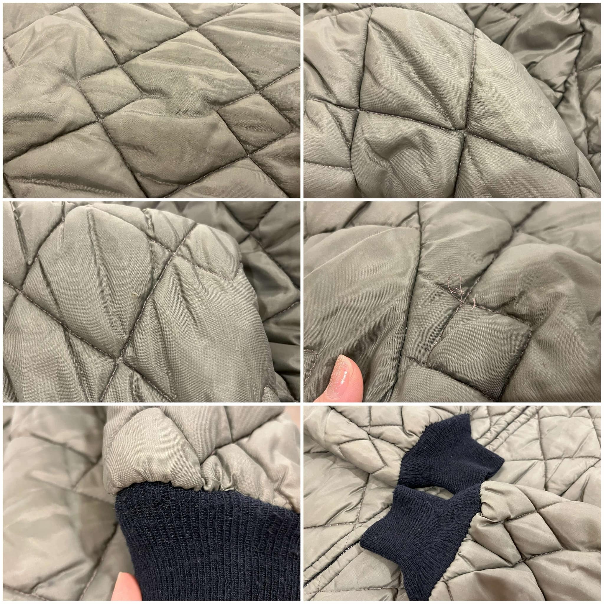 いくつかシミ汚れや小さな傷、小穴、ステッチのホツレやリブ部分の毛羽立ちがございますが、古着の味として着て頂けるかと思います。