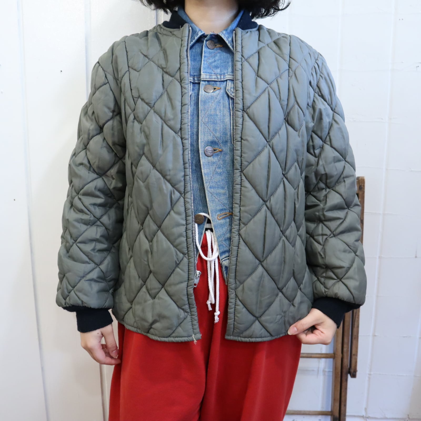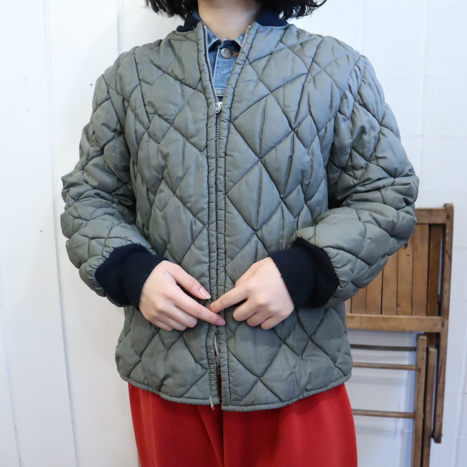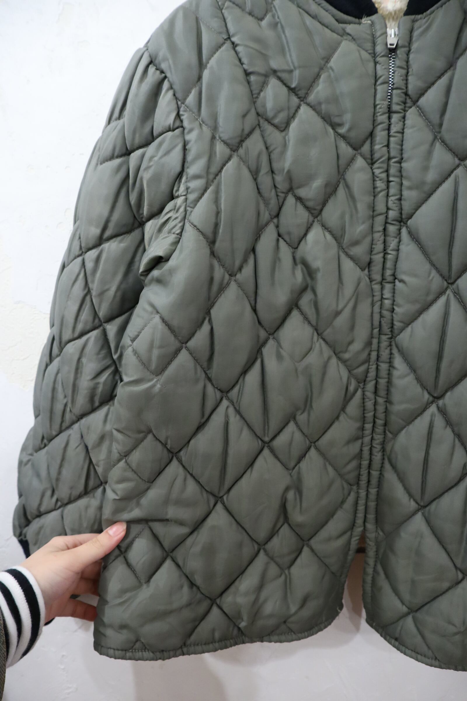 合わせやすいカラーのキルティングジャケットです。