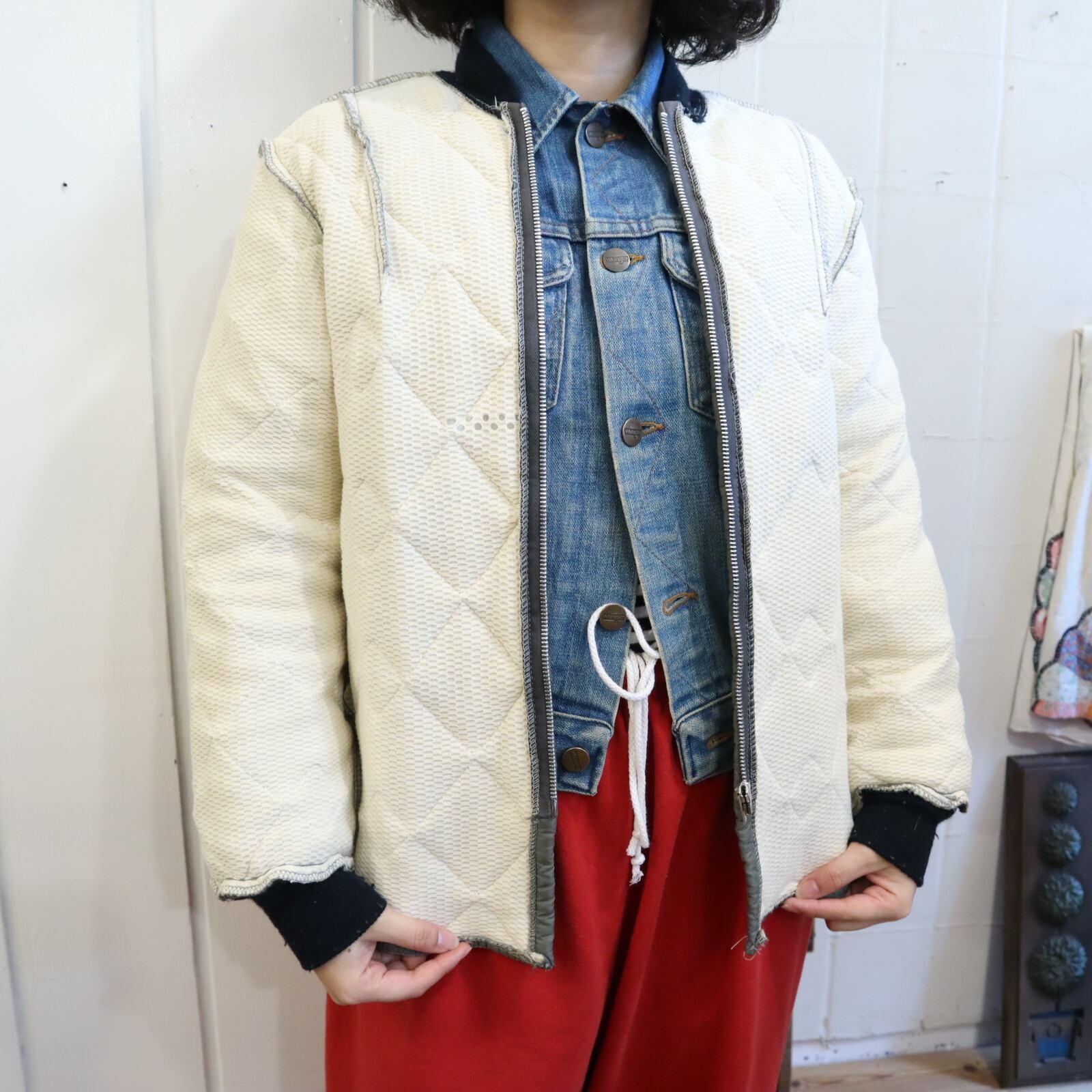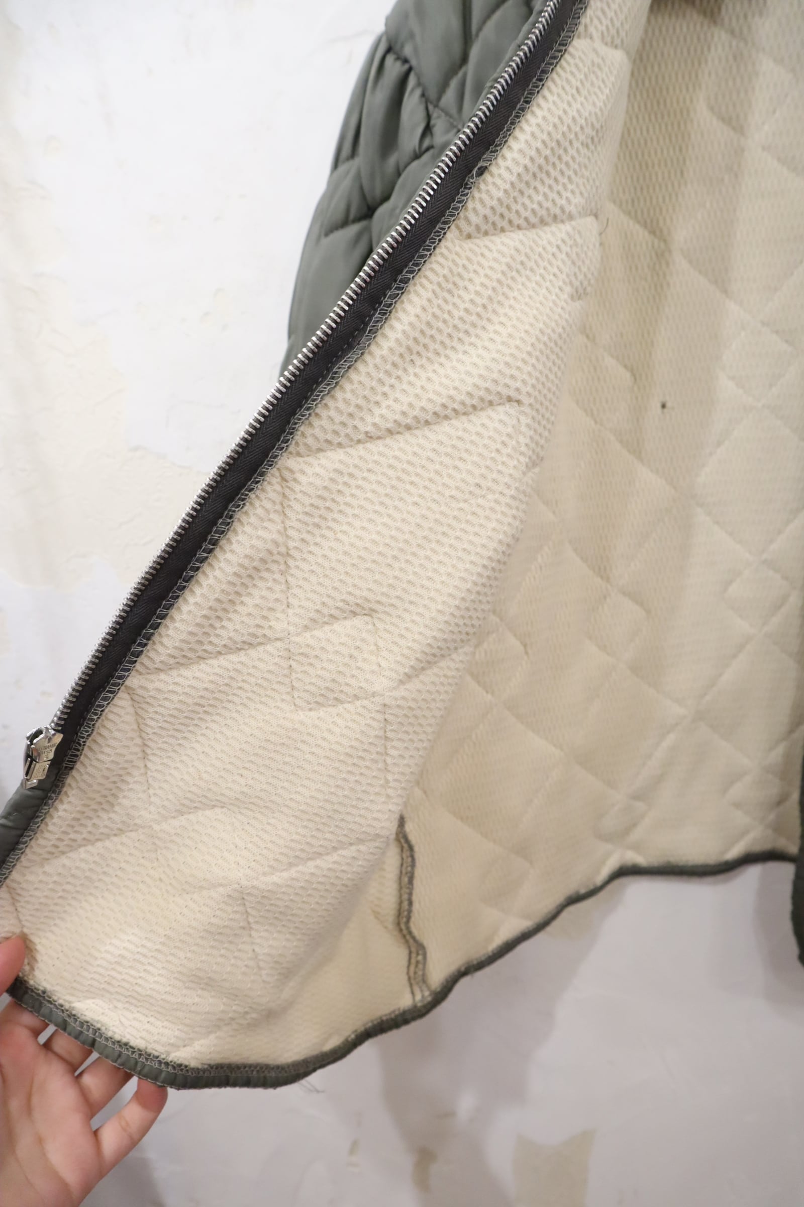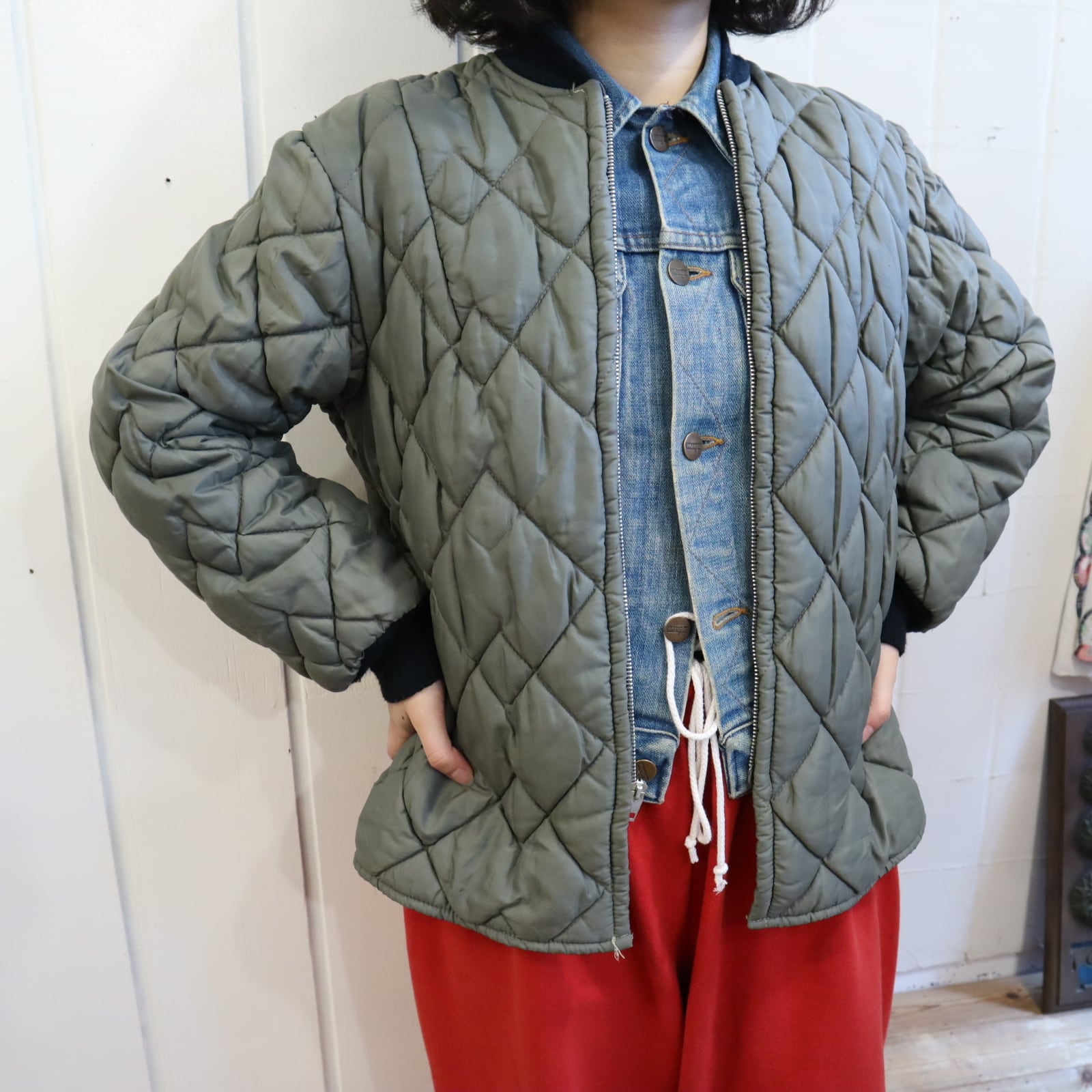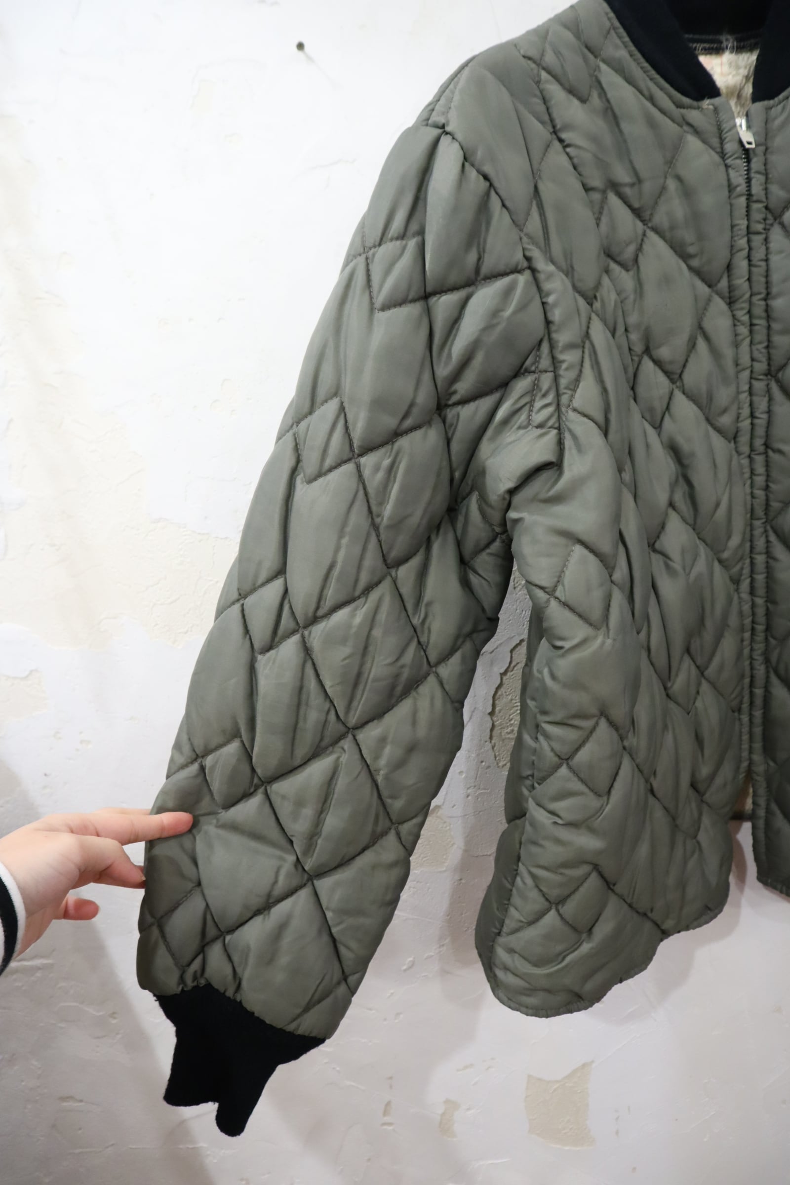 合わせやすいカラーのキルティングジャケットです。