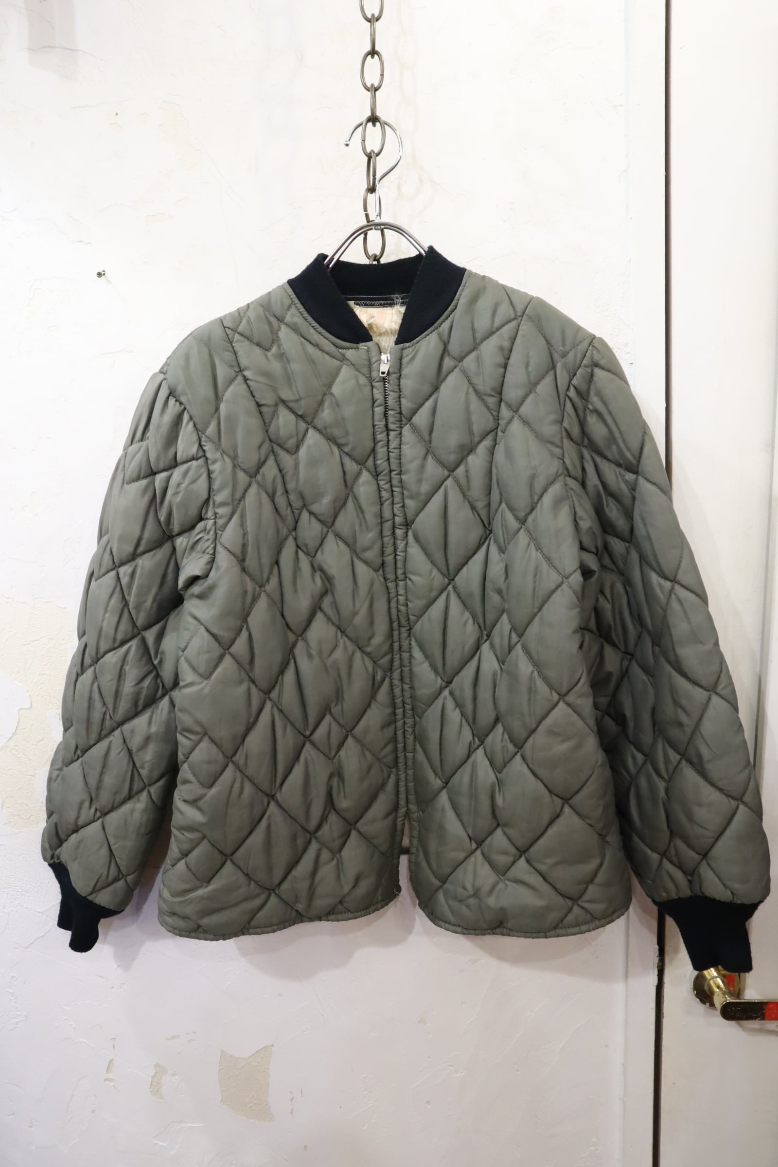 gray×black quilting vintage jacket [l-4491]