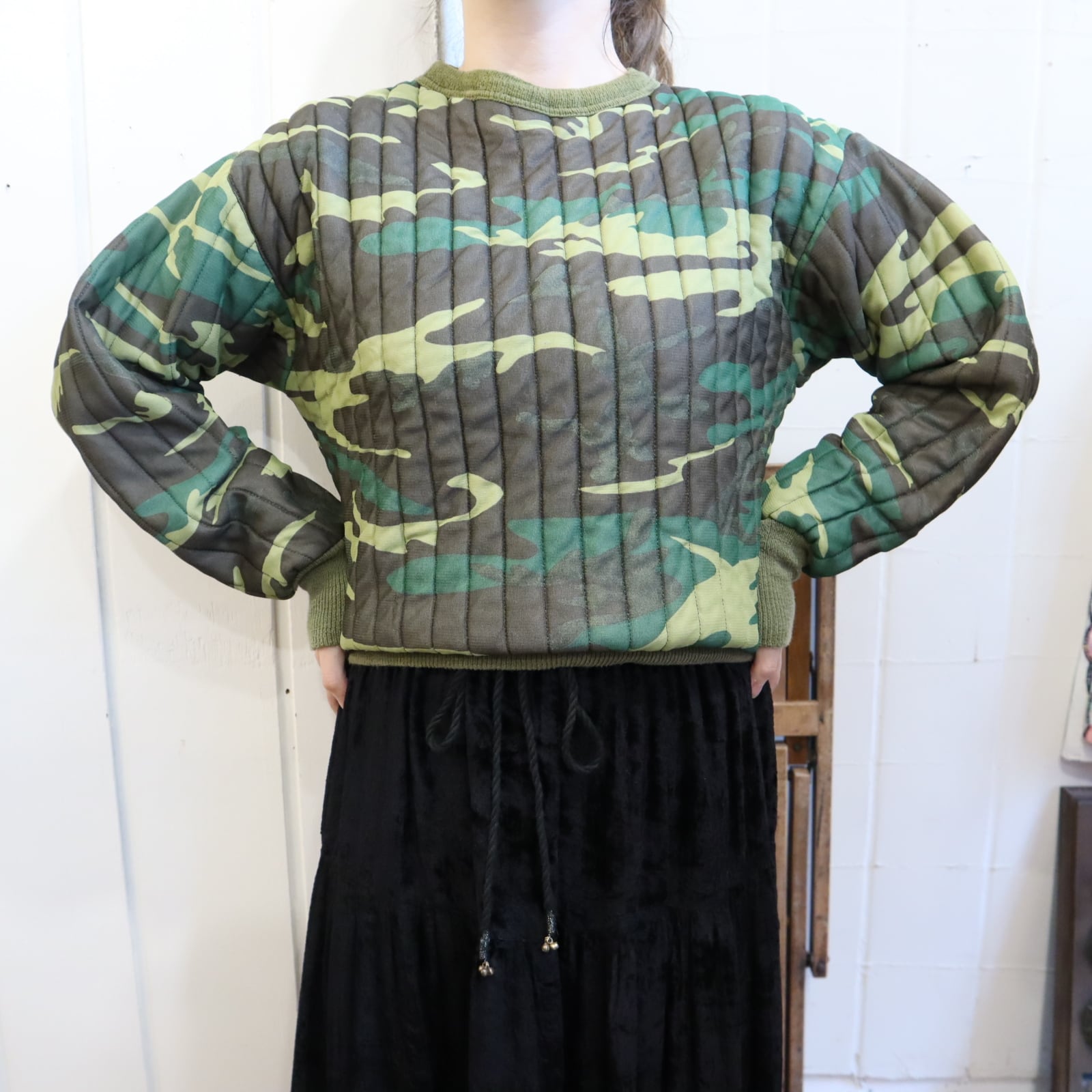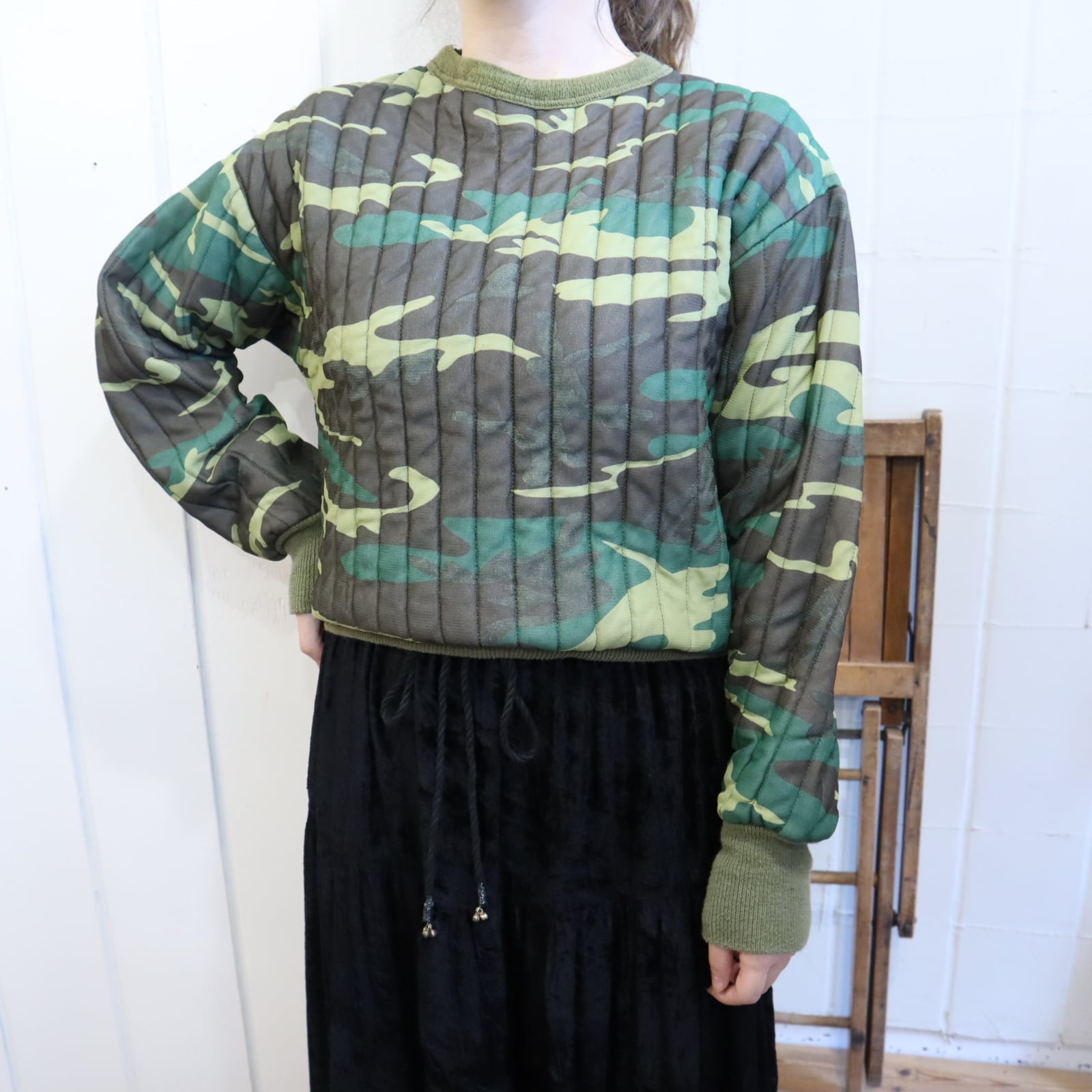 made in USA green×khaki camouflage pattern quilting tops [l-4492]