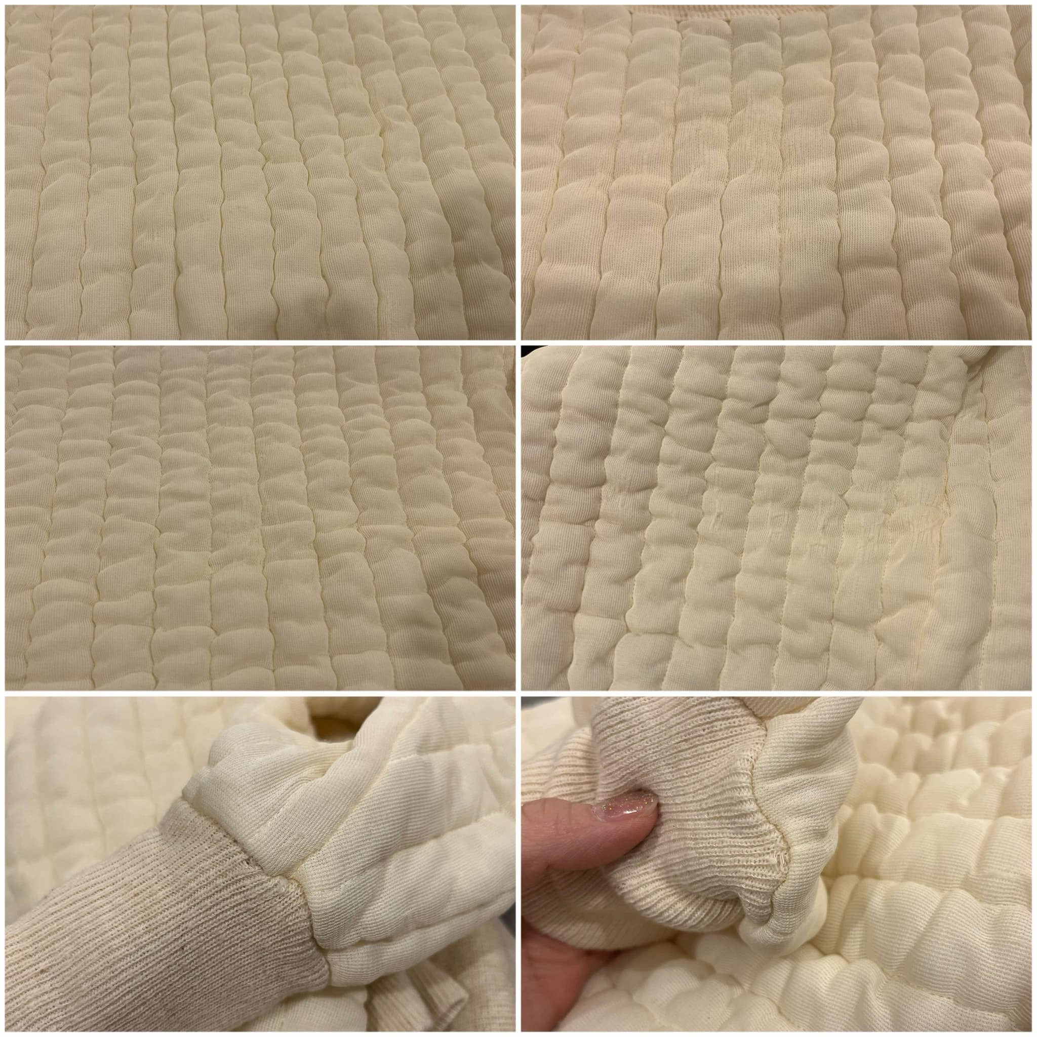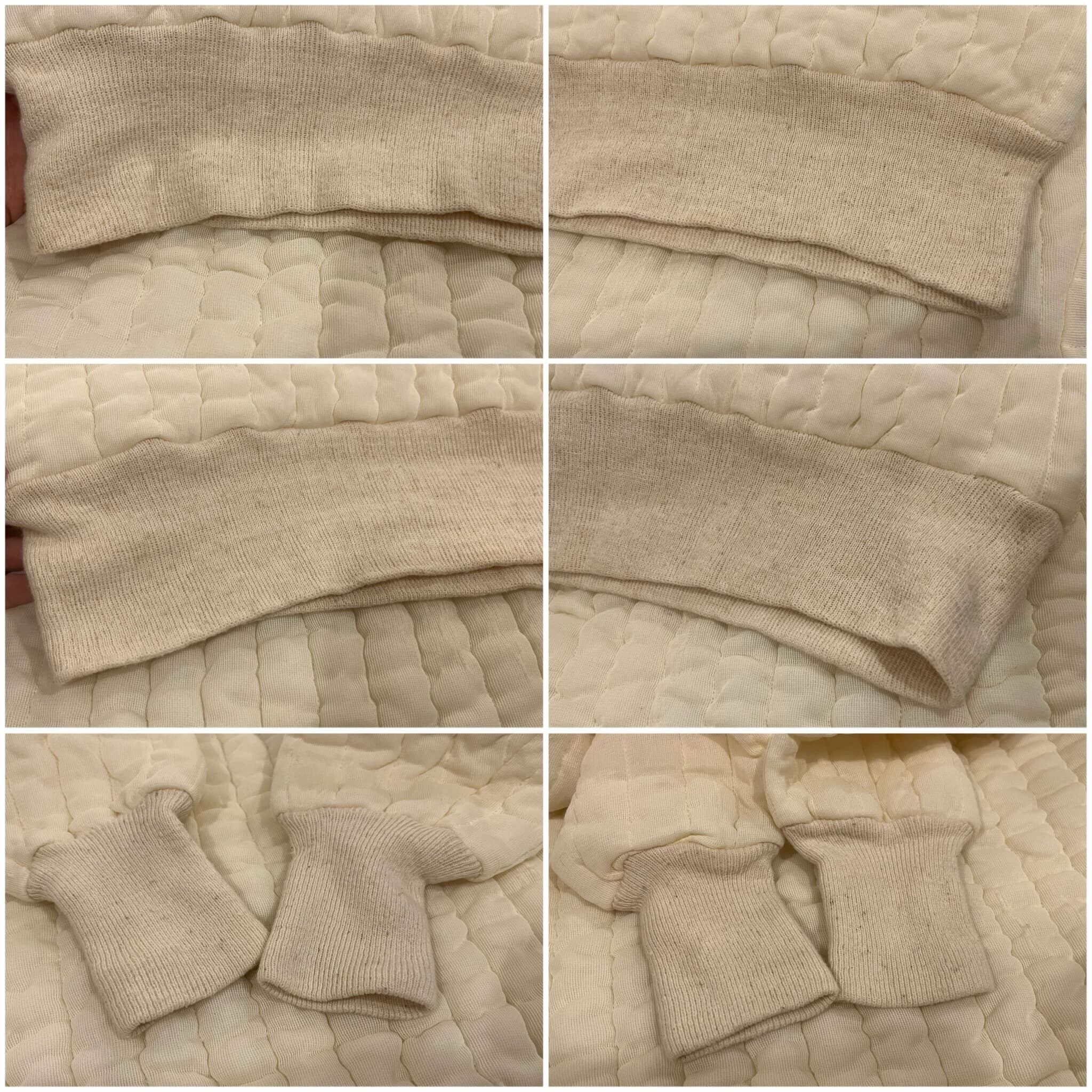 リブ部分のシミ汚れや他の繊維の混ざり、数か所生地の傷がございますが、古着の味として着て頂けるかと思います。