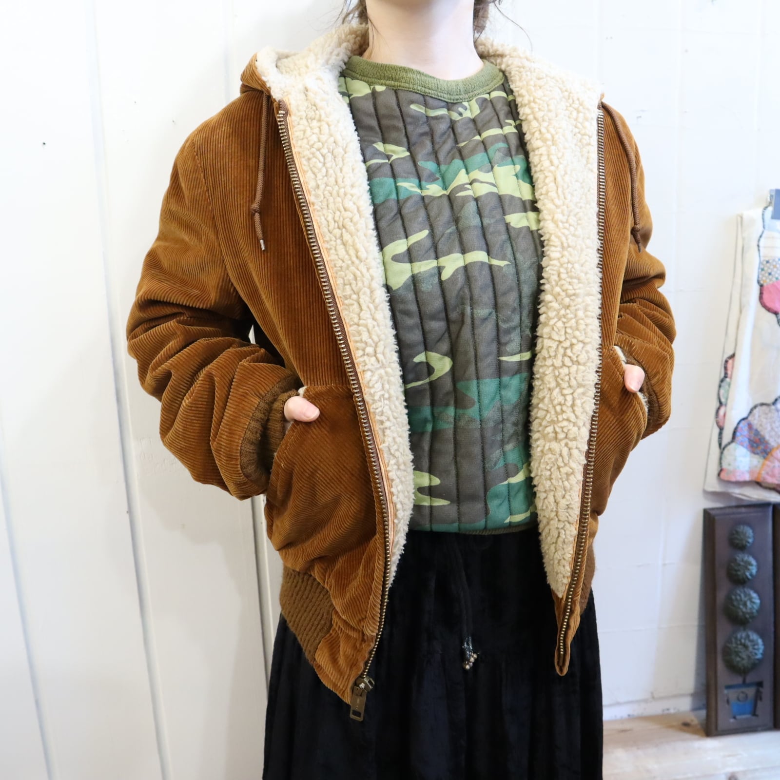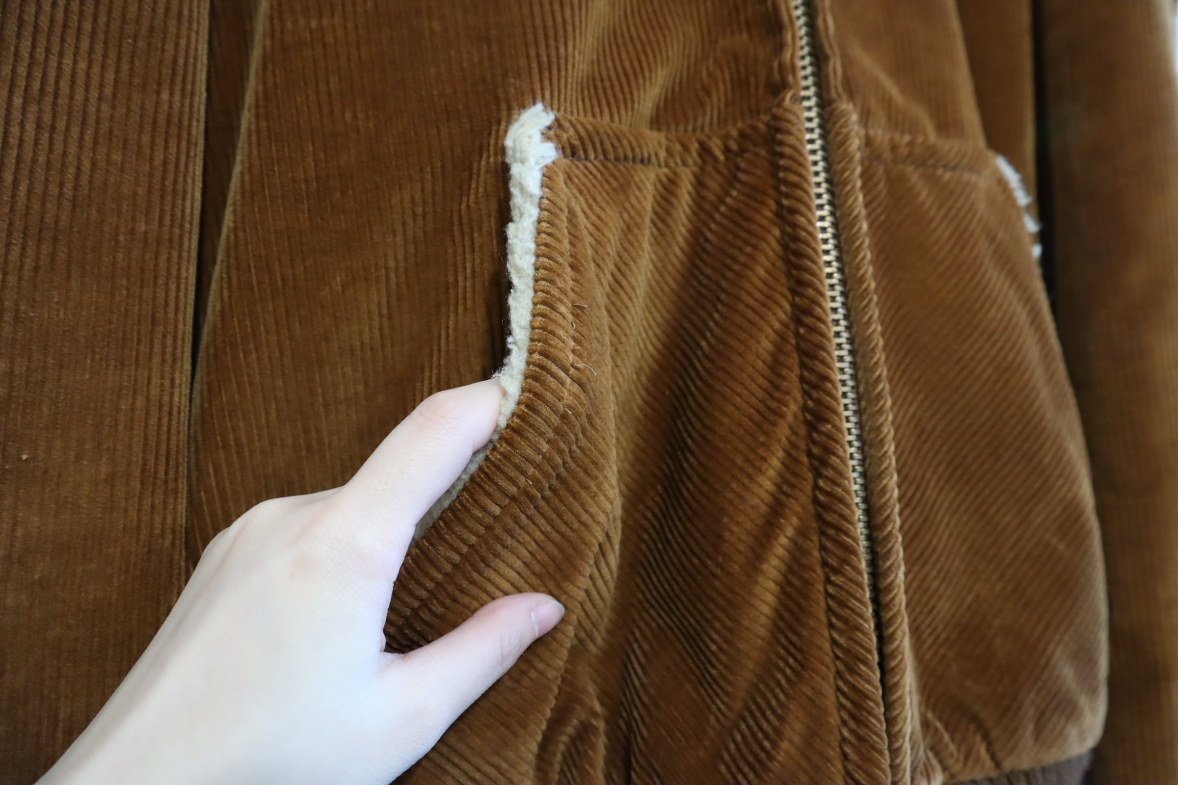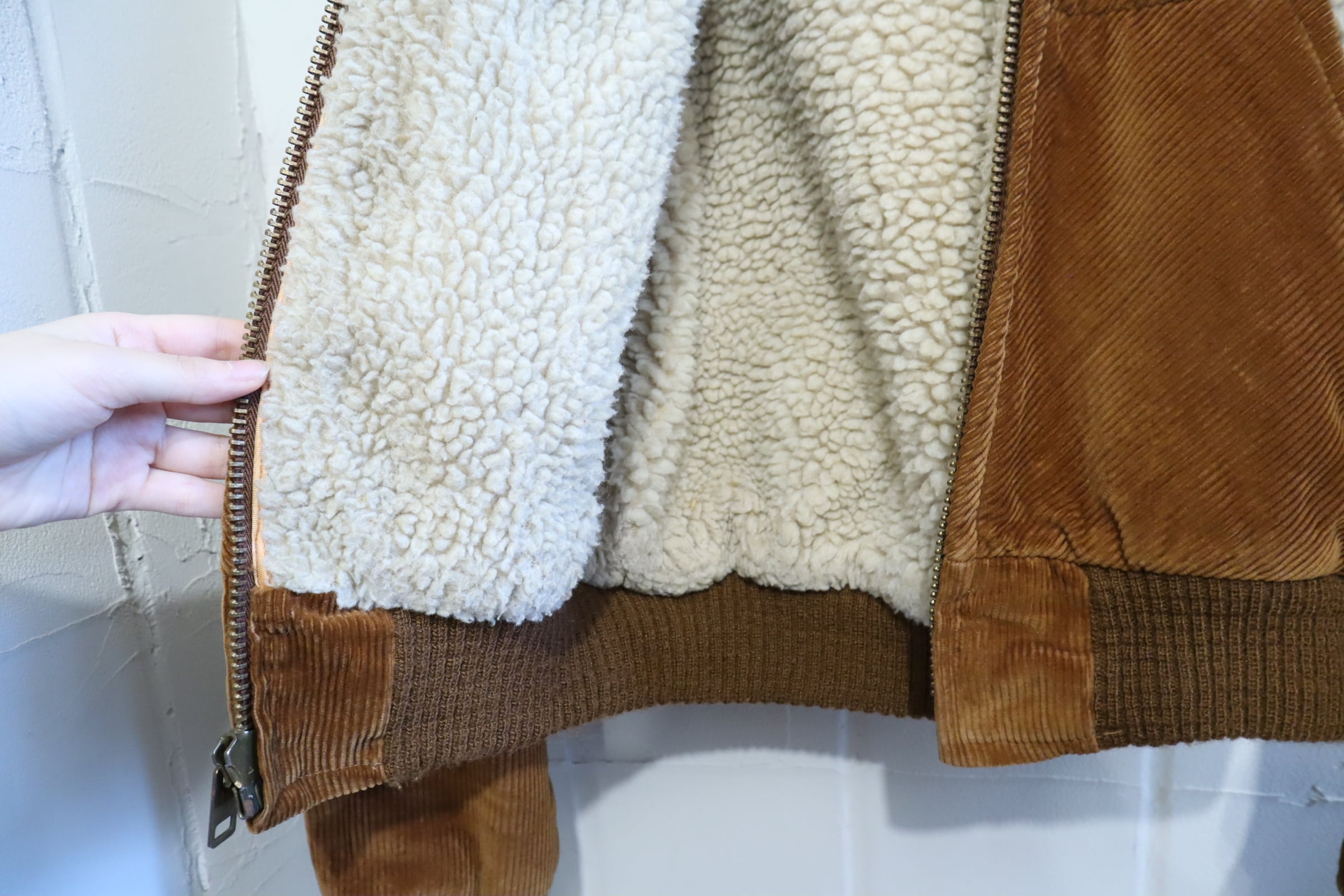 コーデュロイ×裏地ボアの組み合わせがなんとも可愛いジャケット。