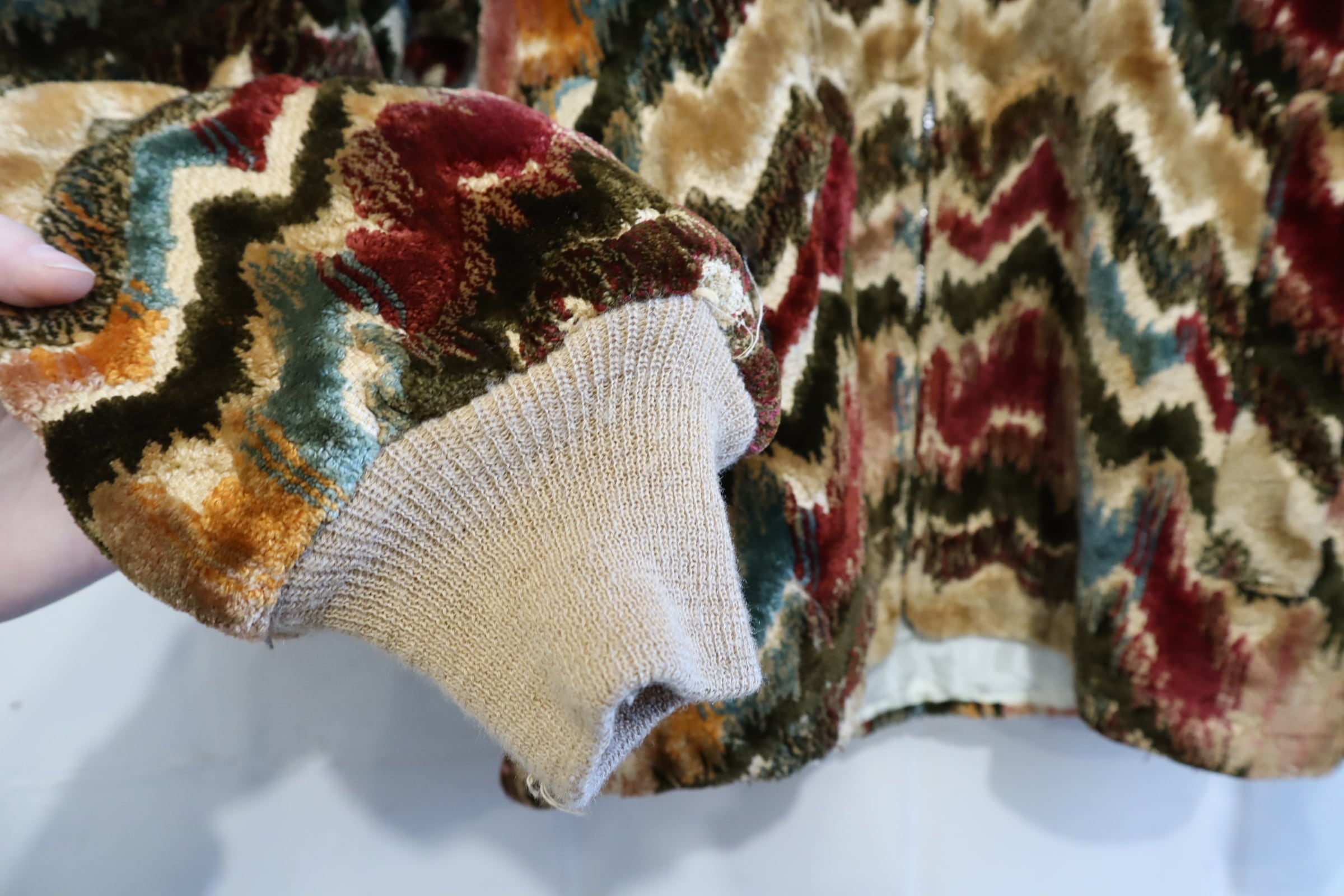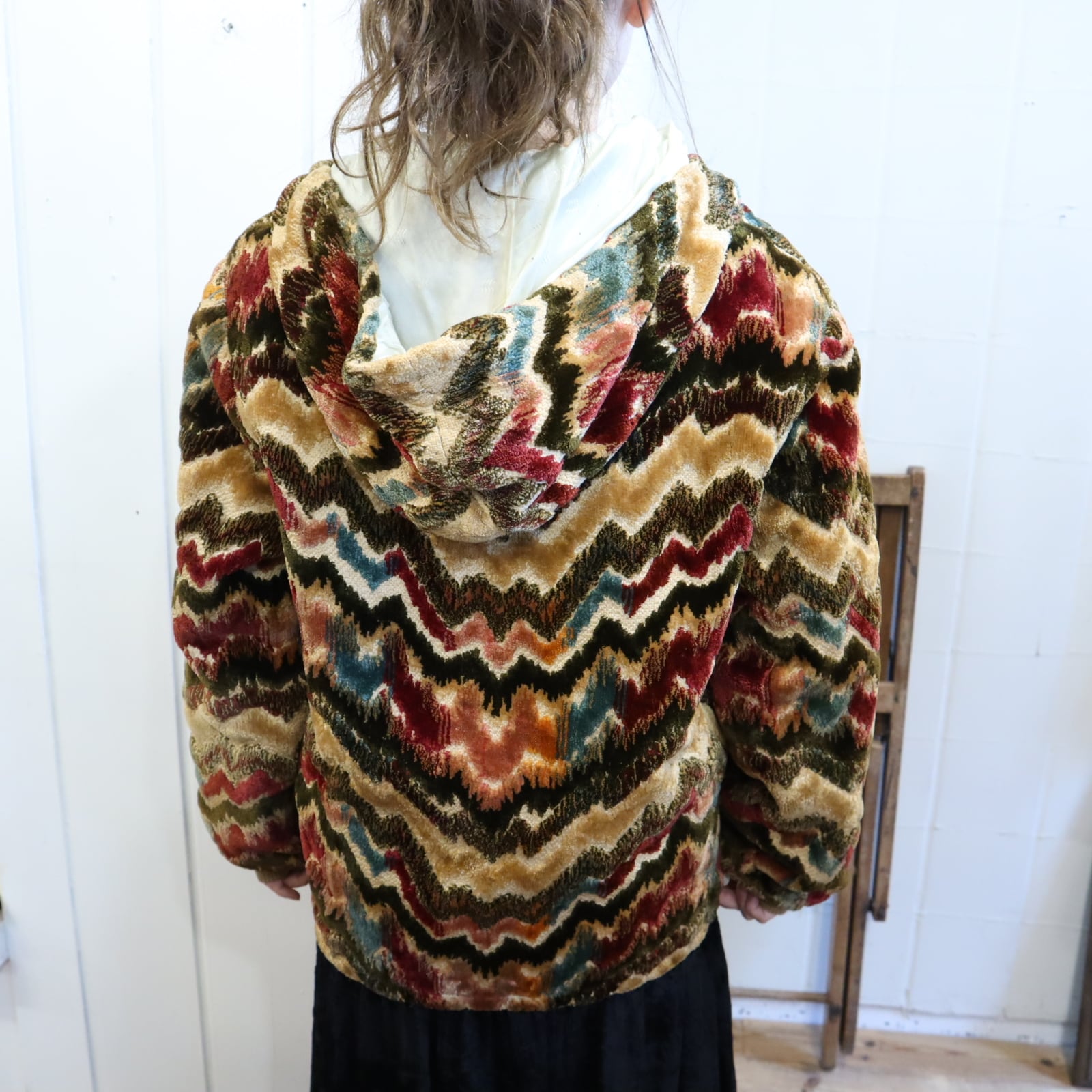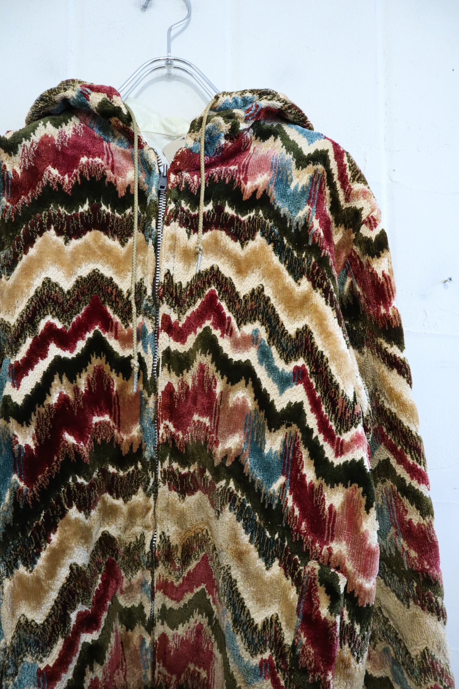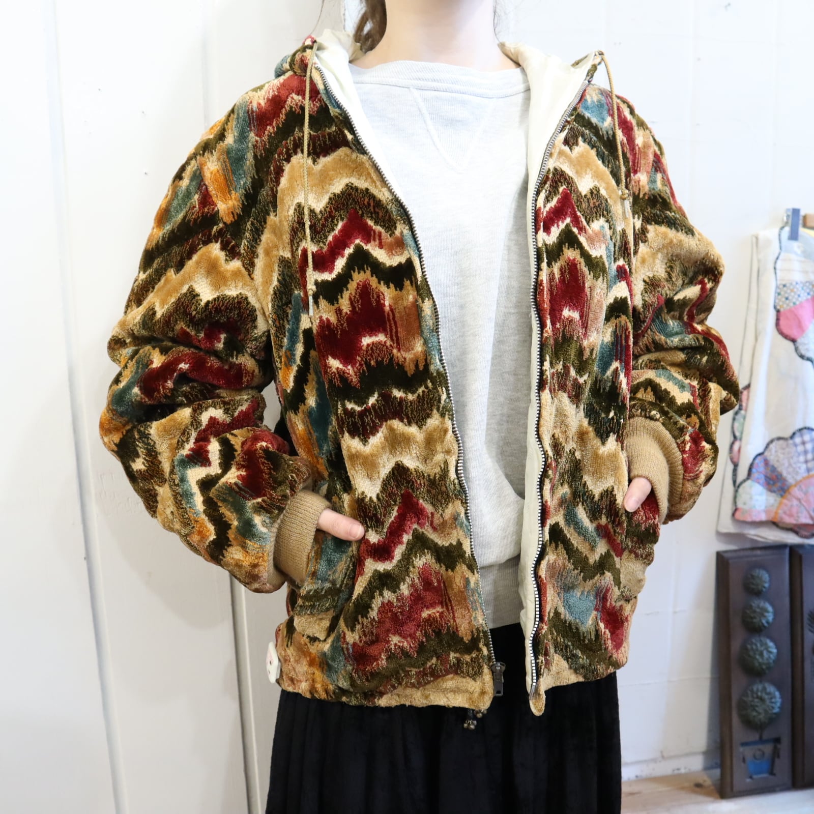 60s beige×colorful gizagiza gobelin hood jacket [l-4495]