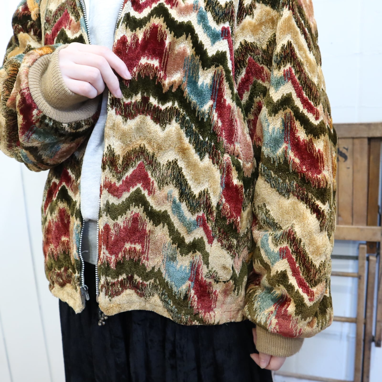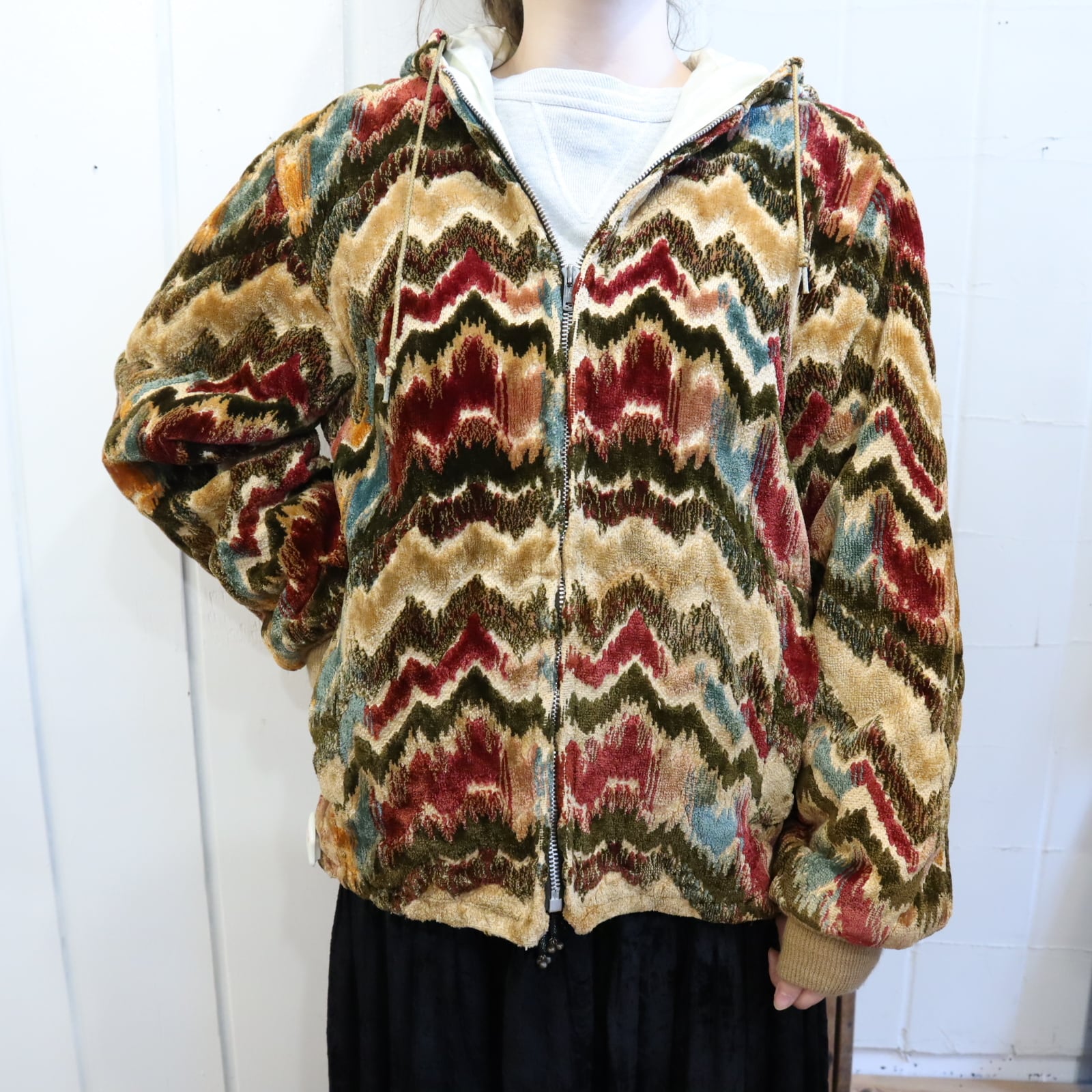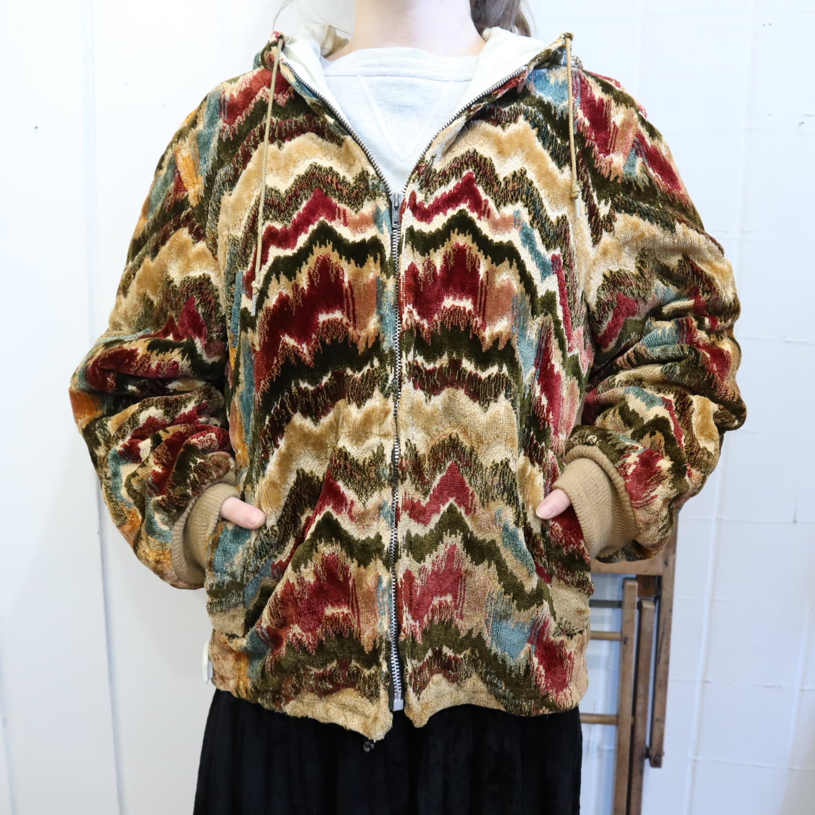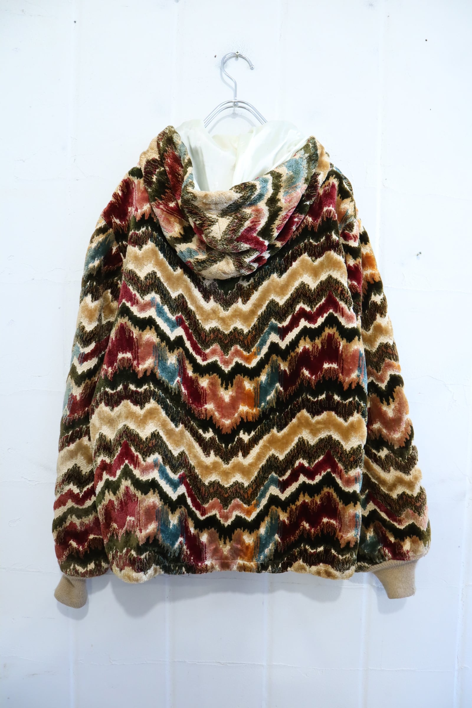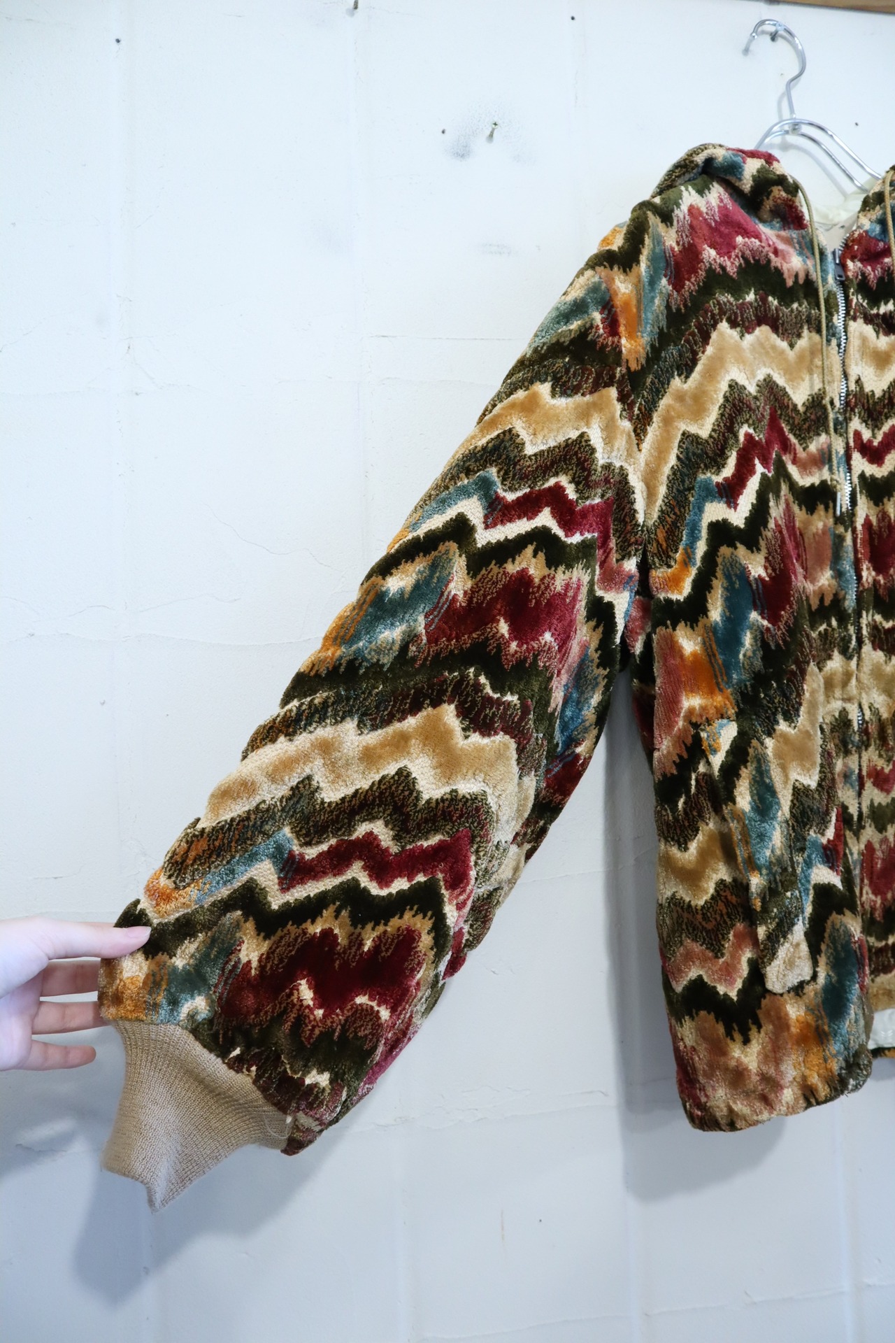 60s beige×colorful gizagiza gobelin hood jacket [l-4495]