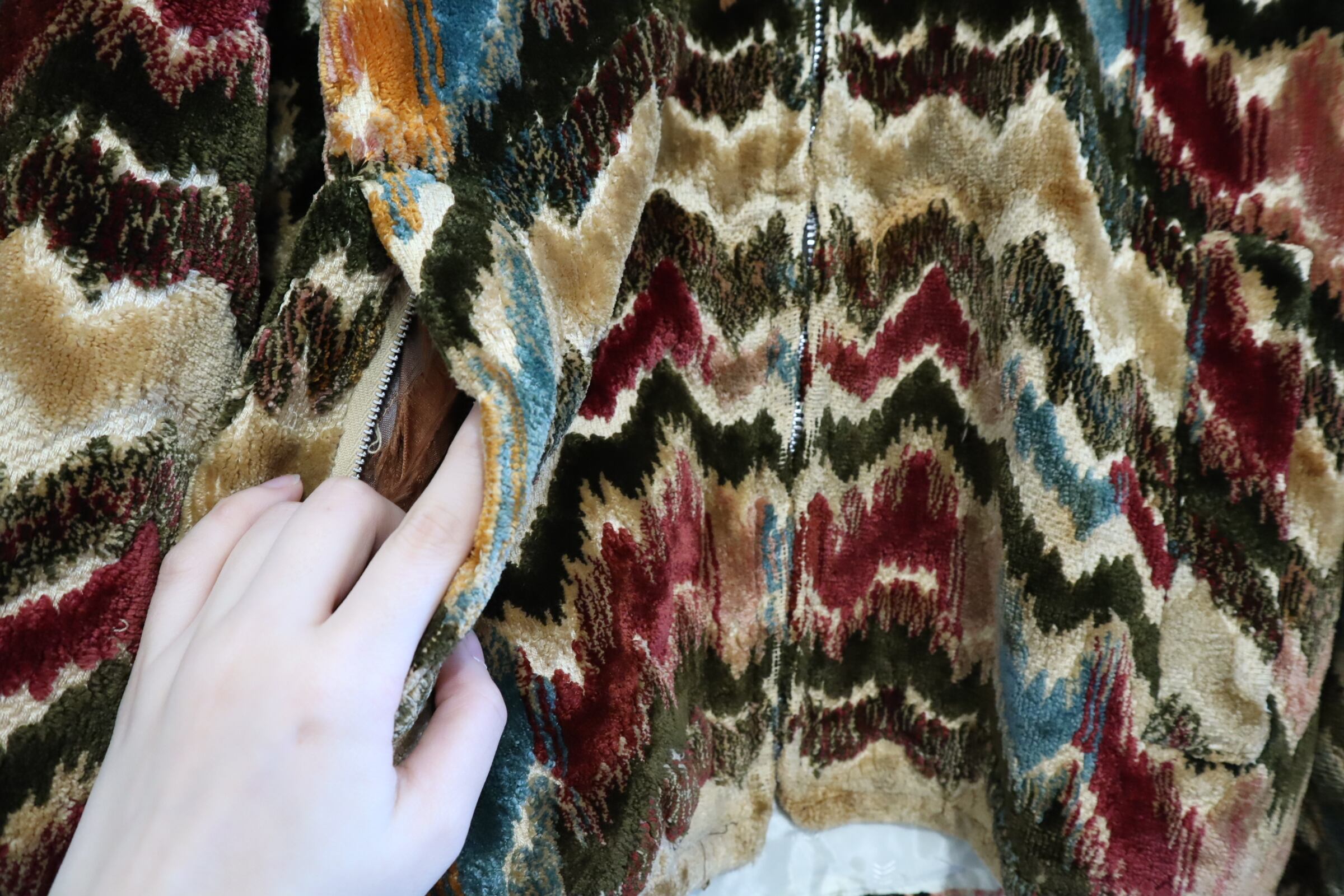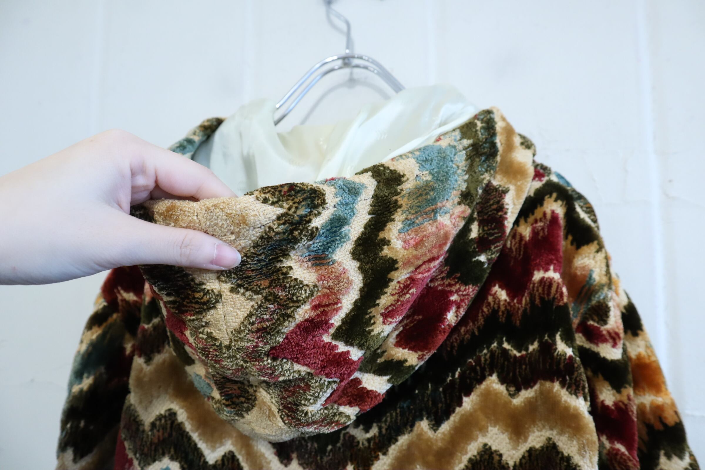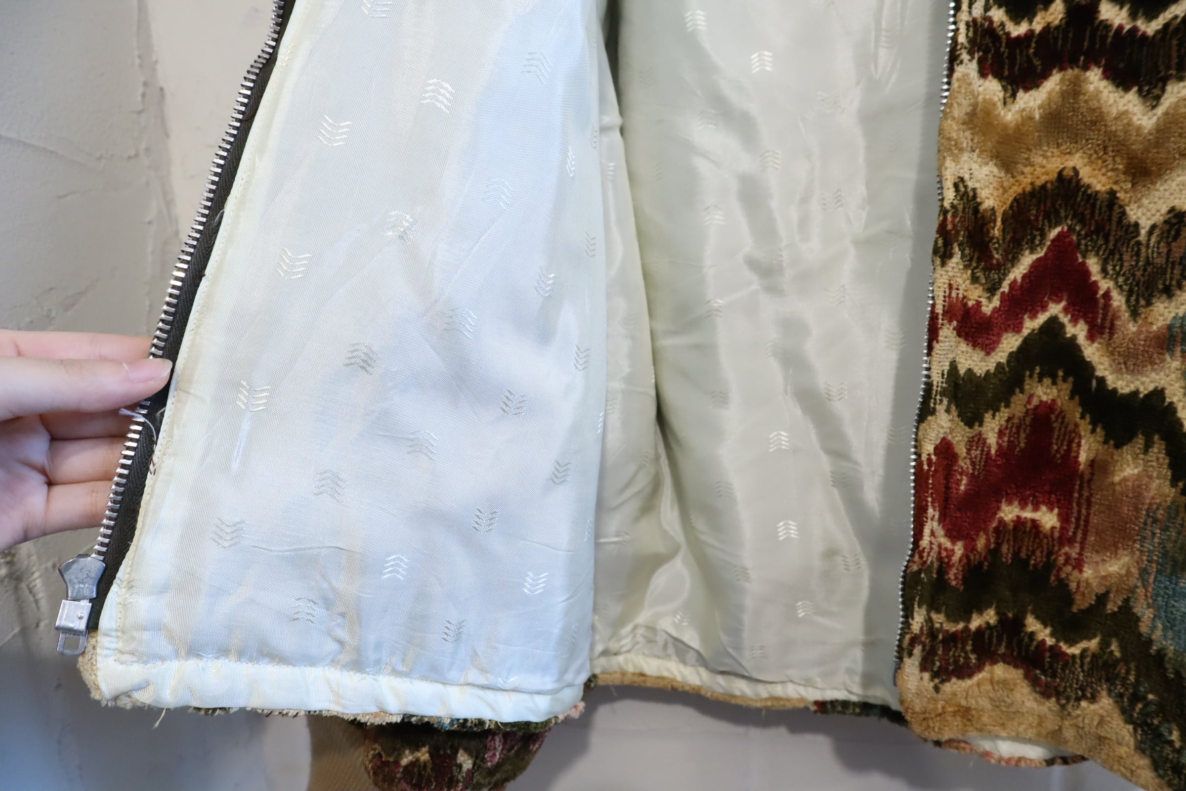 珍しい形・テキスタイルのビンテージタペストリージャケットです。