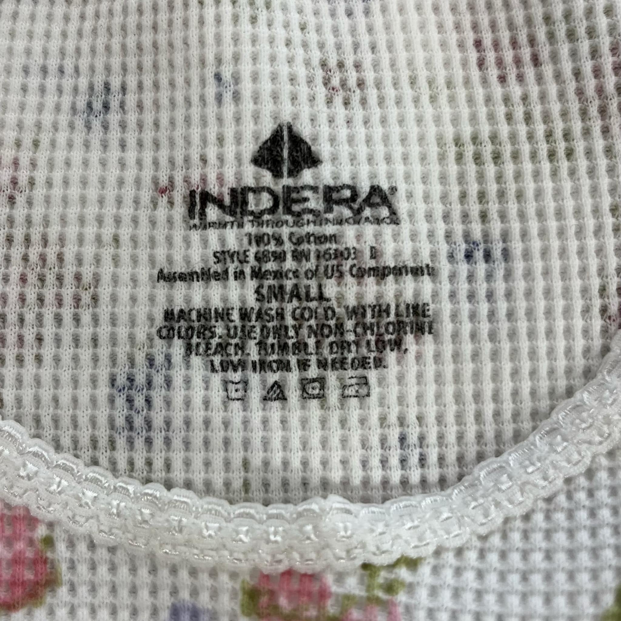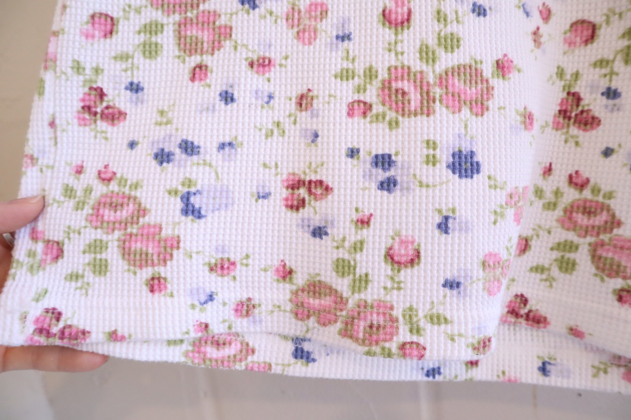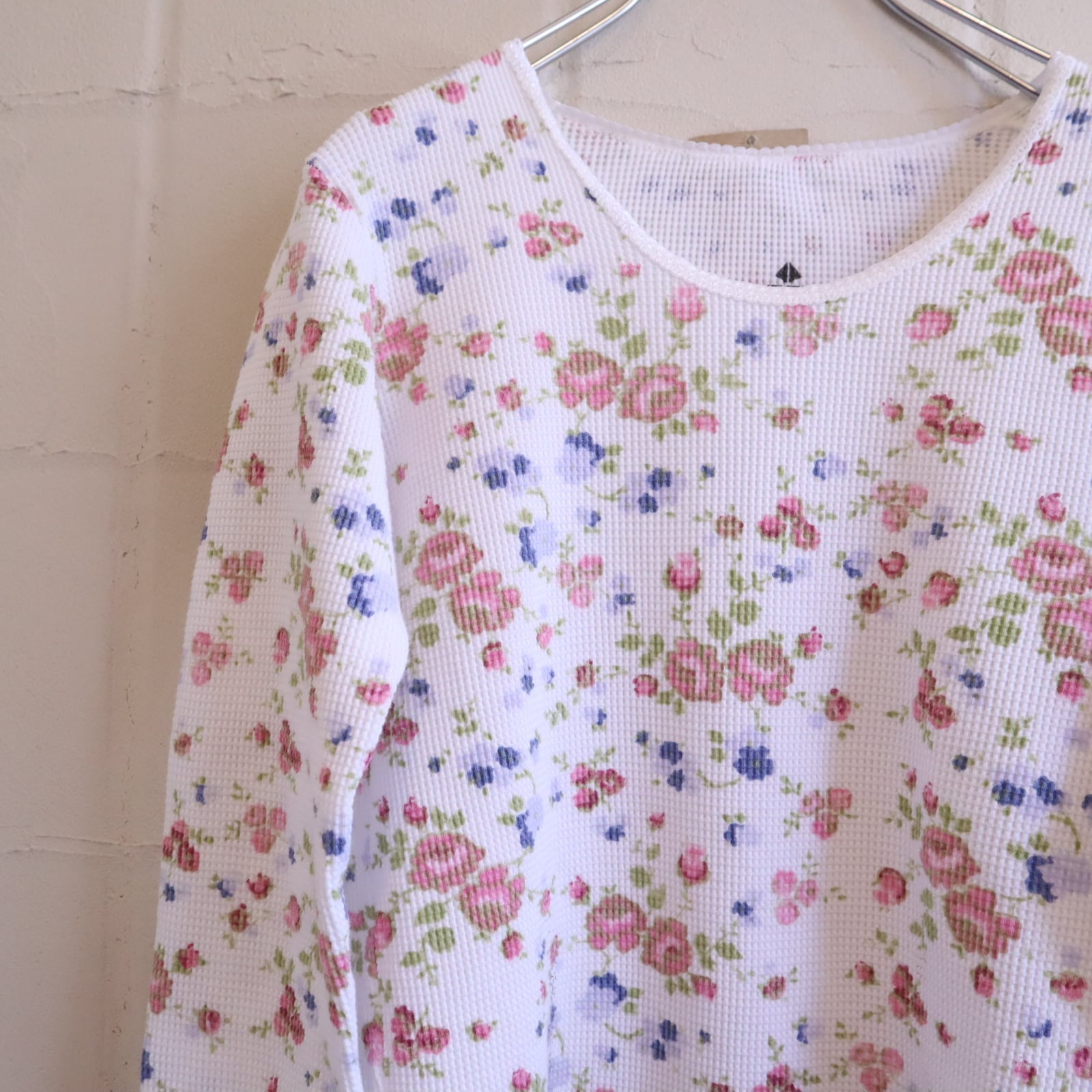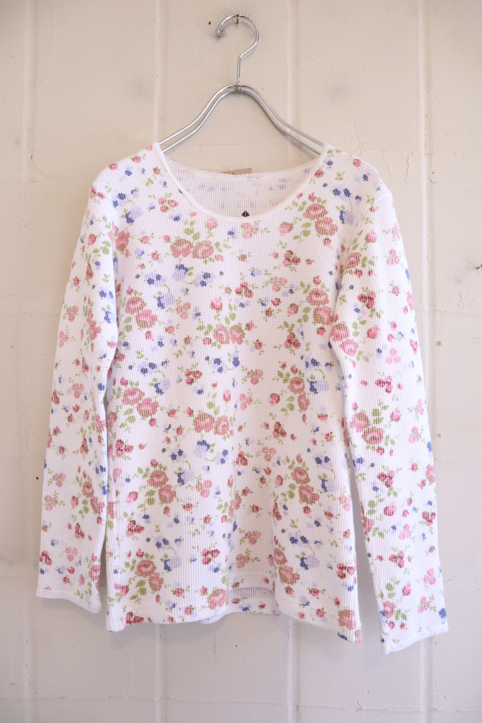 ネックラインや袖口に付いたレースが可愛いワッフルサーマルトップ。