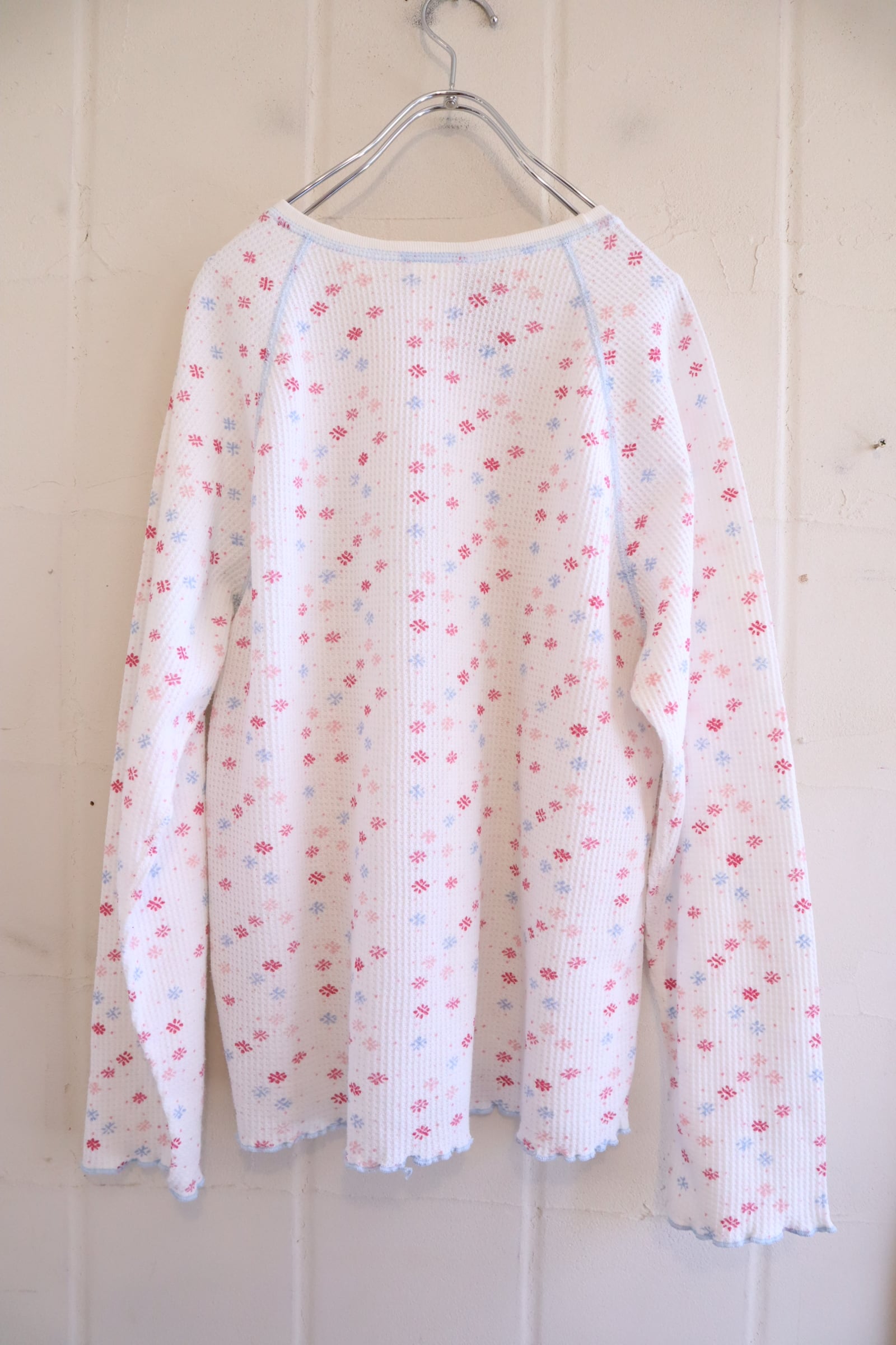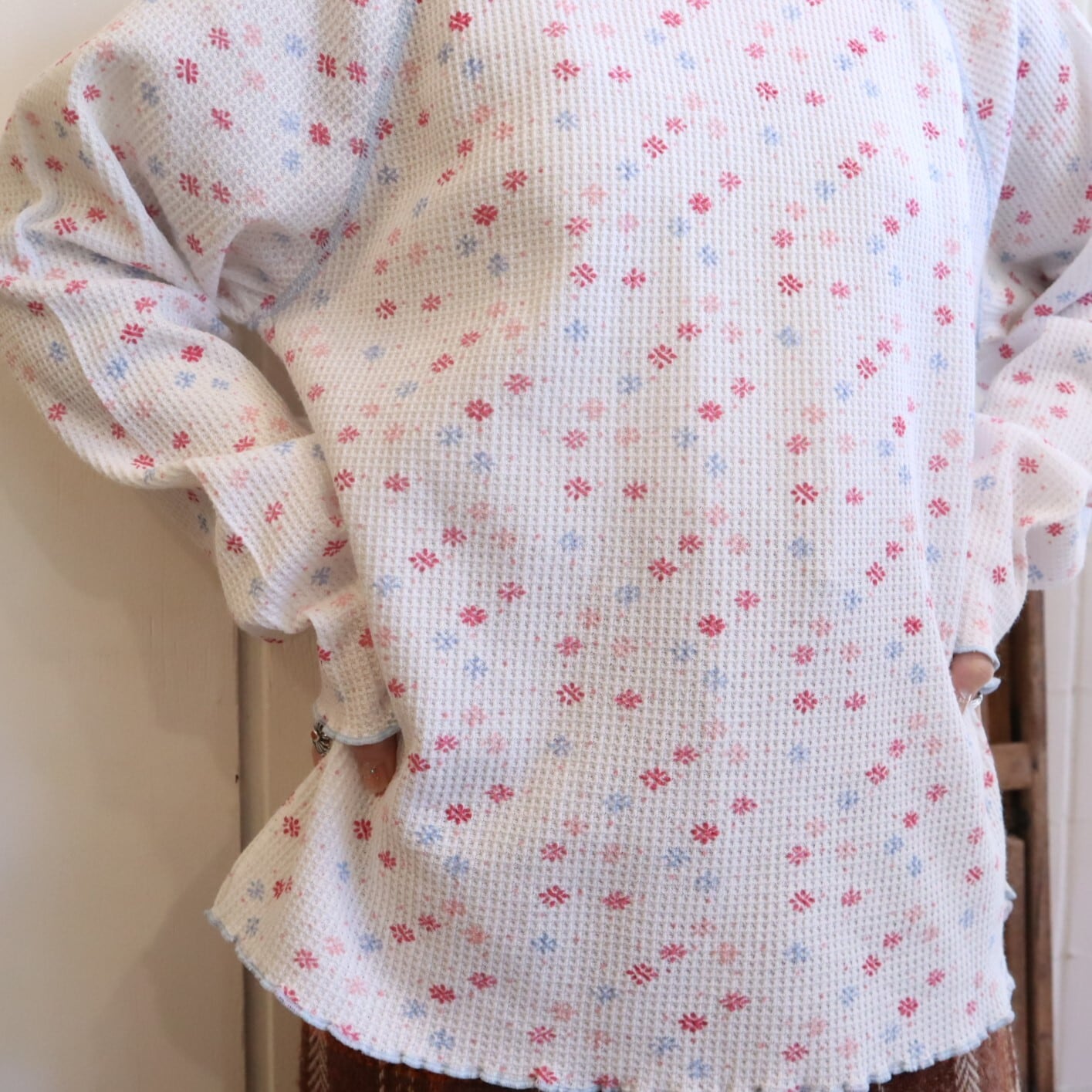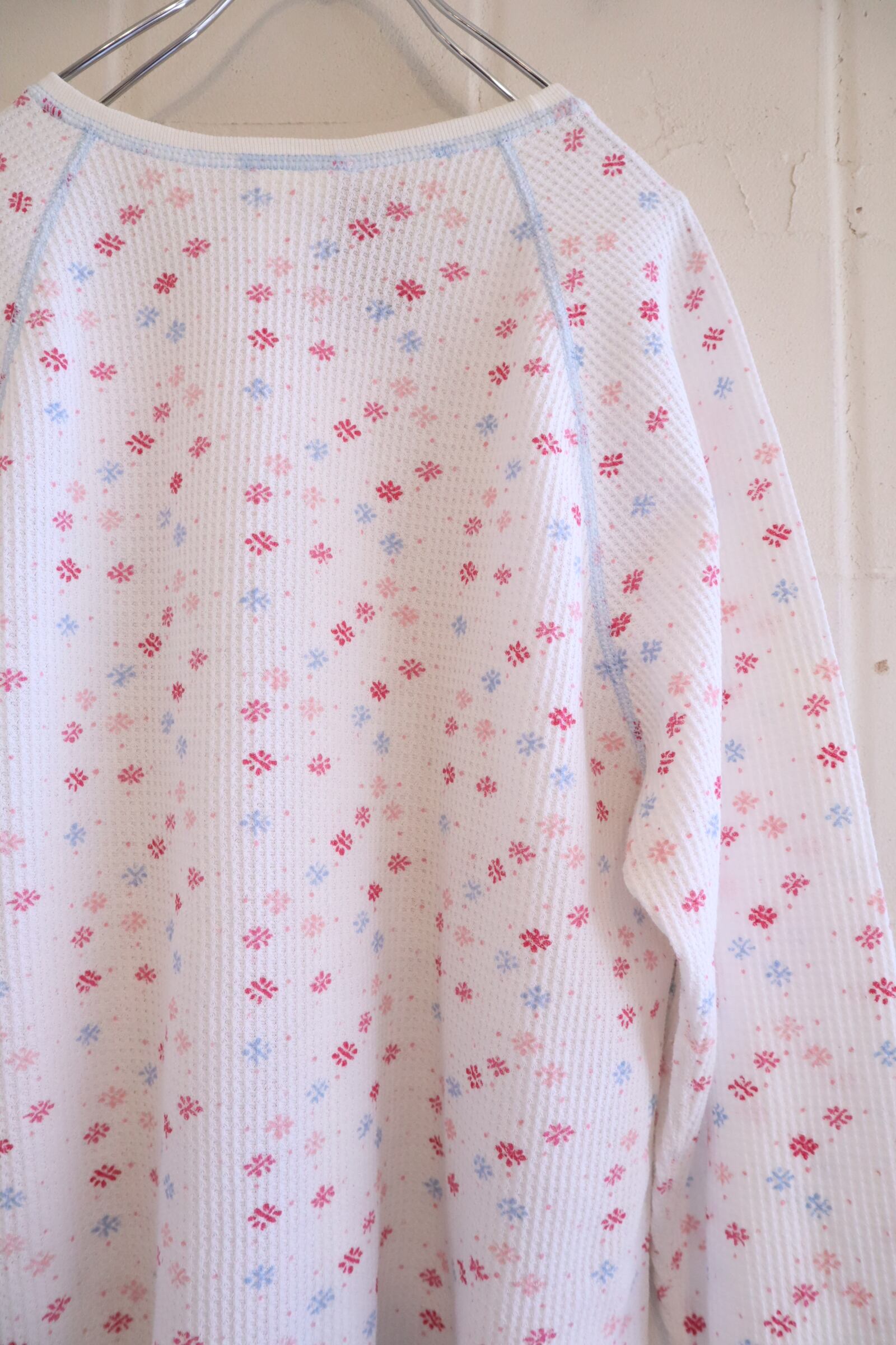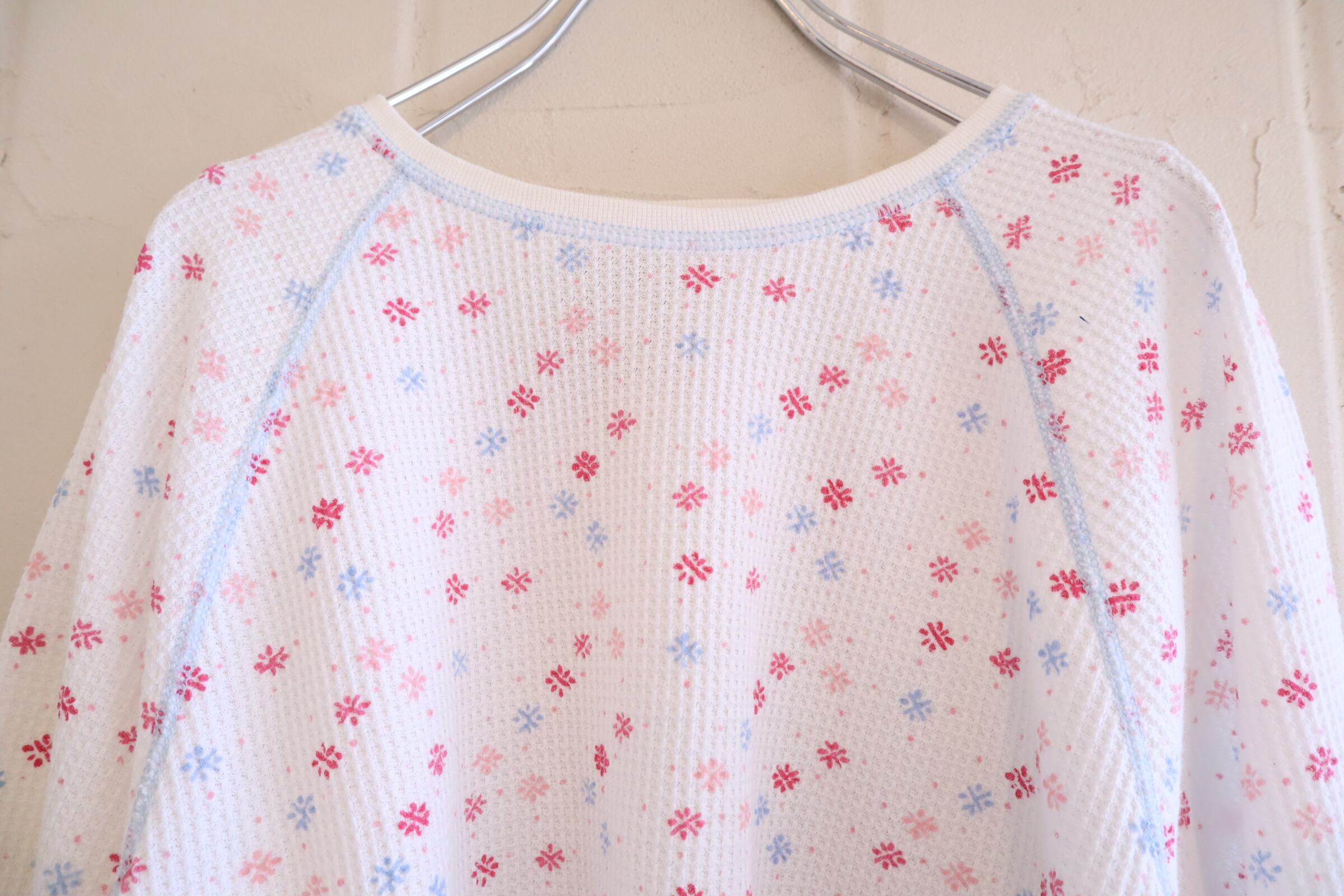 お花にも見える雪の結晶柄がとても可愛いワッフルサーマルトップ。