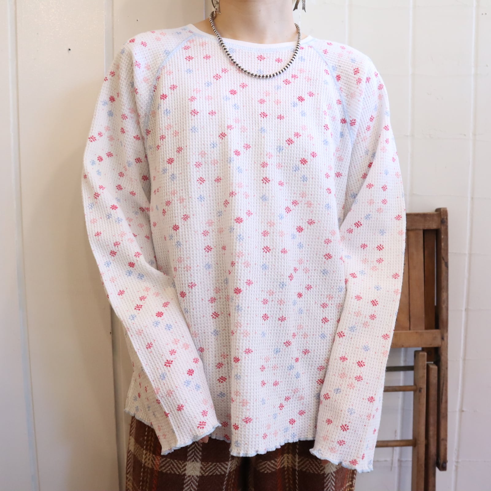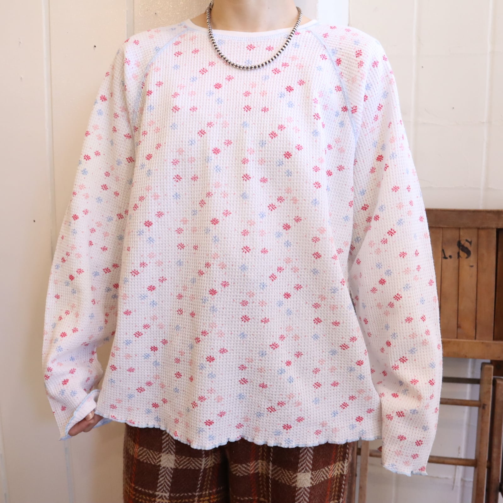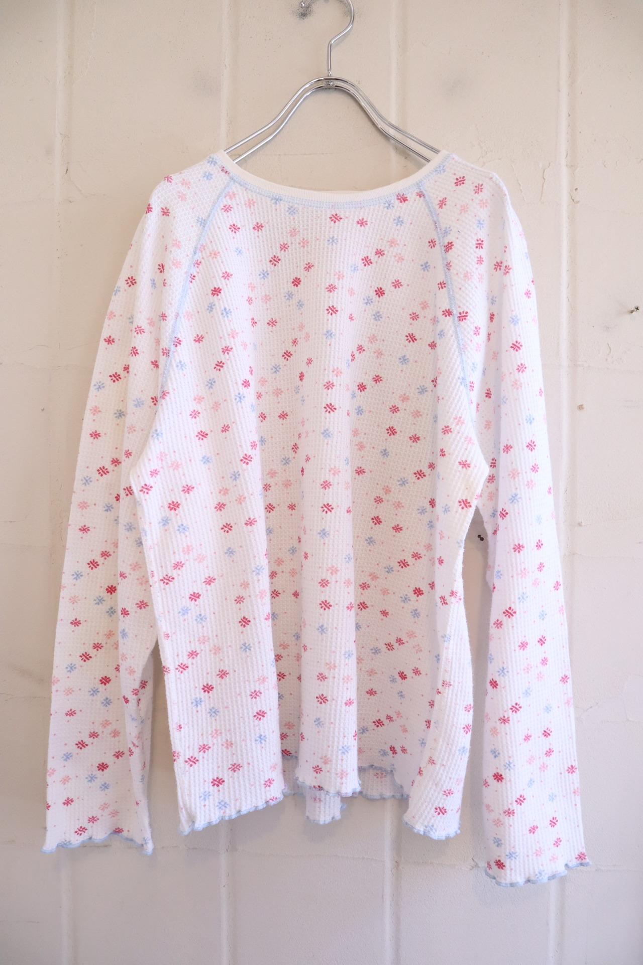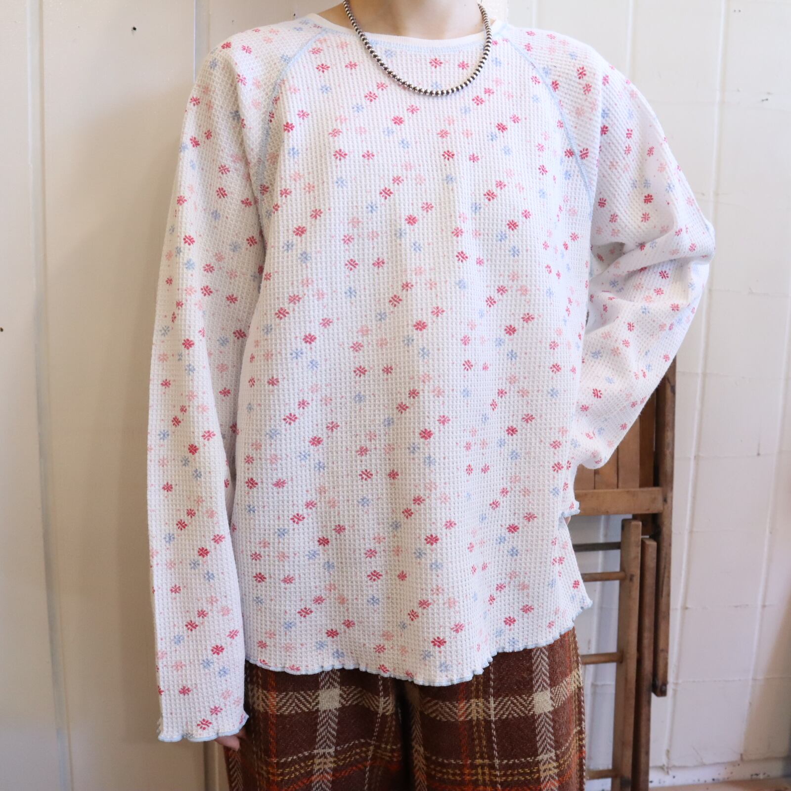 お花にも見える雪の結晶柄がとても可愛いワッフルサーマルトップ。