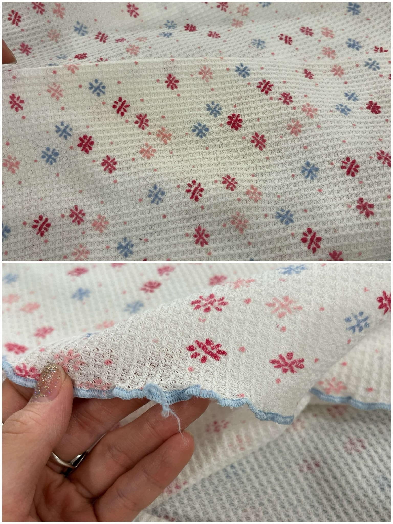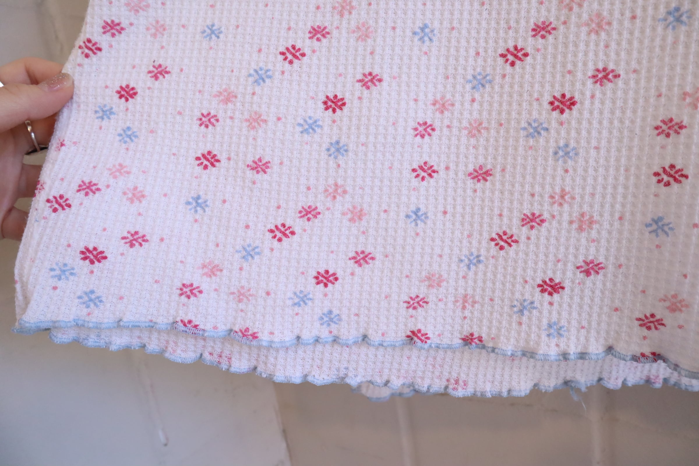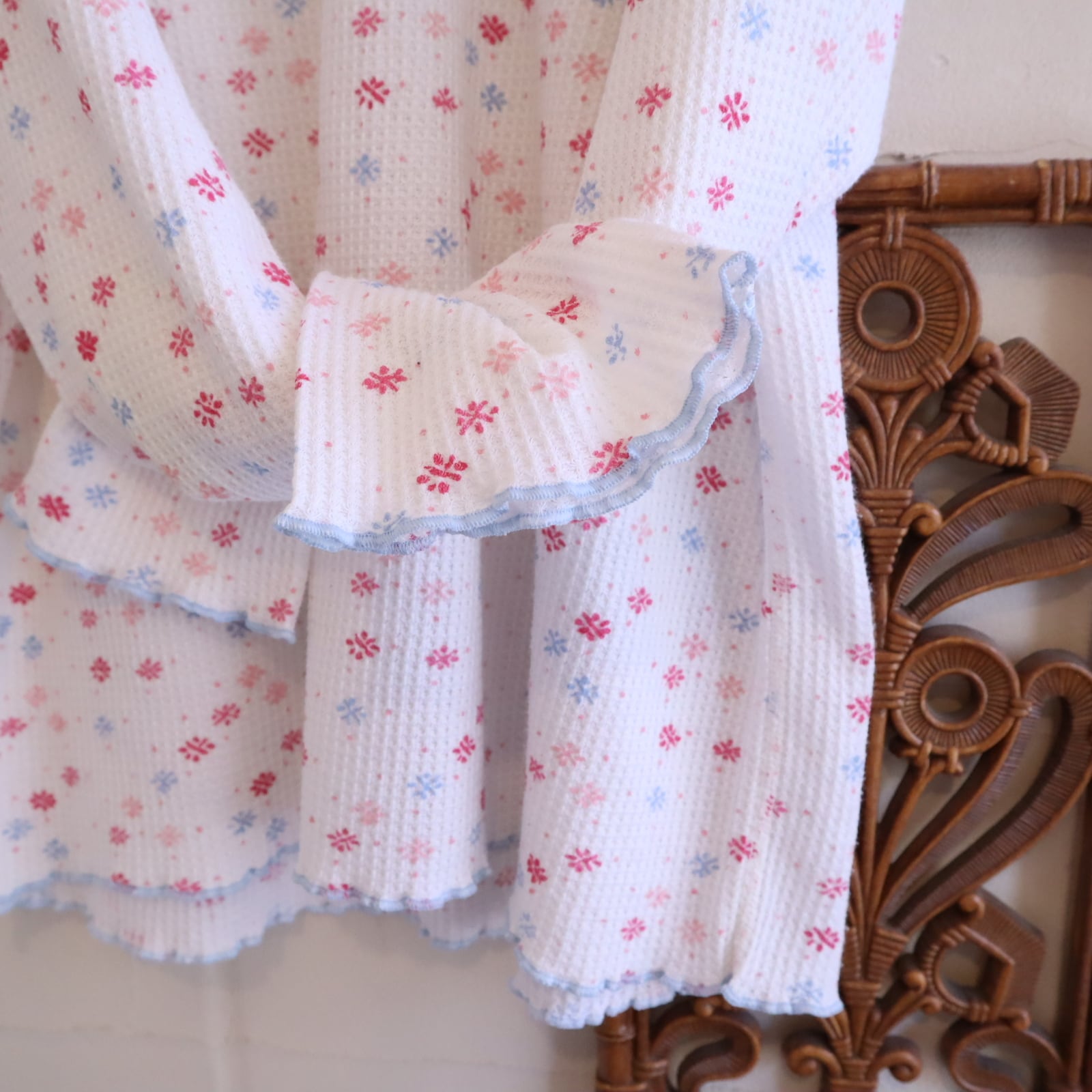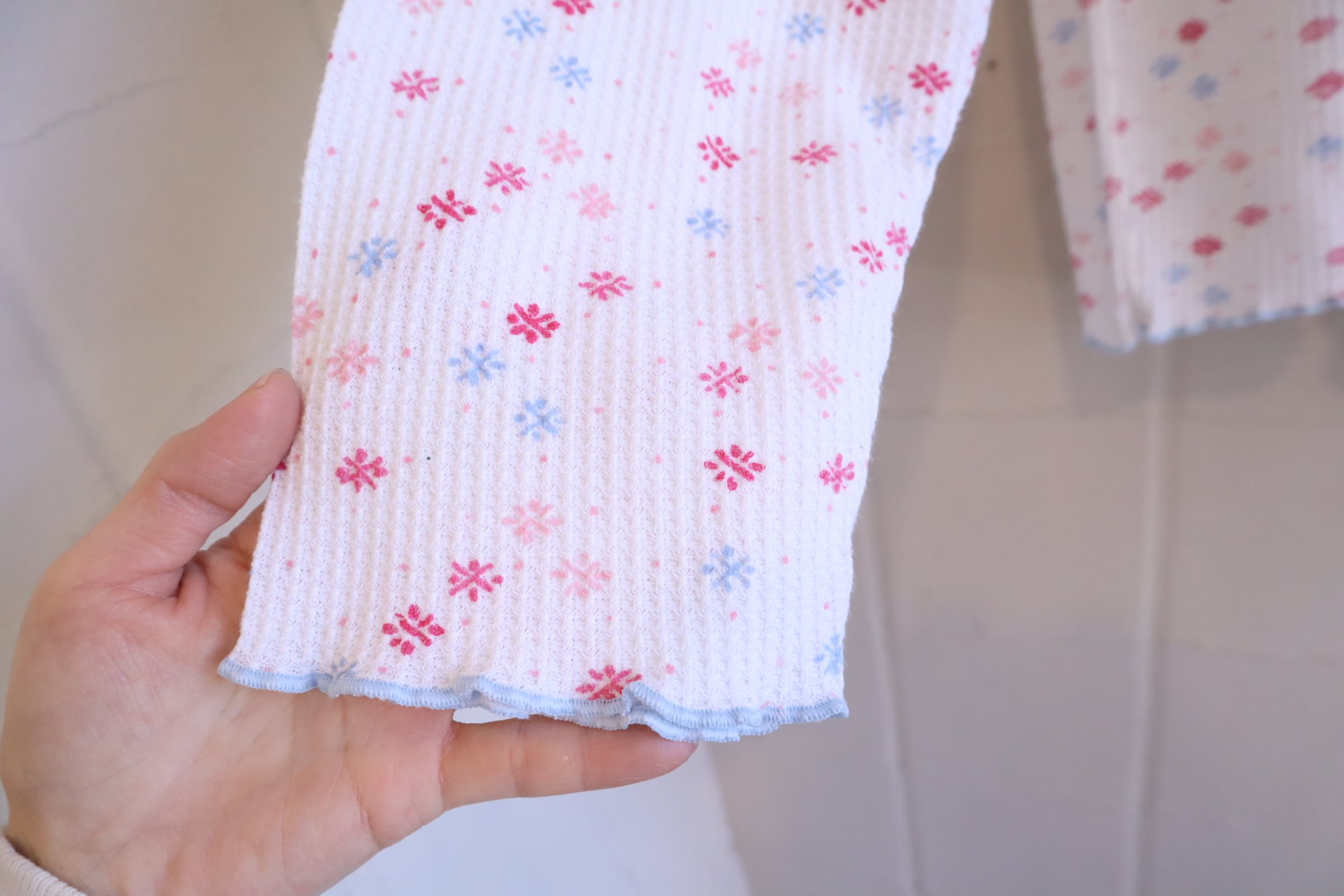 お花にも見える雪の結晶柄がとても可愛いワッフルサーマルトップ。