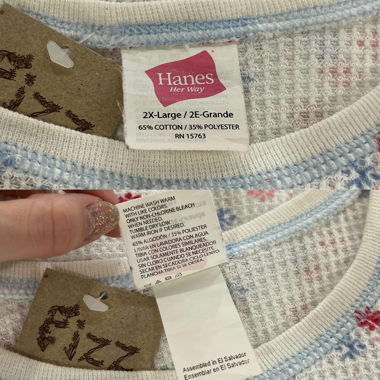 Hanes white×pink×lightblue snowflake pattern thermal tops [l-4503]